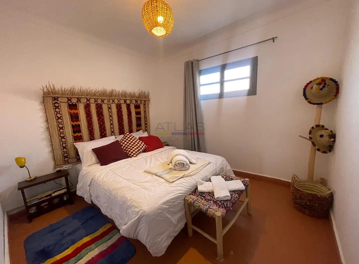 À quelques minutes du centre d’Essaouira, sur la route de Laadamna, cette maison meublée offre un cadre paisible et fonctionnel, parfaitement adapté à une installation en location longue durée. Implantée sur un terrain de 600 m², elle combine des espaces intérieurs bien agencés et des extérieurs pensés pour profiter pleinement du climat de la région, dans un environnement calme et préservé.