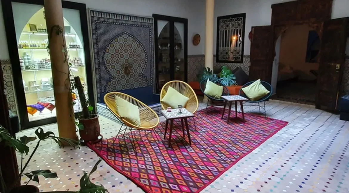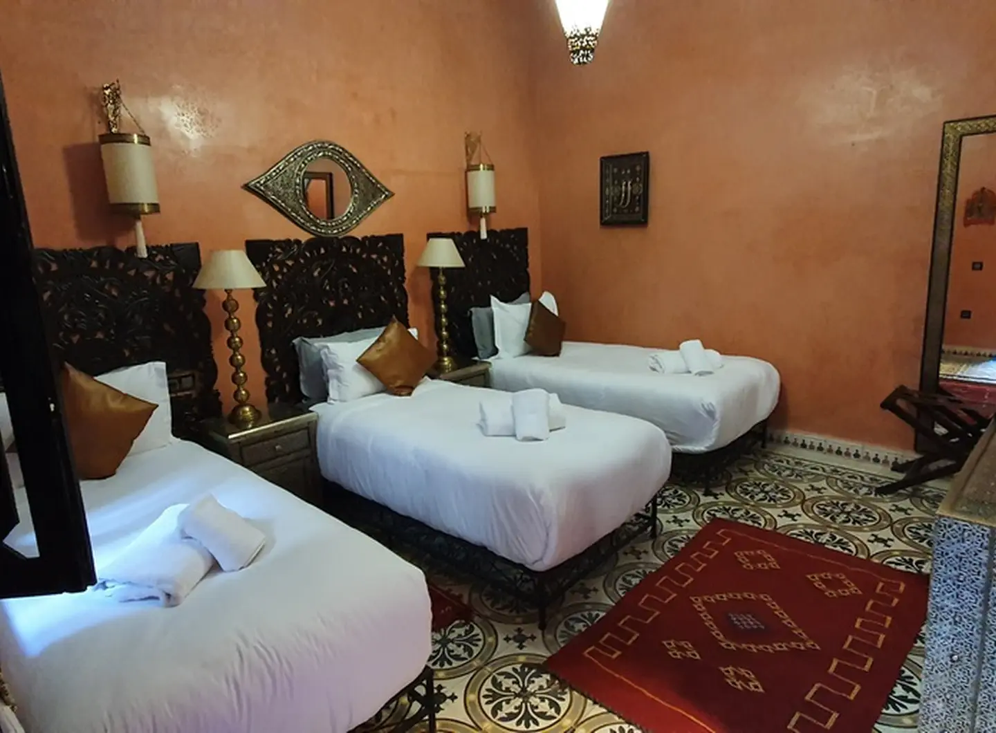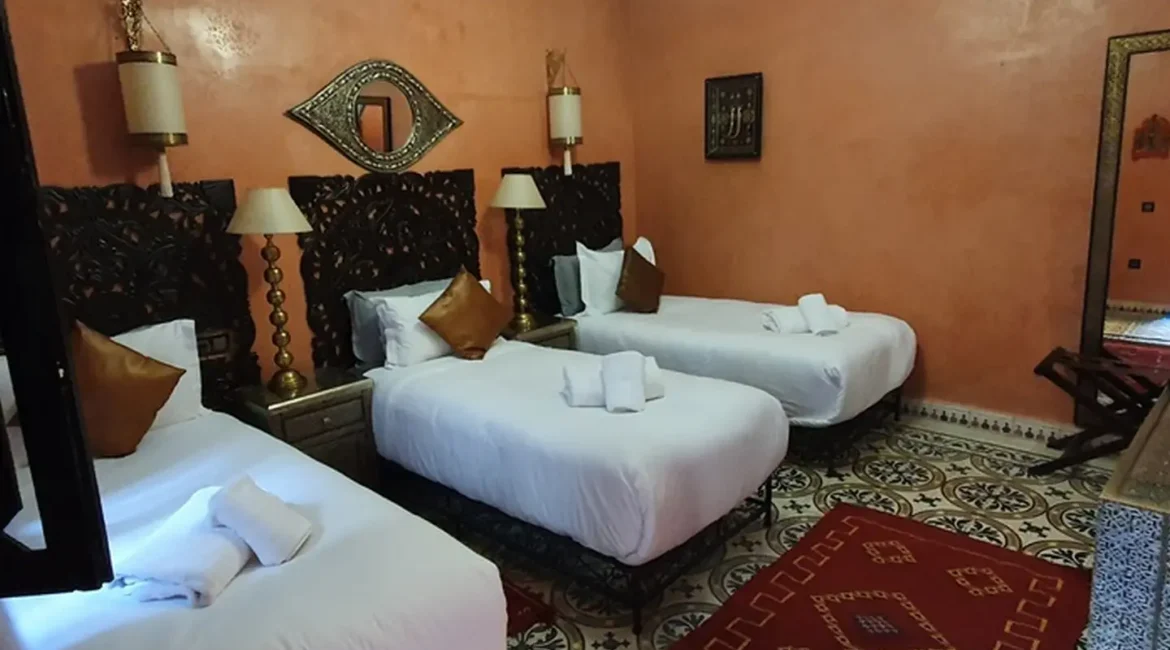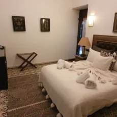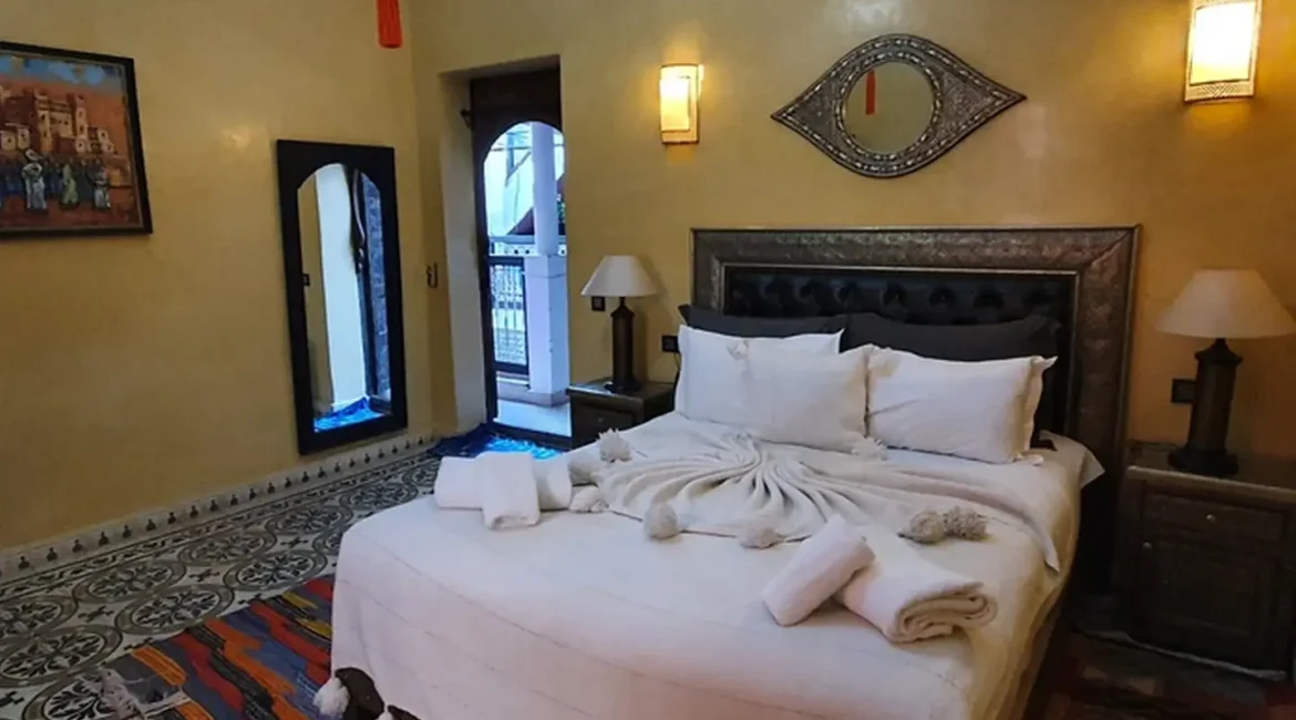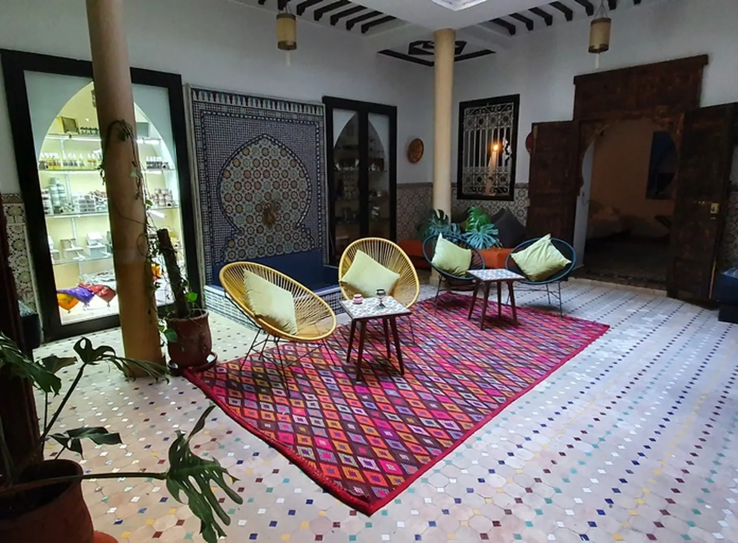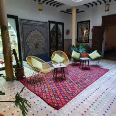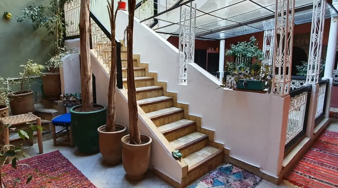 Avec une surface au sol de 350 m² et une surface habitable d’environ 1 200 m², la propriété s’étend sur deux bâtiments. Elle propose 25 chambres spacieuses, ainsi qu’un appartement privé de 150 m² permettant de concilier activité hôtelière et résidence. Le rooftop de 150 m² offre une vue panoramique à 360° sur la médina et ses toits, tandis qu’un salon couvert permet de profiter de l’espace extérieur tout au long de l’année.