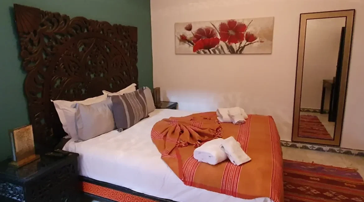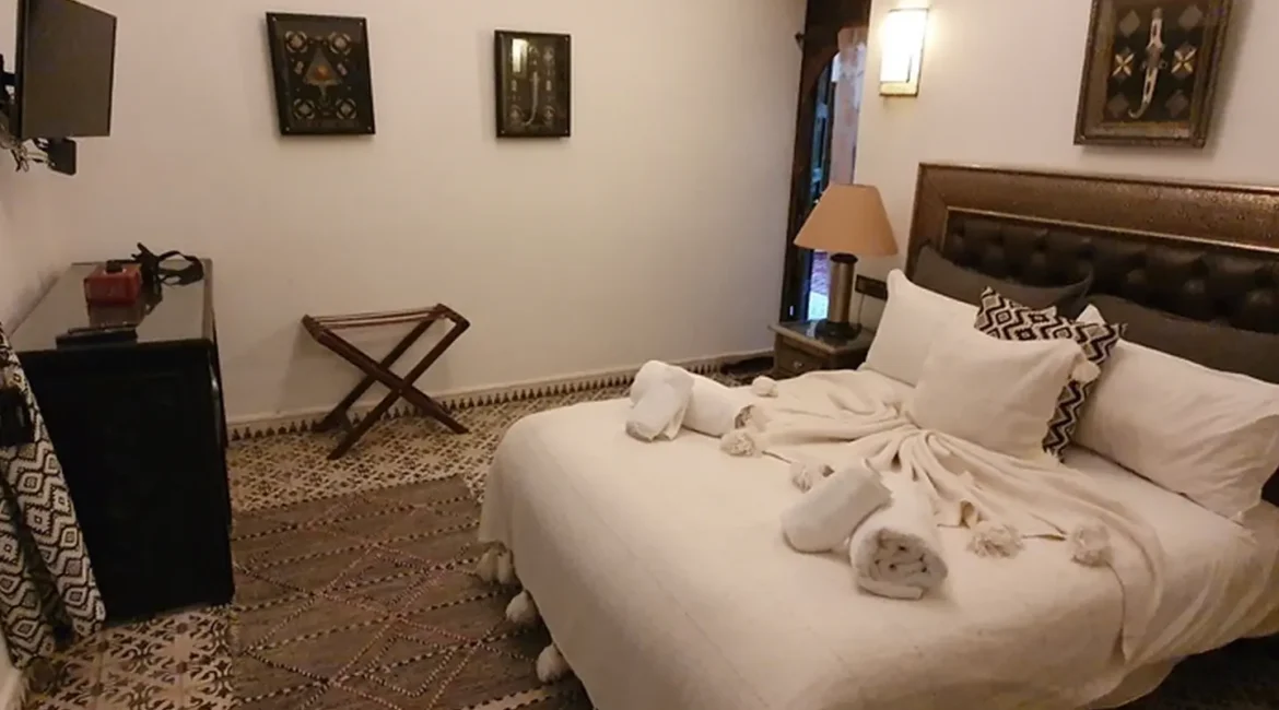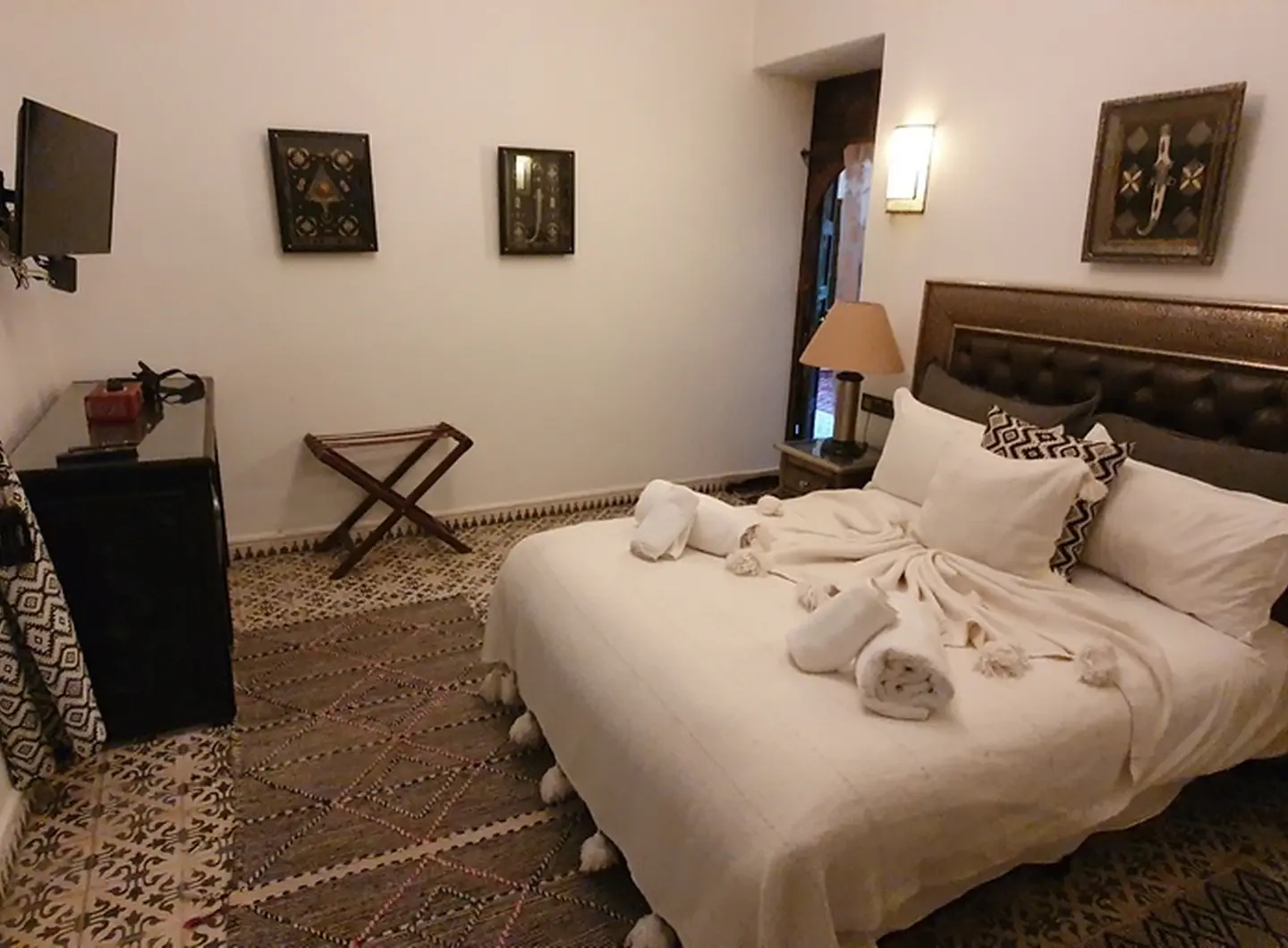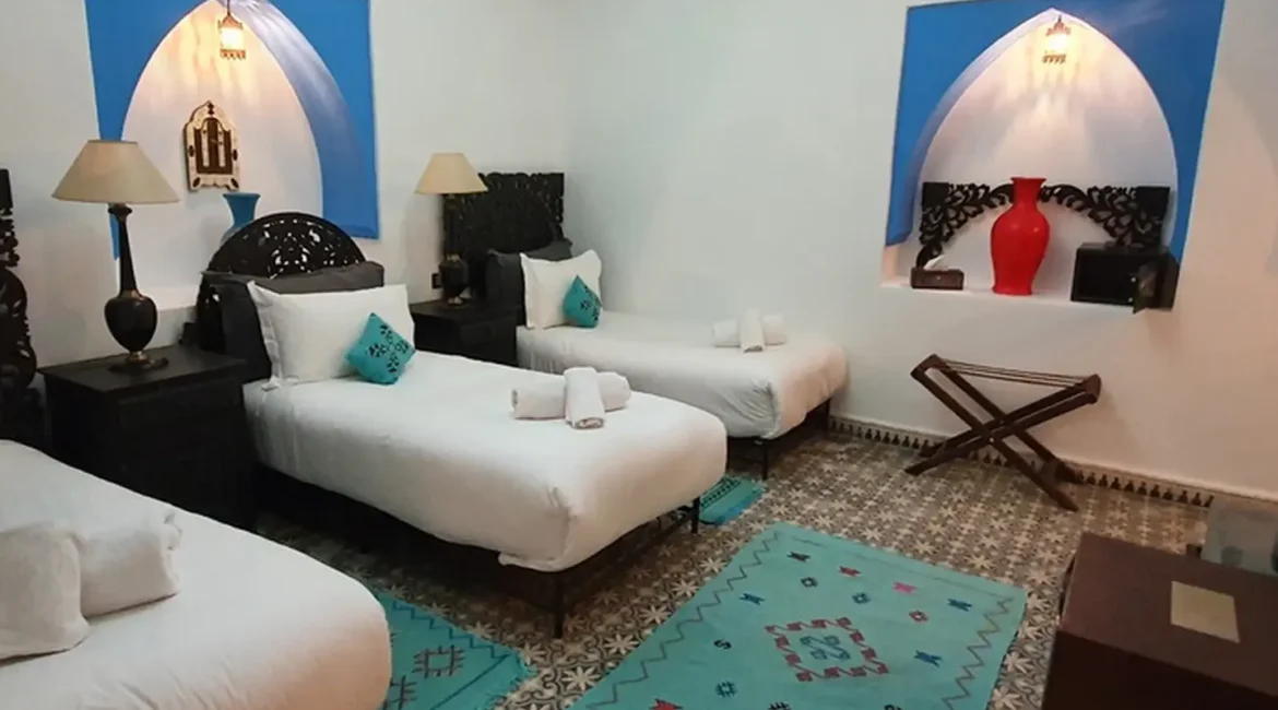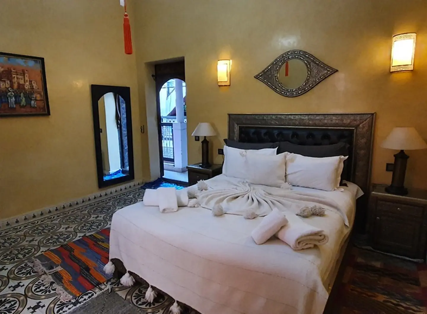 Avec une surface au sol de 350 m² et une surface habitable d’environ 1 200 m², la propriété s’étend sur deux bâtiments. Elle propose 25 chambres spacieuses, ainsi qu’un appartement privé de 150 m² permettant de concilier activité hôtelière et résidence. Le rooftop de 150 m² offre une vue panoramique à 360° sur la médina et ses toits, tandis qu’un salon couvert permet de profiter de l’espace extérieur tout au long de l’année.