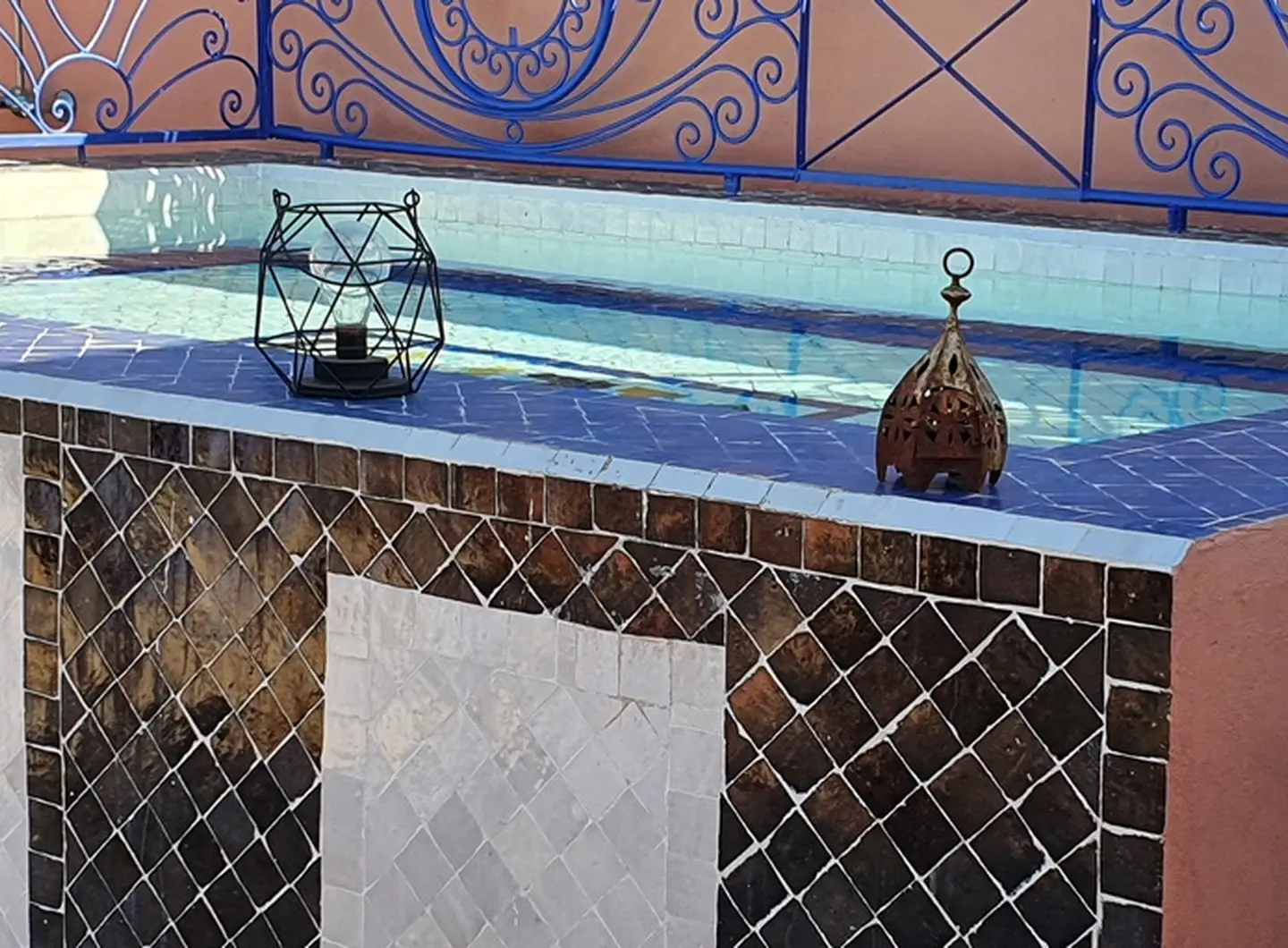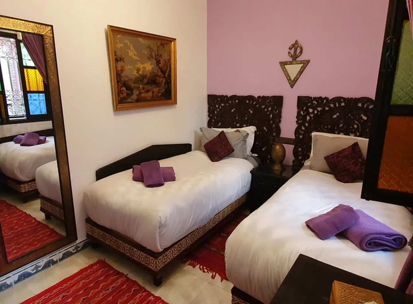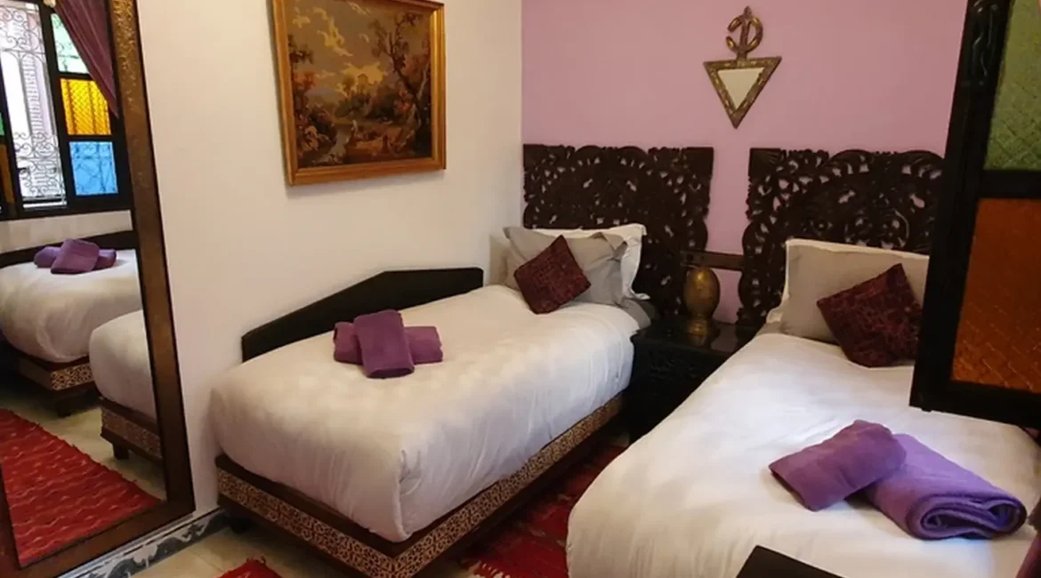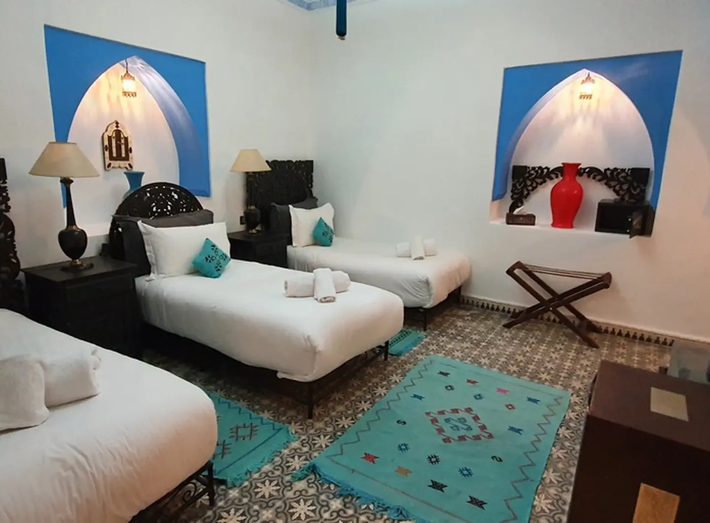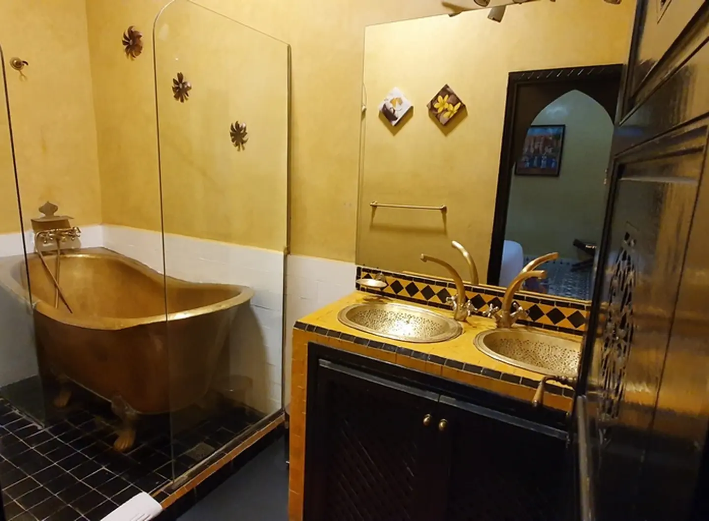 Avec une surface au sol de 350 m² et une surface habitable d’environ 1 200 m², la propriété s’étend sur deux bâtiments. Elle propose 25 chambres spacieuses, ainsi qu’un appartement privé de 150 m² permettant de concilier activité hôtelière et résidence. Le rooftop de 150 m² offre une vue panoramique à 360° sur la médina et ses toits, tandis qu’un salon couvert permet de profiter de l’espace extérieur tout au long de l’année.