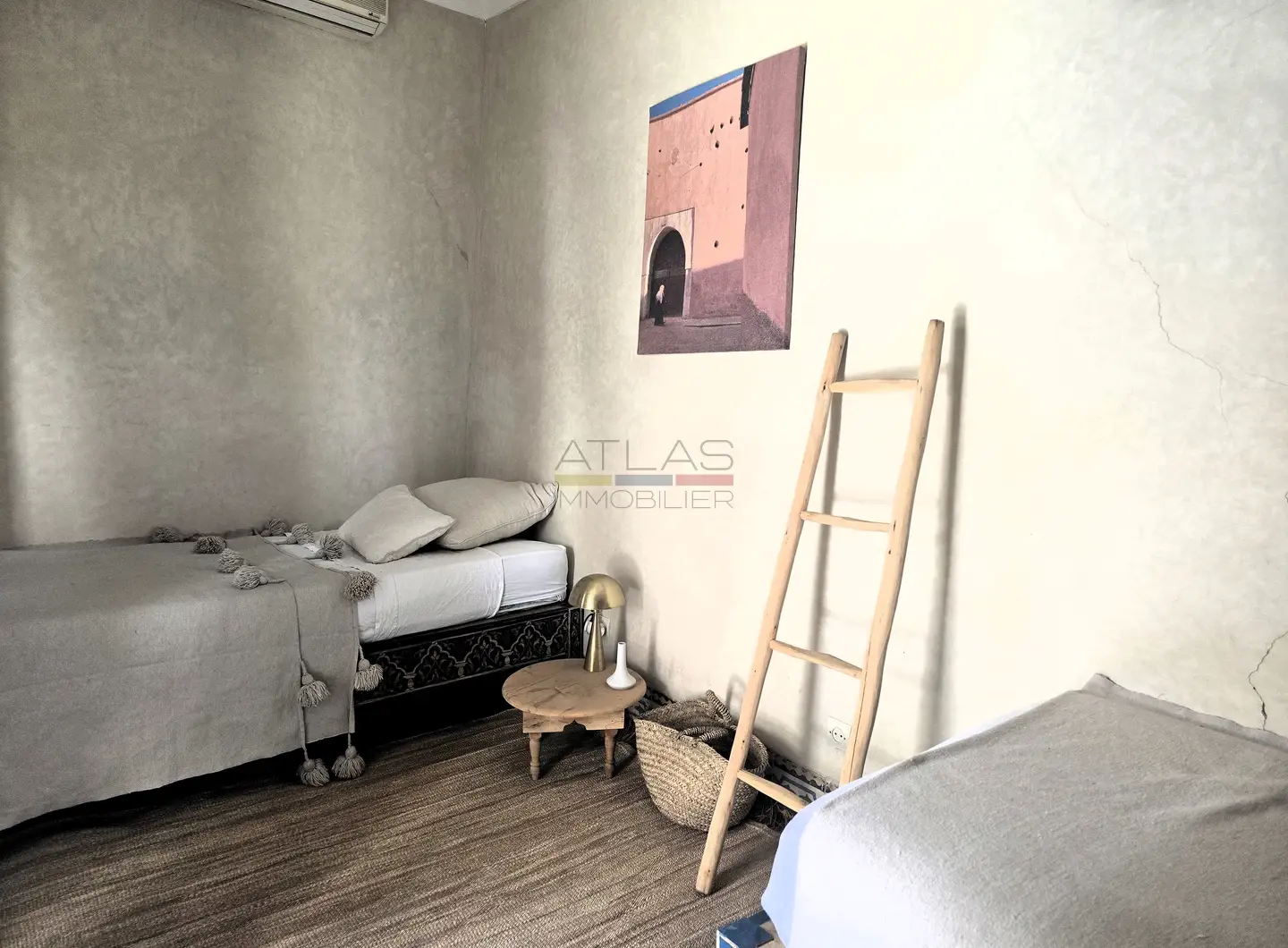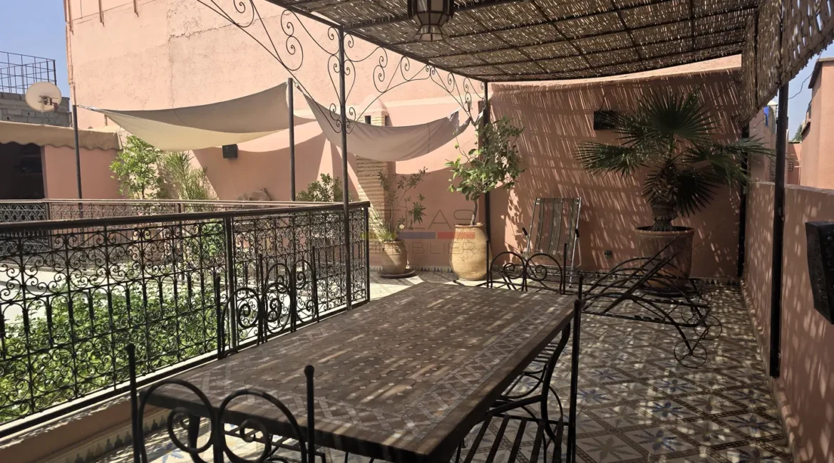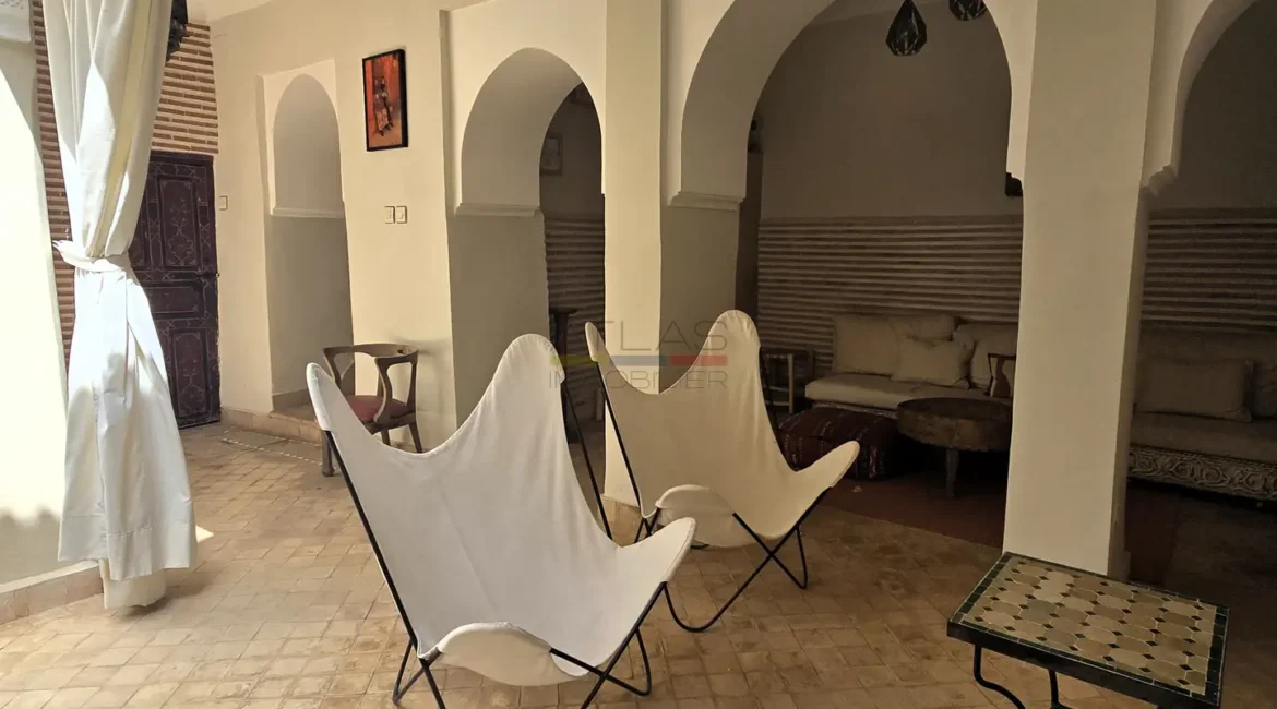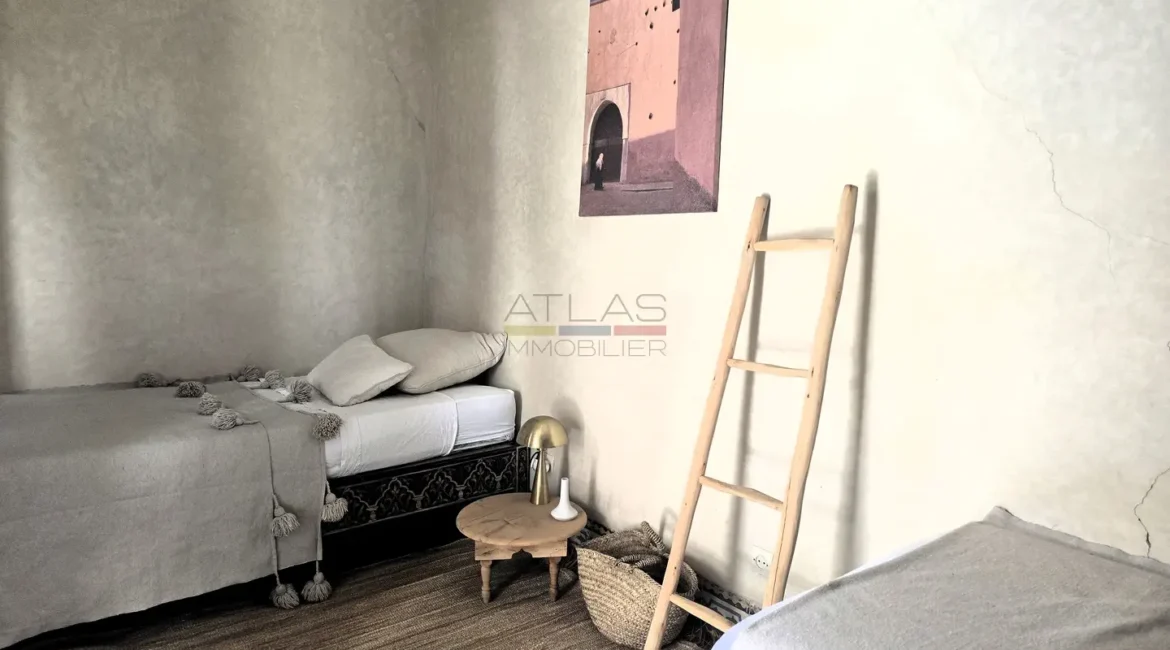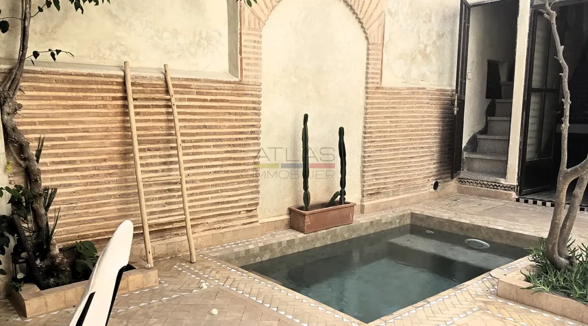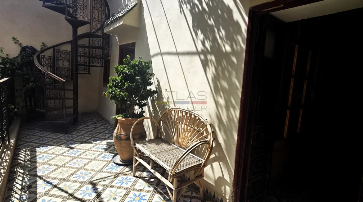 Atlasimmobilier vous présente un riad de charme, idéalement situé dans la partie est de la médina historique de Marrakech. Niché à proximité des souks locaux, ce bien bénéficie d’un emplacement rare conjuguant animation traditionnelle et calme préservé. Titré et parfaitement entretenu, il a été exploité avec succès en location saisonnière, garantissant d’excellents retours pour un projet d’investissement, tout en constituant une résidence secondaire de caractère pleine d’authenticité.