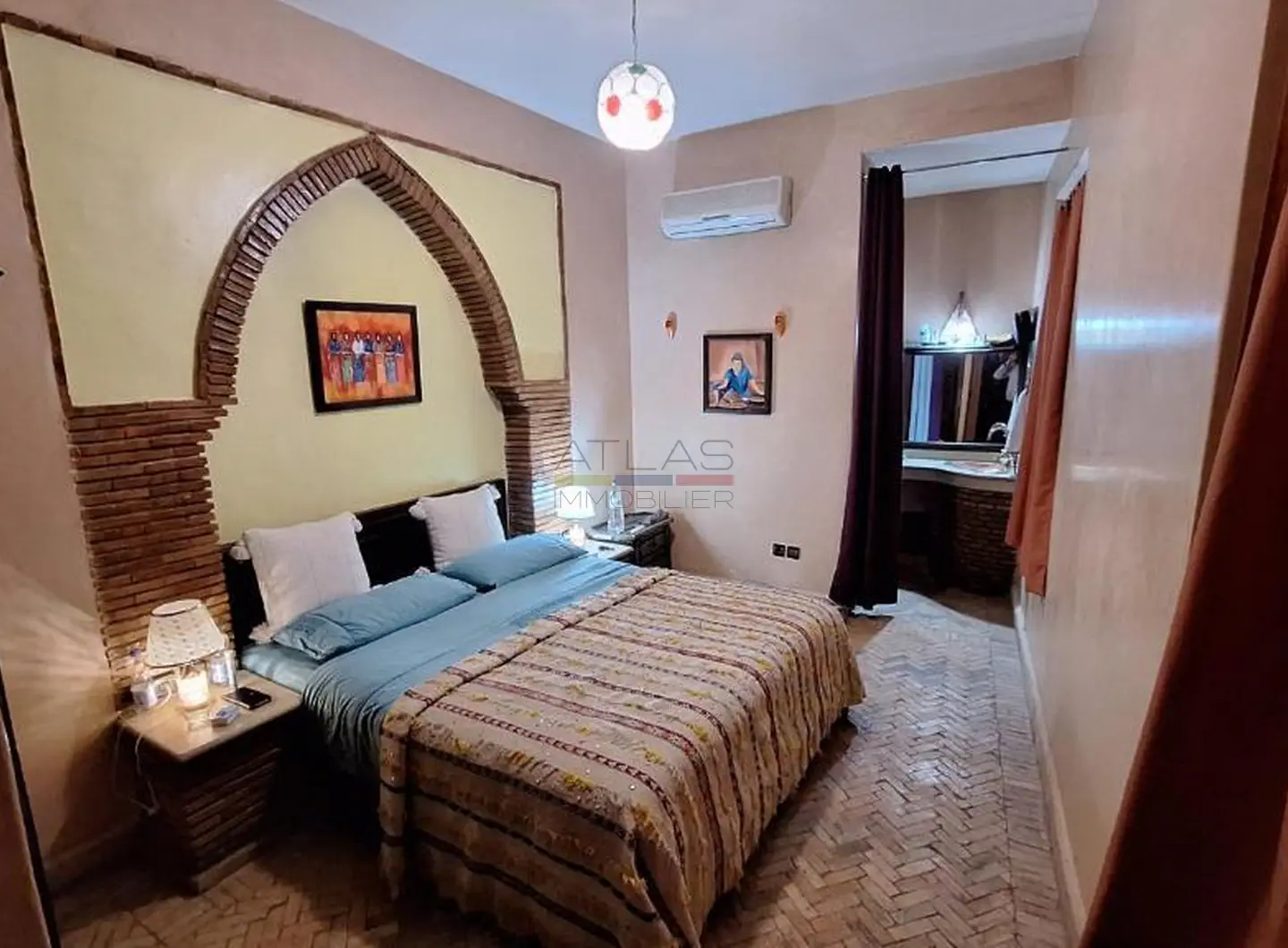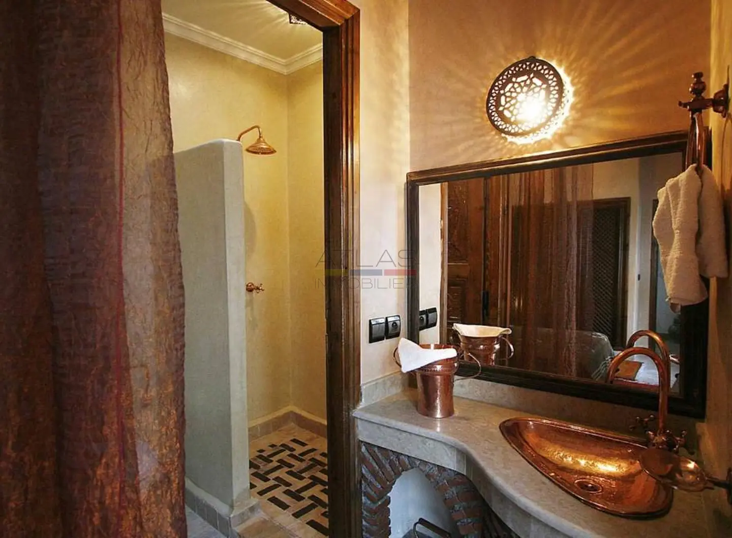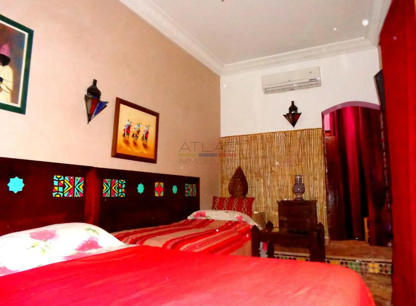 Développant environ 230 m² habitables, ce riad parfaitement distribué comprend six chambres, chacune accompagnée de sa salle de bain. Son architecture traditionnelle et ses volumes harmonieux offrent un cadre idéal pour la poursuite de l’exploitation en maison d’hôtes élégante et accueillante ou sa reconversion en résidence de charme. Le terrain de 117 m² et l’organisation des espaces permettent de valoriser son potentiel selon vos besoins.