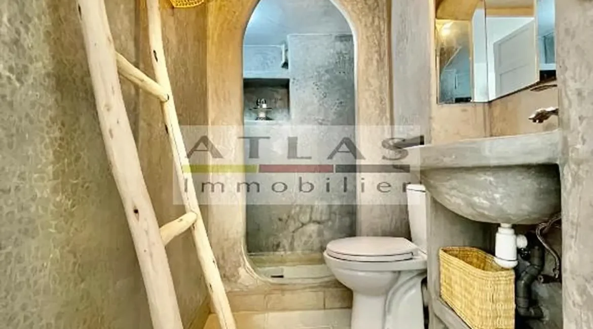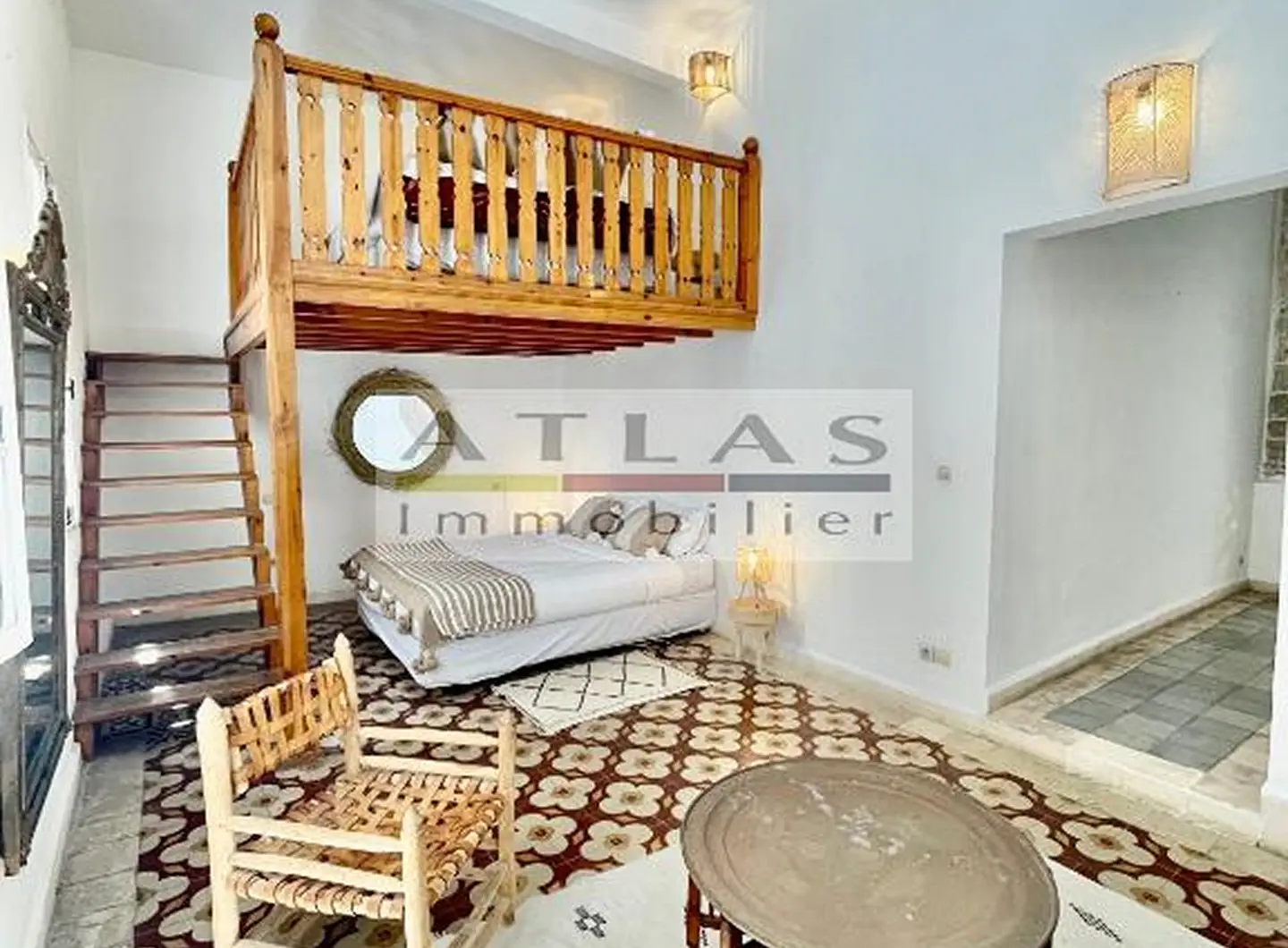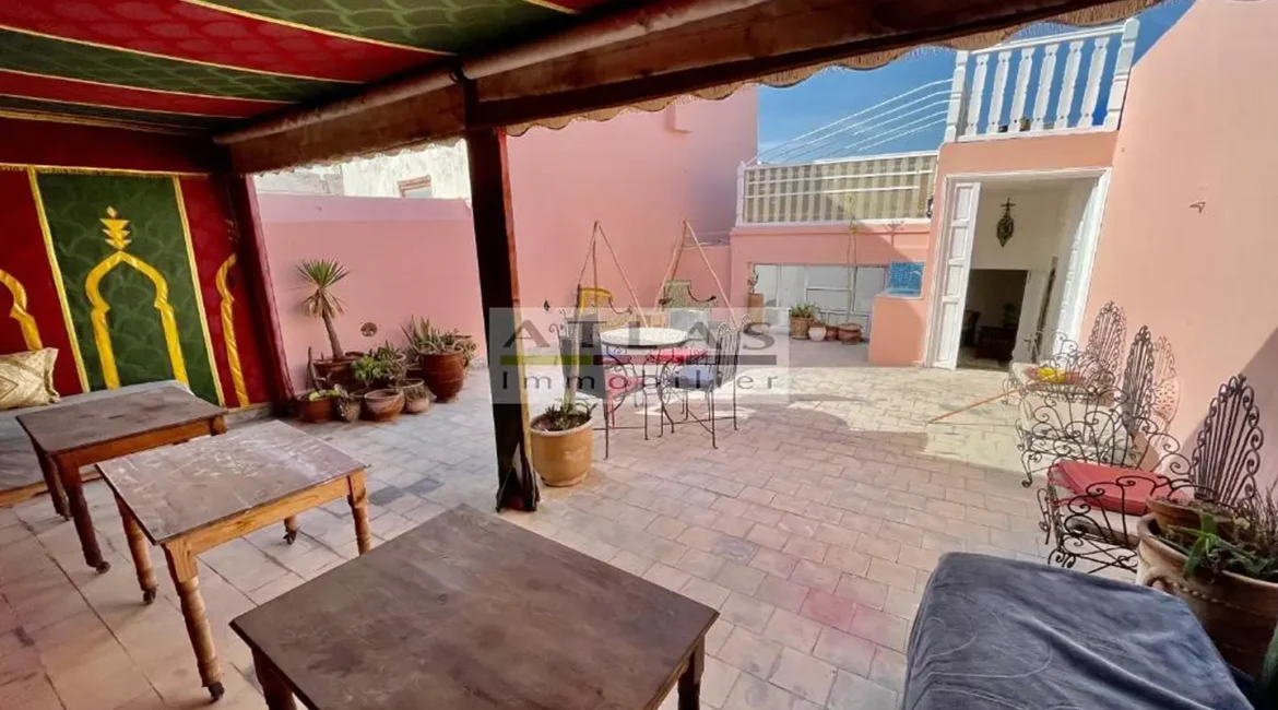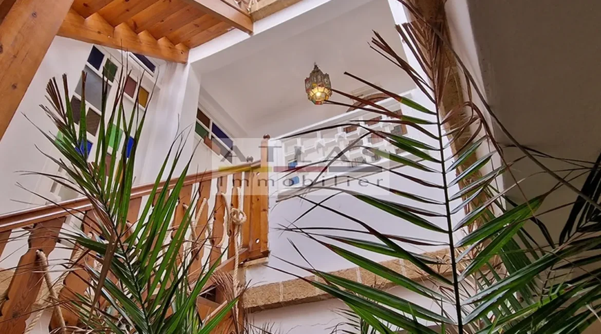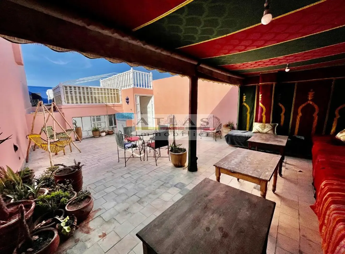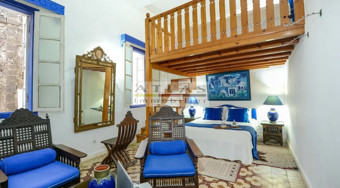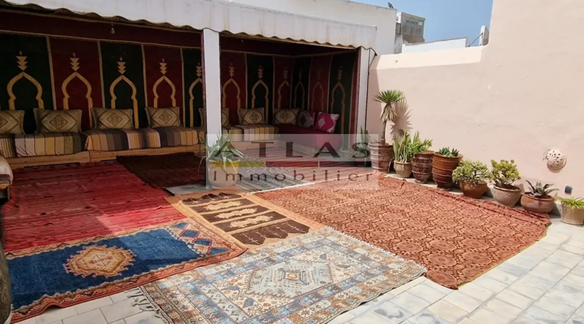 La grande terrasse du dernier niveau, qui nécessite quelques aménagements, permet d’envisager la création d’une sixième chambre, augmentant encore le rendement locatif du bien. Cet espace extérieur constitue également un lieu privilégié pour profiter du climat agréable d’Essaouira et de ses couchers de soleil.
