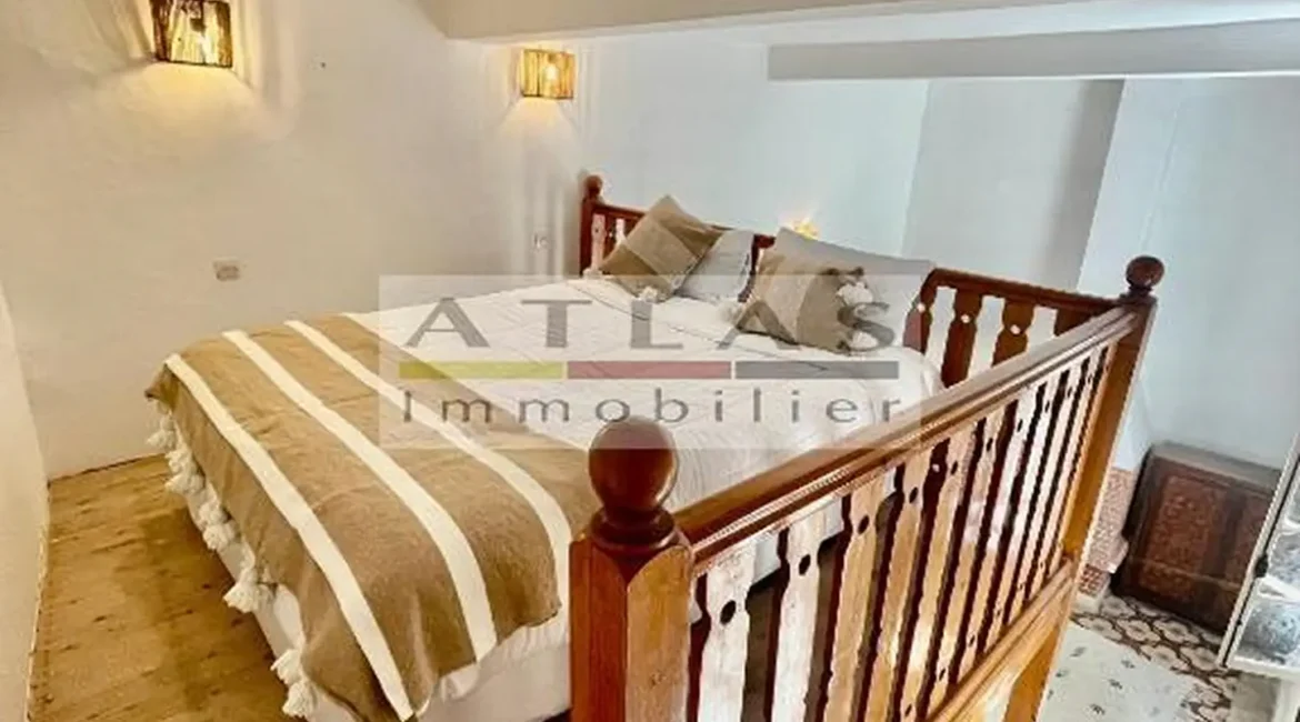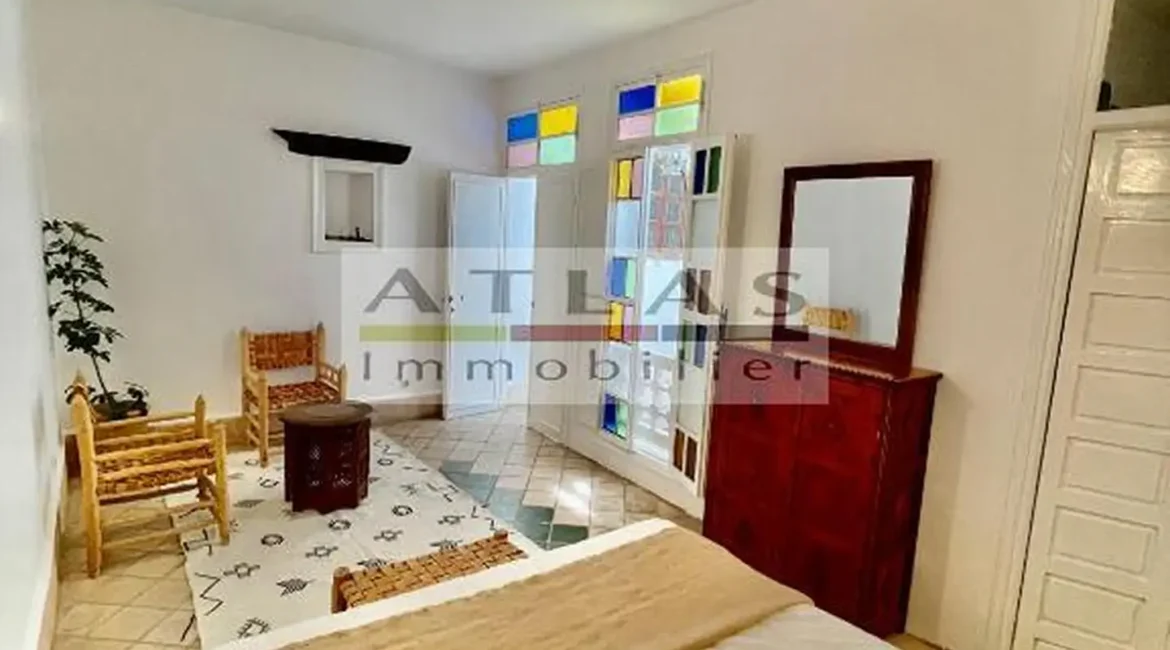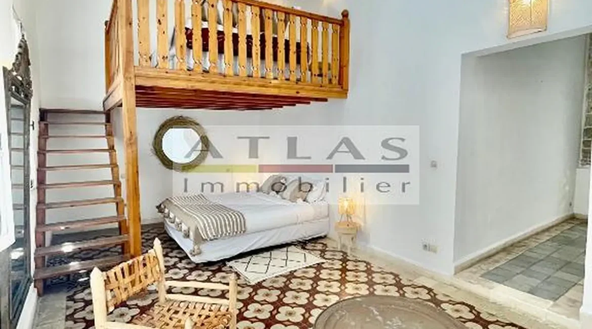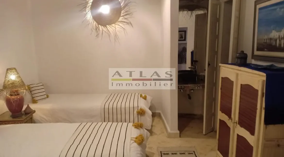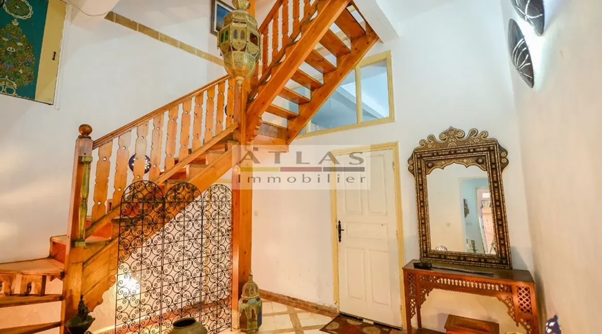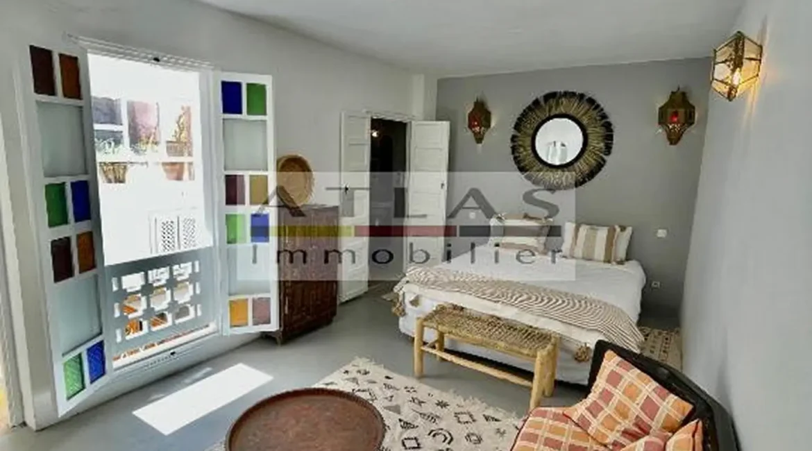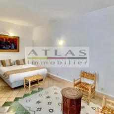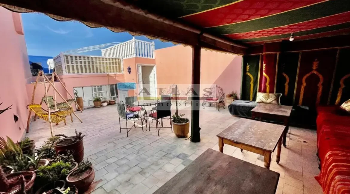 Situé dans un quartier calme au sud de la médina, ce magnifique riad de 100 m² au sol, développé sur trois niveaux, séduit par son authenticité, son atmosphère raffinée et son fort potentiel locatif. Décoré avec soin, il offre cinq chambres élégantes, chacune dotée de sa salle de bain, dont une suite spacieuse parfaitement adaptée pour accueillir famille, amis ou voyageurs en séjour touristique.