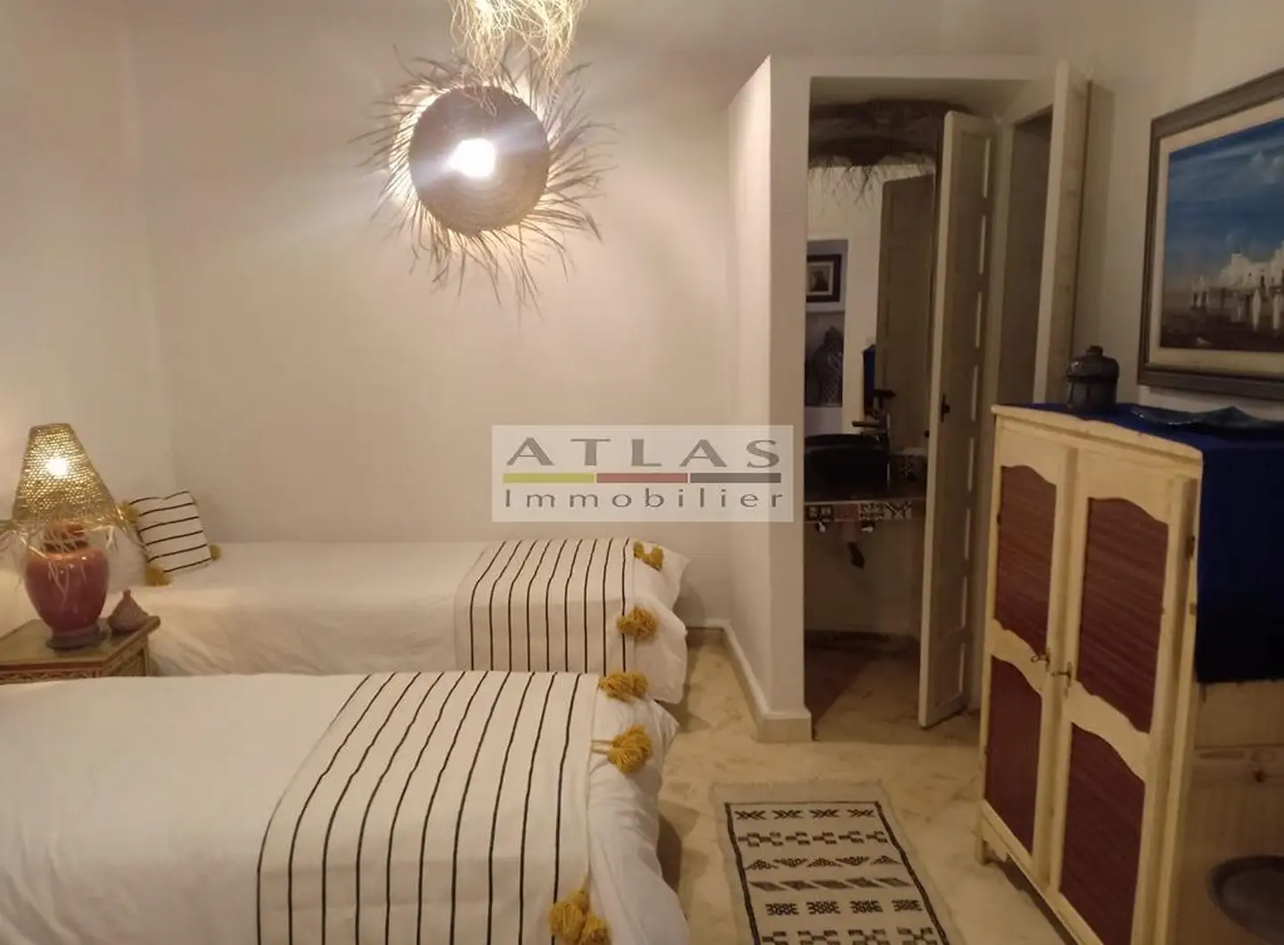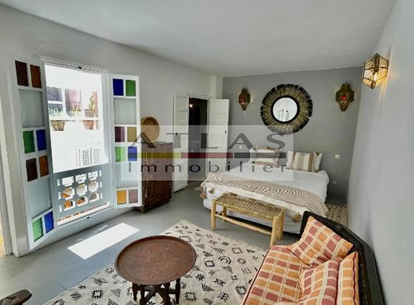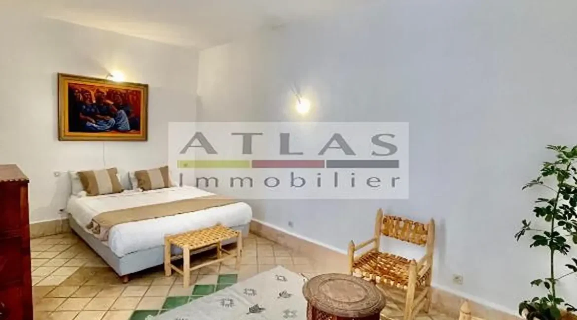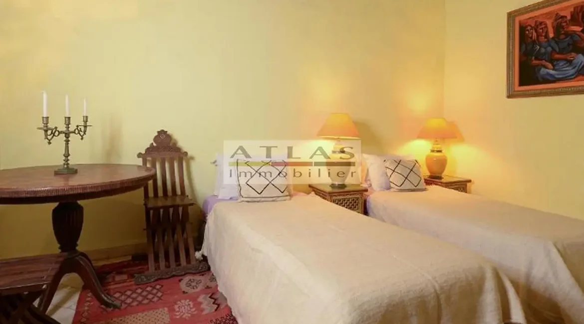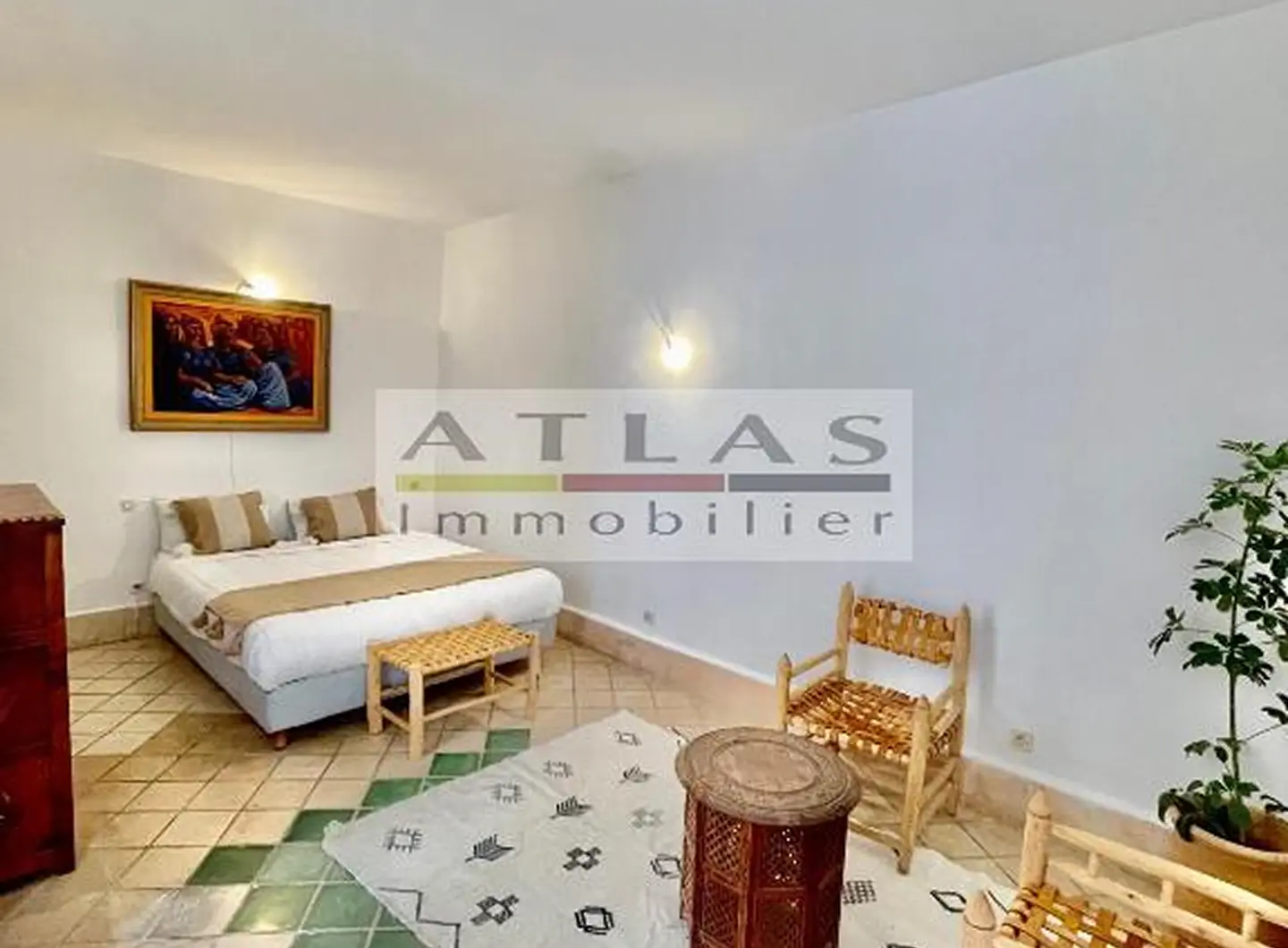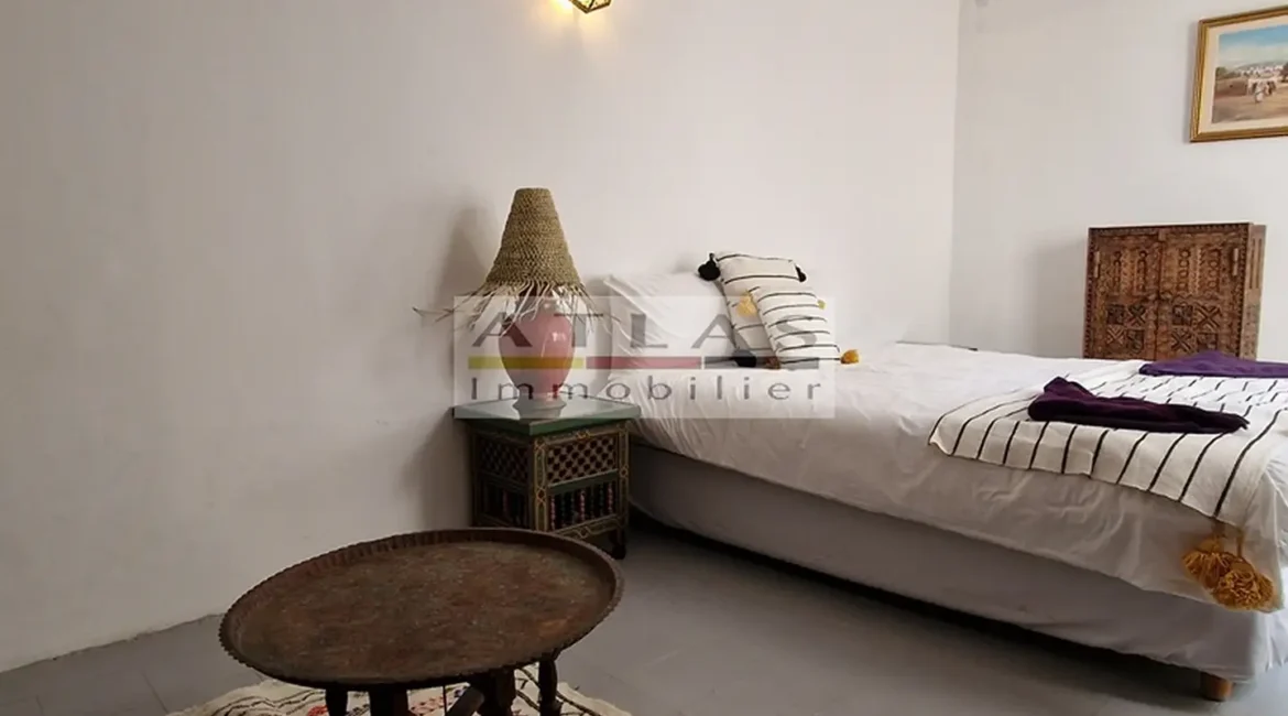 Situé dans un quartier calme au sud de la médina, ce magnifique riad de 100 m² au sol, développé sur trois niveaux, séduit par son authenticité, son atmosphère raffinée et son fort potentiel locatif. Décoré avec soin, il offre cinq chambres élégantes, chacune dotée de sa salle de bain, dont une suite spacieuse parfaitement adaptée pour accueillir famille, amis ou voyageurs en séjour touristique.