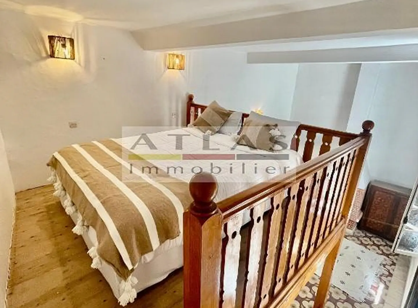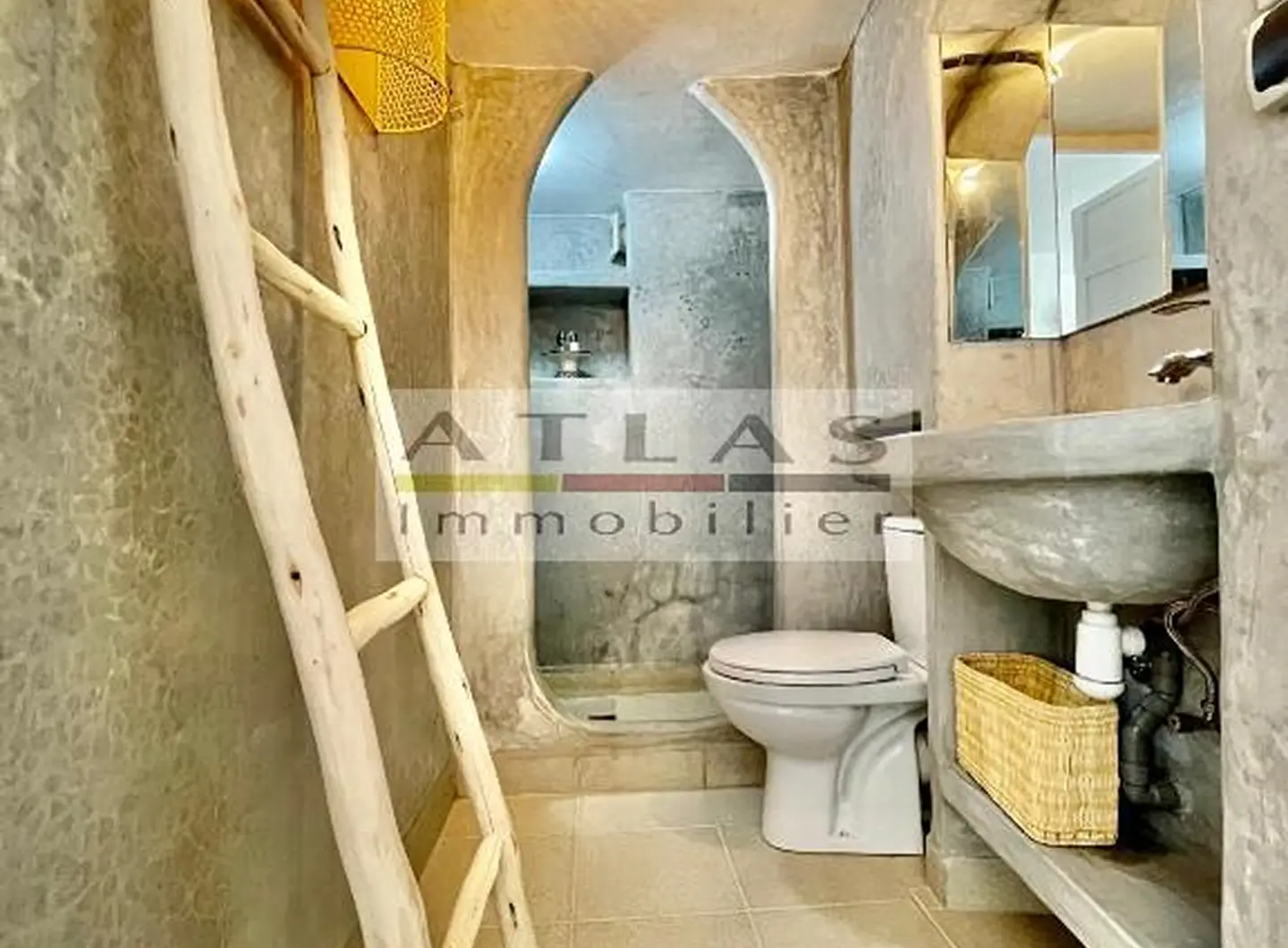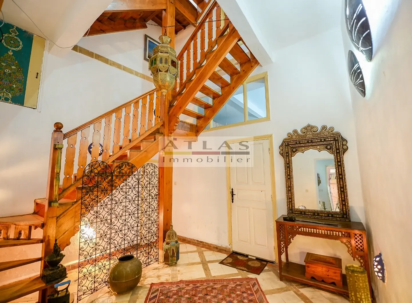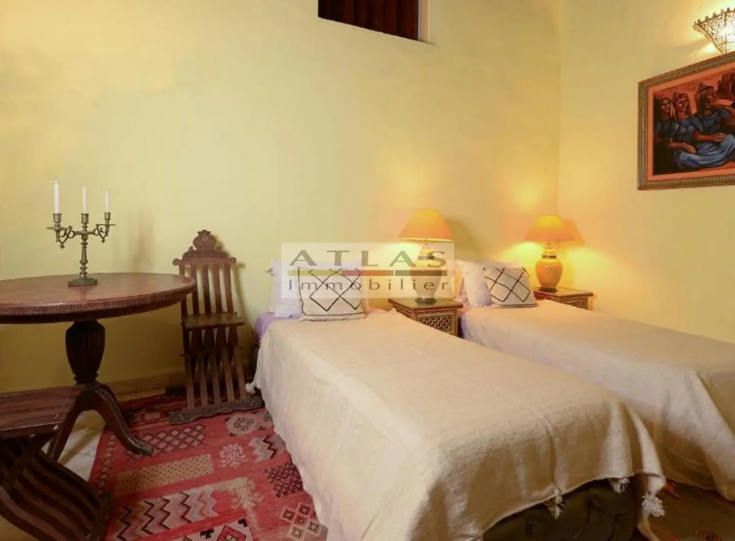 Situé dans un quartier calme au sud de la médina, ce magnifique riad de 100 m² au sol, développé sur trois niveaux, séduit par son authenticité, son atmosphère raffinée et son fort potentiel locatif. Décoré avec soin, il offre cinq chambres élégantes, chacune dotée de sa salle de bain, dont une suite spacieuse parfaitement adaptée pour accueillir famille, amis ou voyageurs en séjour touristique.
