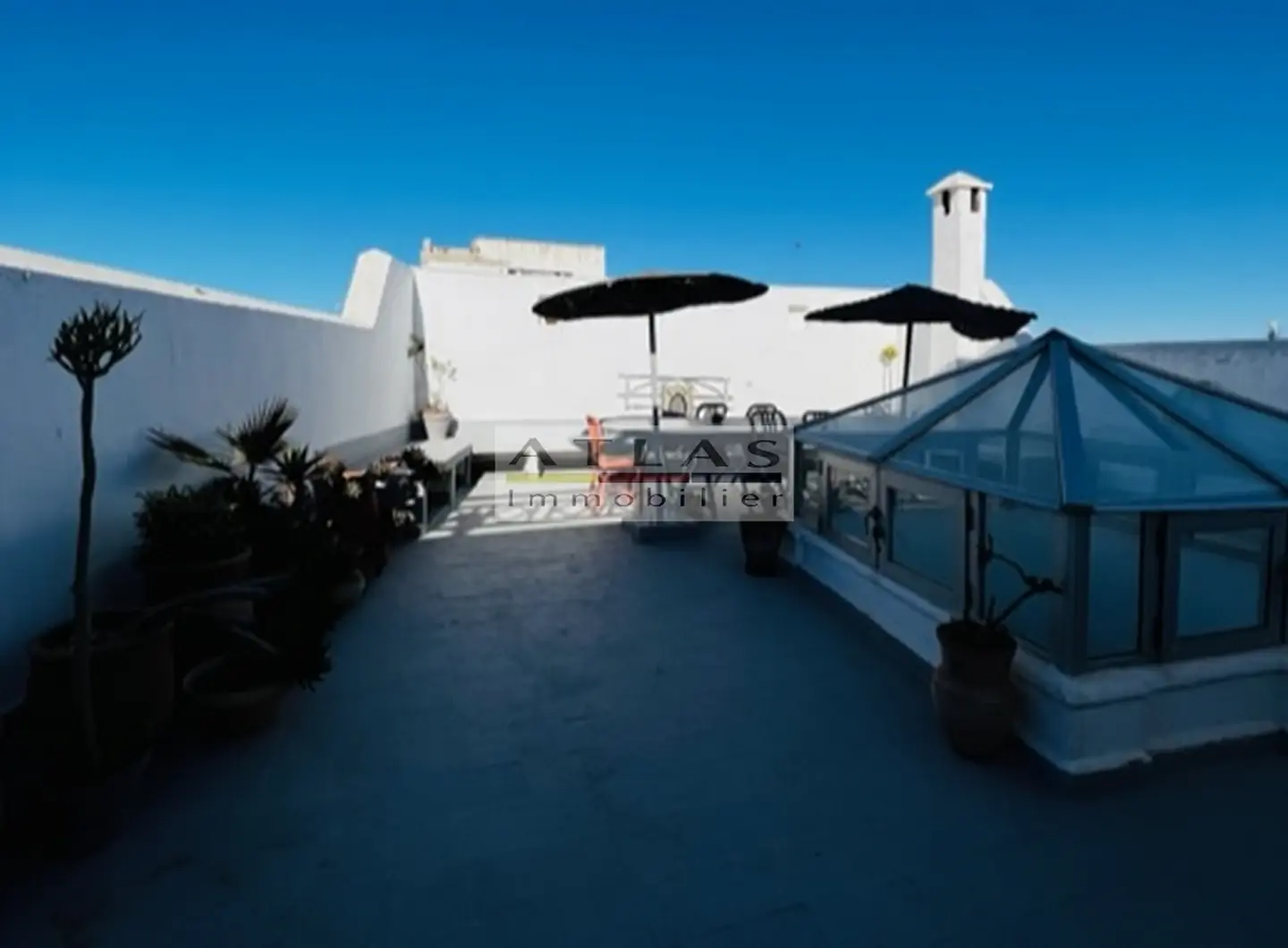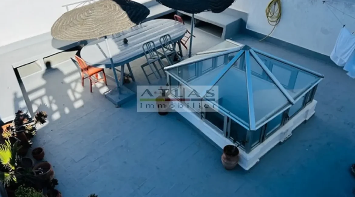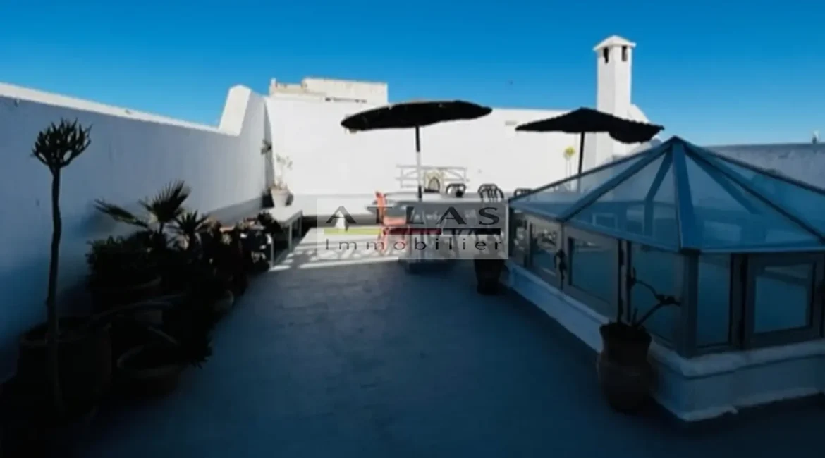 Au troisième étage, une cuisine aménagée, une chambre supplémentaire et une grande terrasse de 88 m² constituaient un espace de vie unique, idéal pour partager des moments conviviaux. Enfin, le dernier étage accueillait une chambre et un roof top de 21 m², offrant une vue dégagée sur la médina.