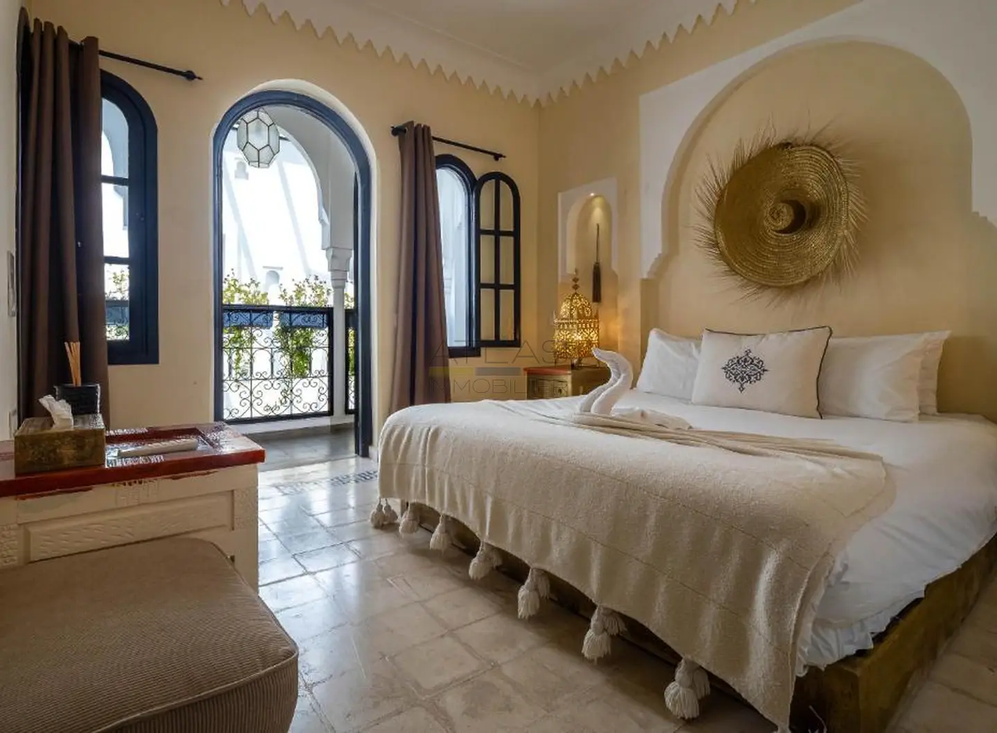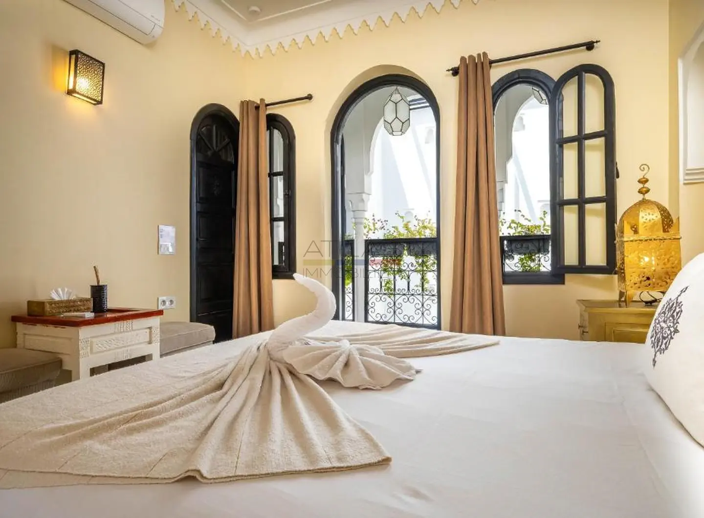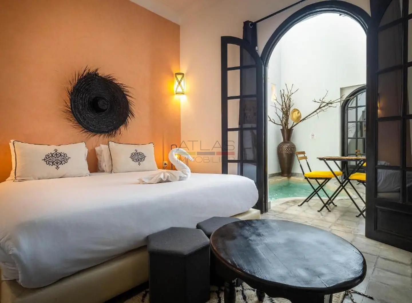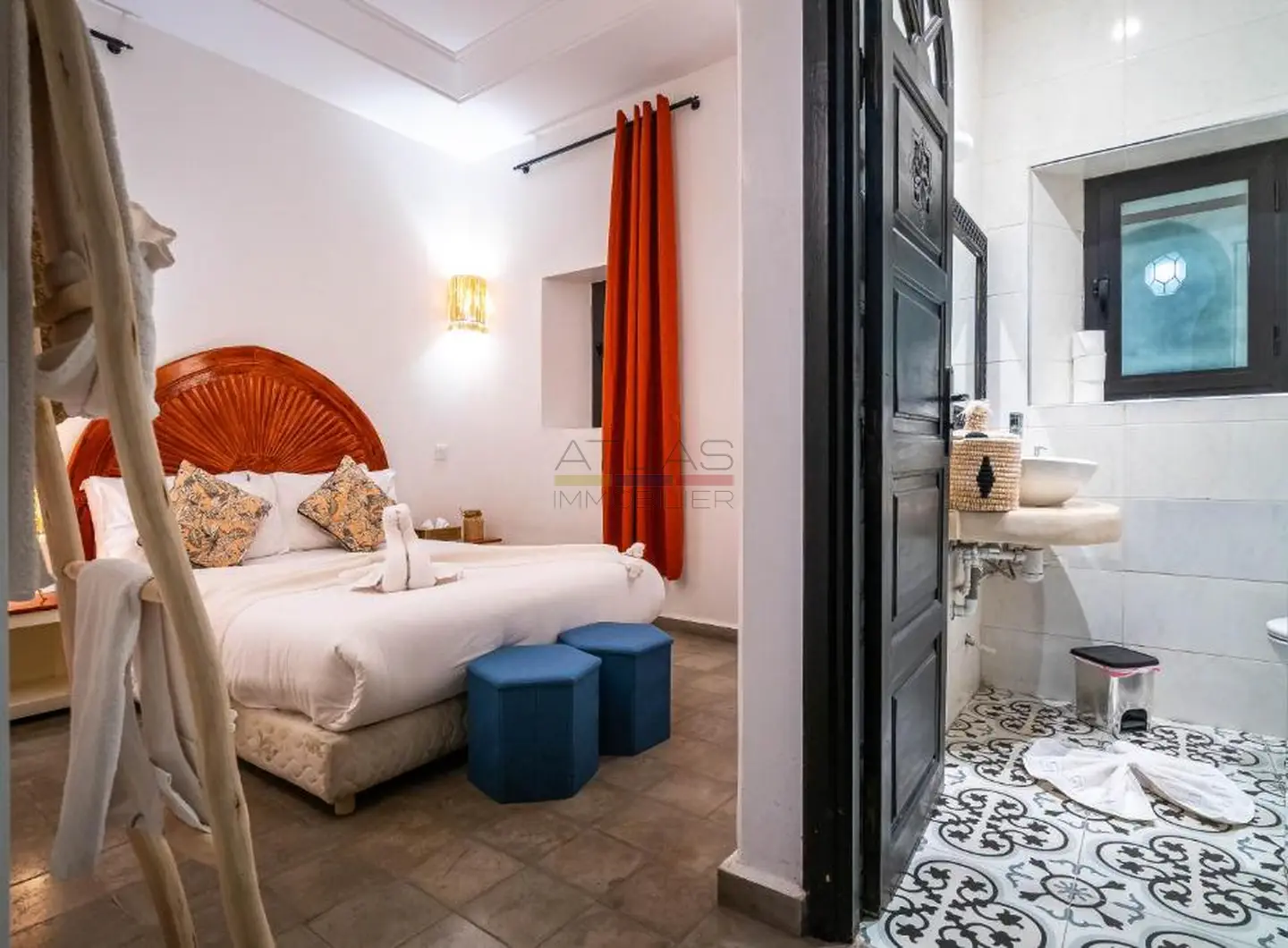 Entièrement repensé et rénové avec des matériaux nobles, le riad s’articule autour d’un superbe patio baigné de lumière, agrémenté d’une élégante piscine. Les volumes harmonieux et le raffinement des finitions créent une atmosphère apaisante, idéale pour une résidence privée ou la poursuite de l’activité de maison d’hôtes de standing.
