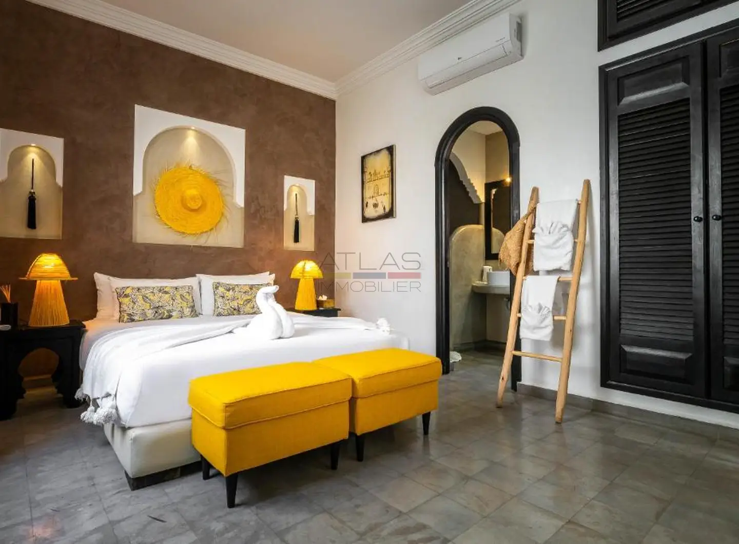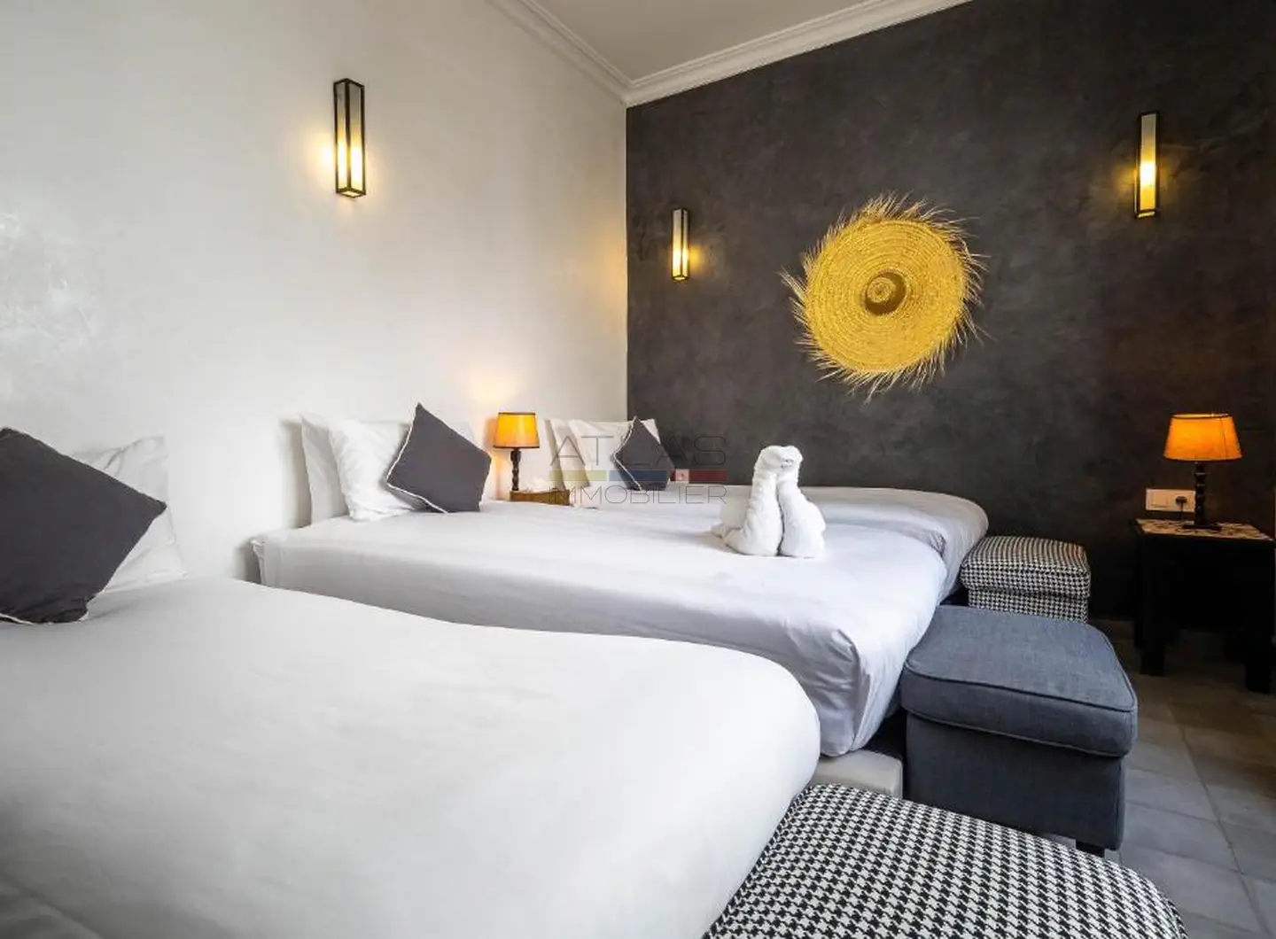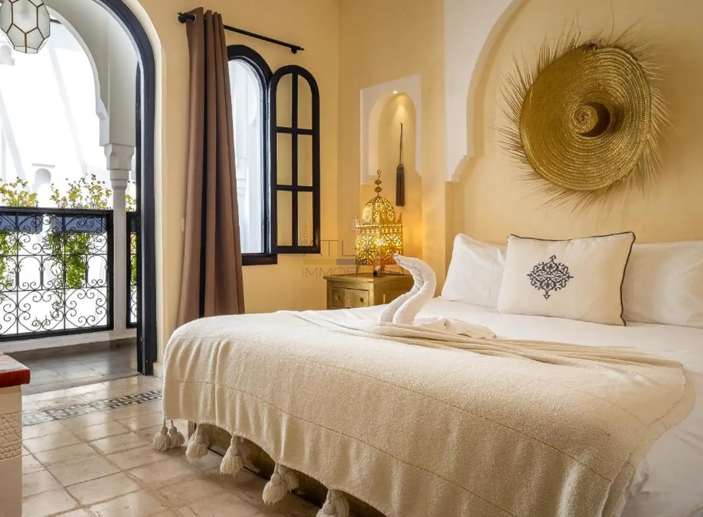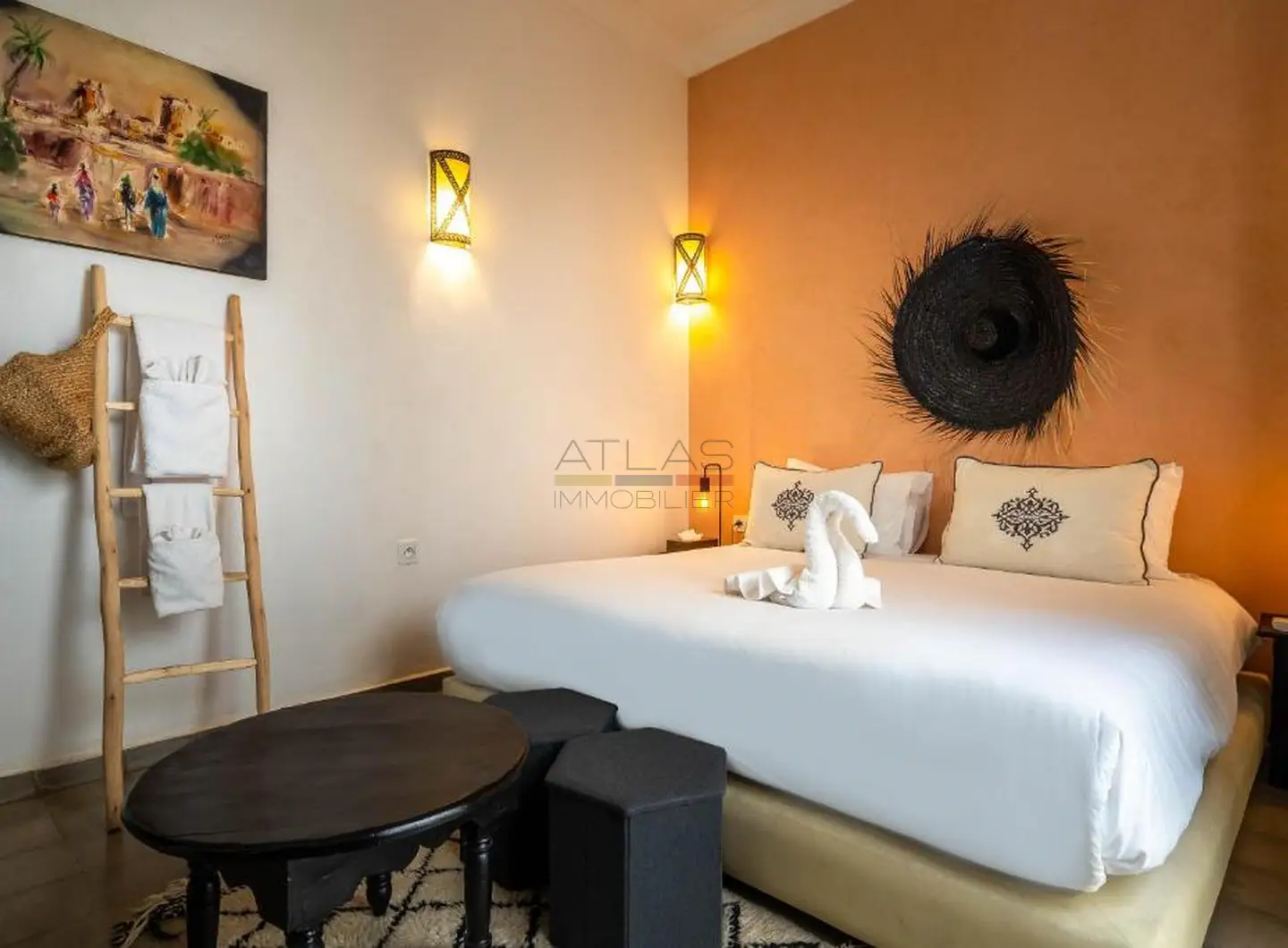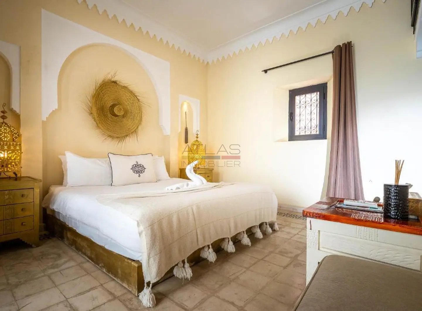 Entièrement repensé et rénové avec des matériaux nobles, le riad s’articule autour d’un superbe patio baigné de lumière, agrémenté d’une élégante piscine. Les volumes harmonieux et le raffinement des finitions créent une atmosphère apaisante, idéale pour une résidence privée ou la poursuite de l’activité de maison d’hôtes de standing.