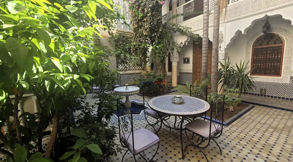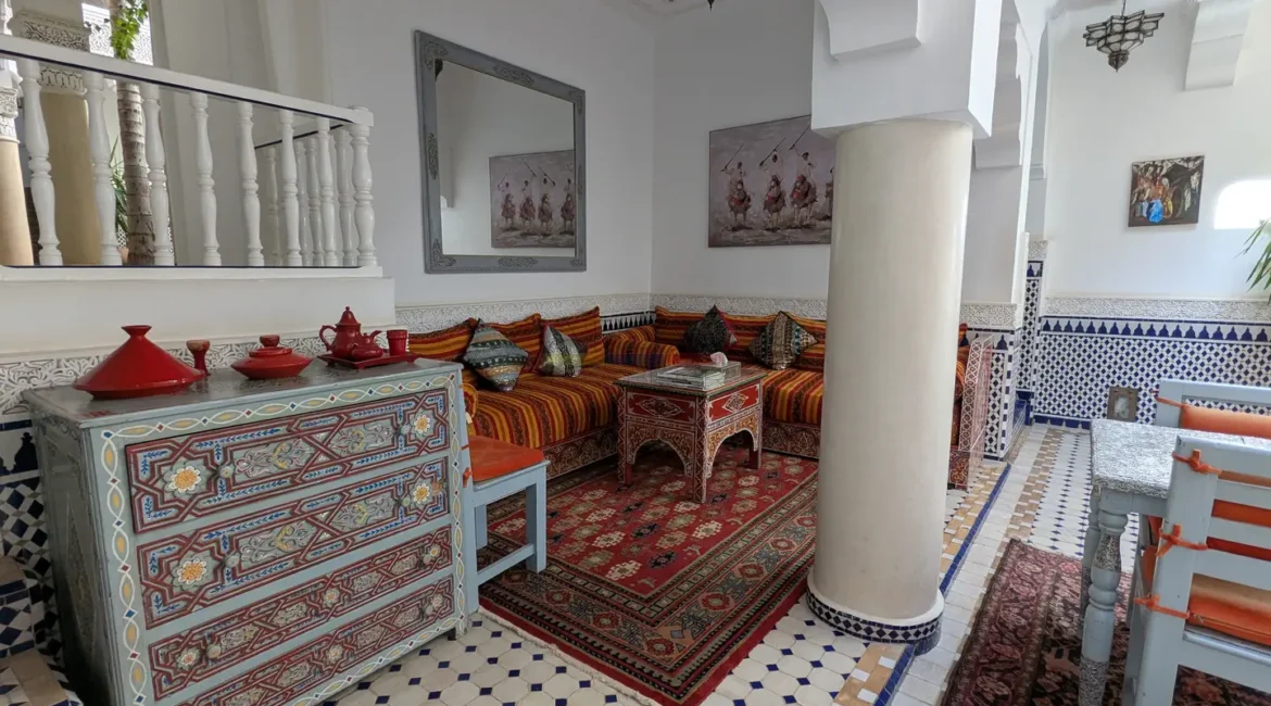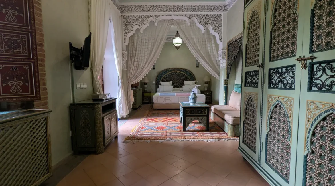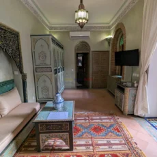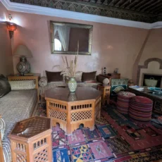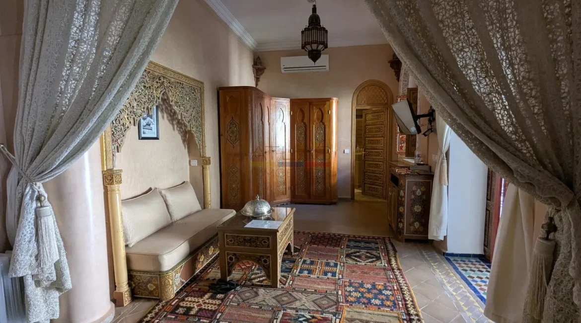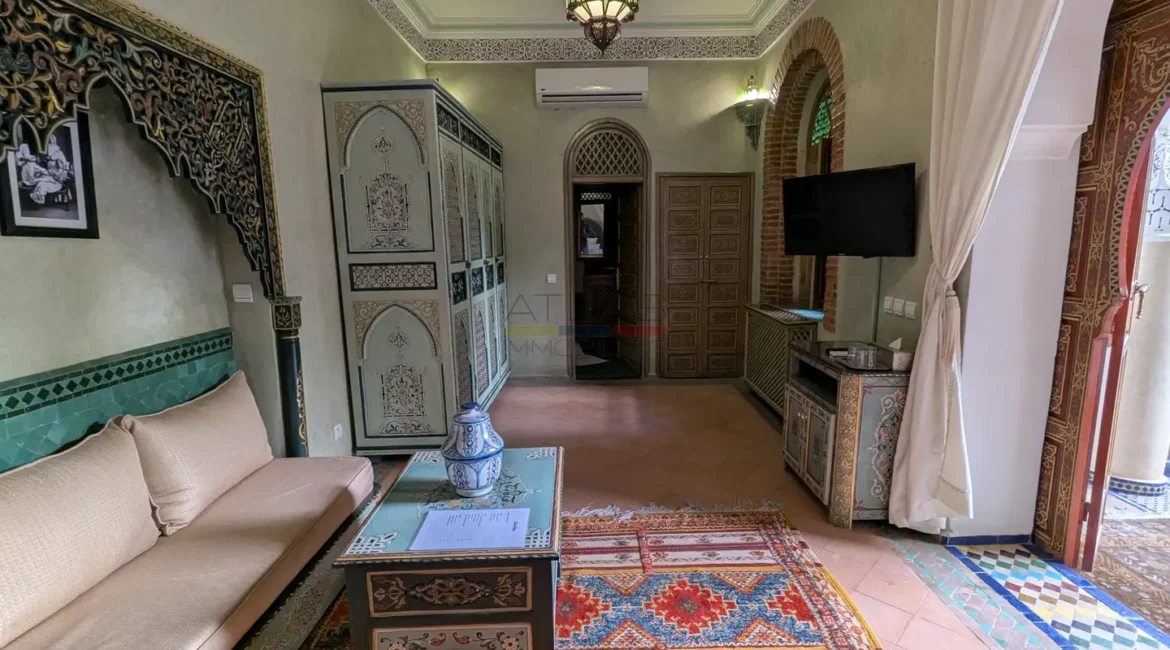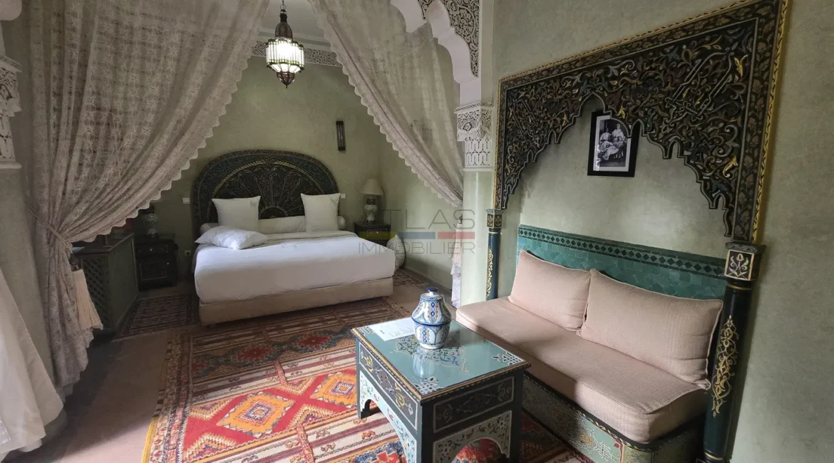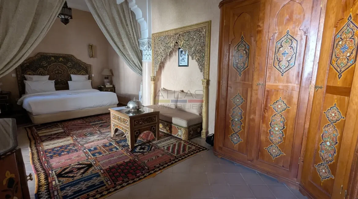 Cette propriété se distingue par une configuration unique : il s’agit de deux riads disposant chacun de leur propre titre de propriété, habilement réunis pour former un ensemble harmonieux et spacieux de 464 m² habitables.