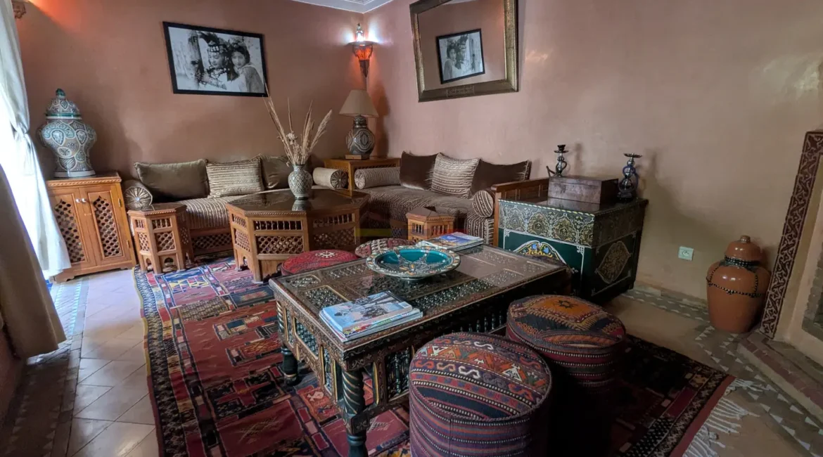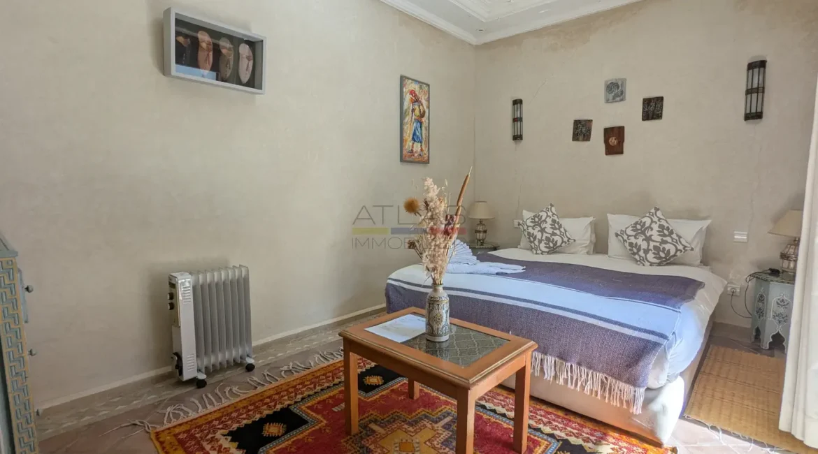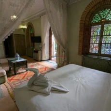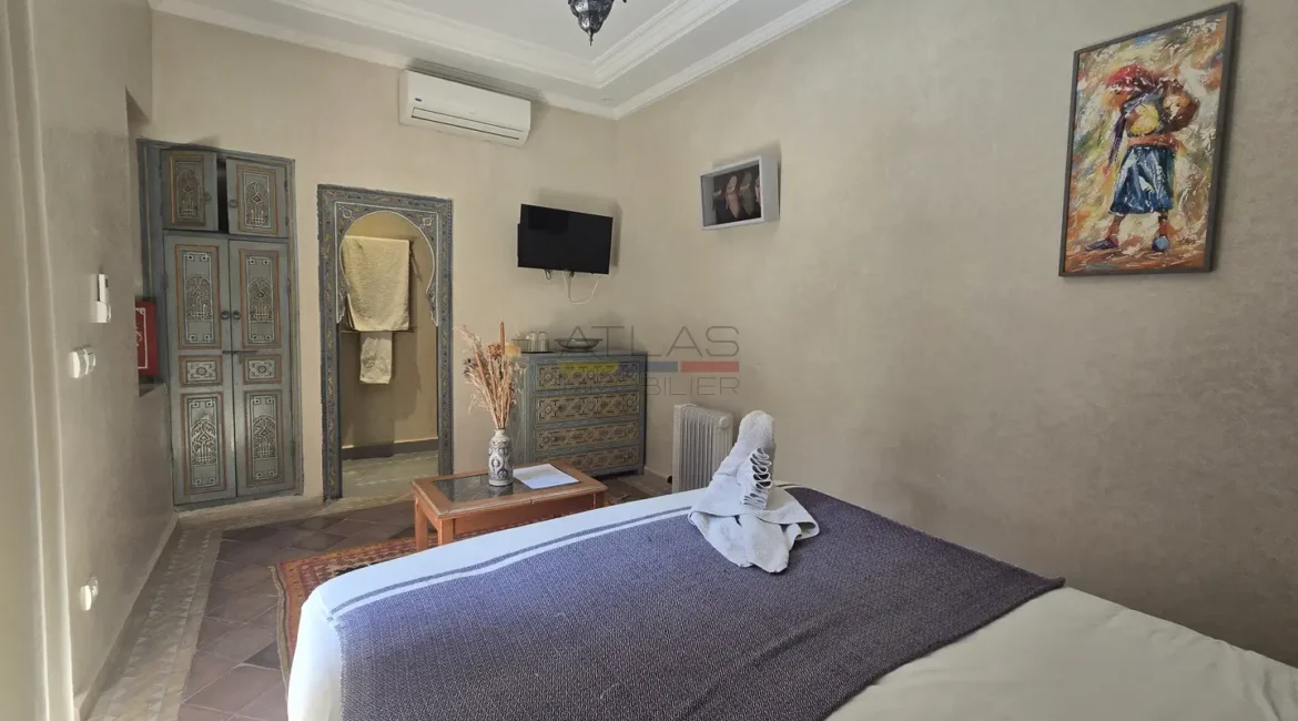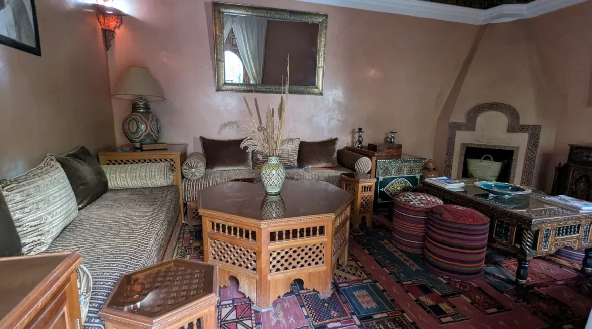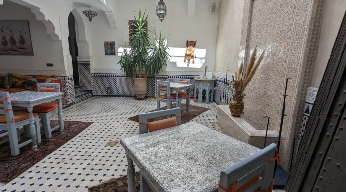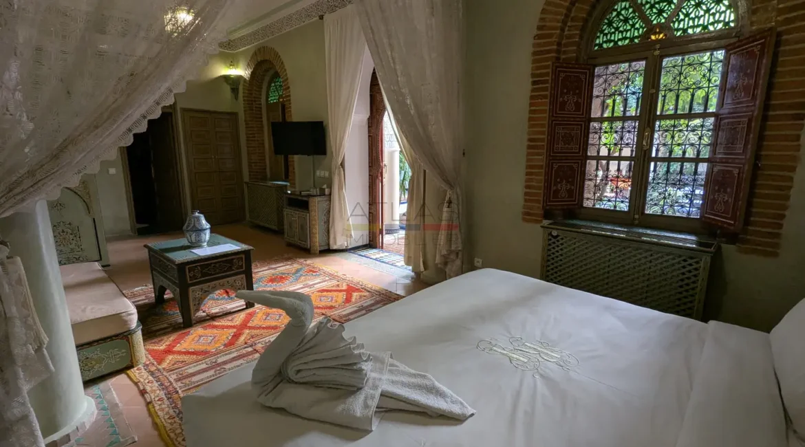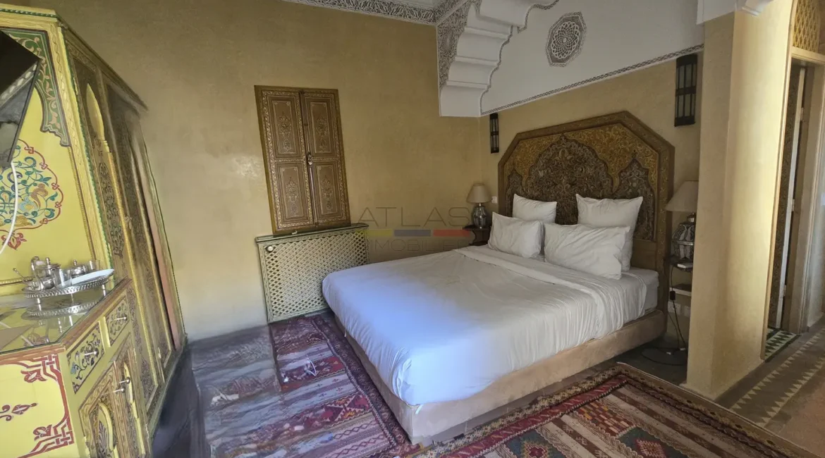 Cette propriété se distingue par une configuration unique : il s’agit de deux riads disposant chacun de leur propre titre de propriété, habilement réunis pour former un ensemble harmonieux et spacieux de 464 m² habitables.