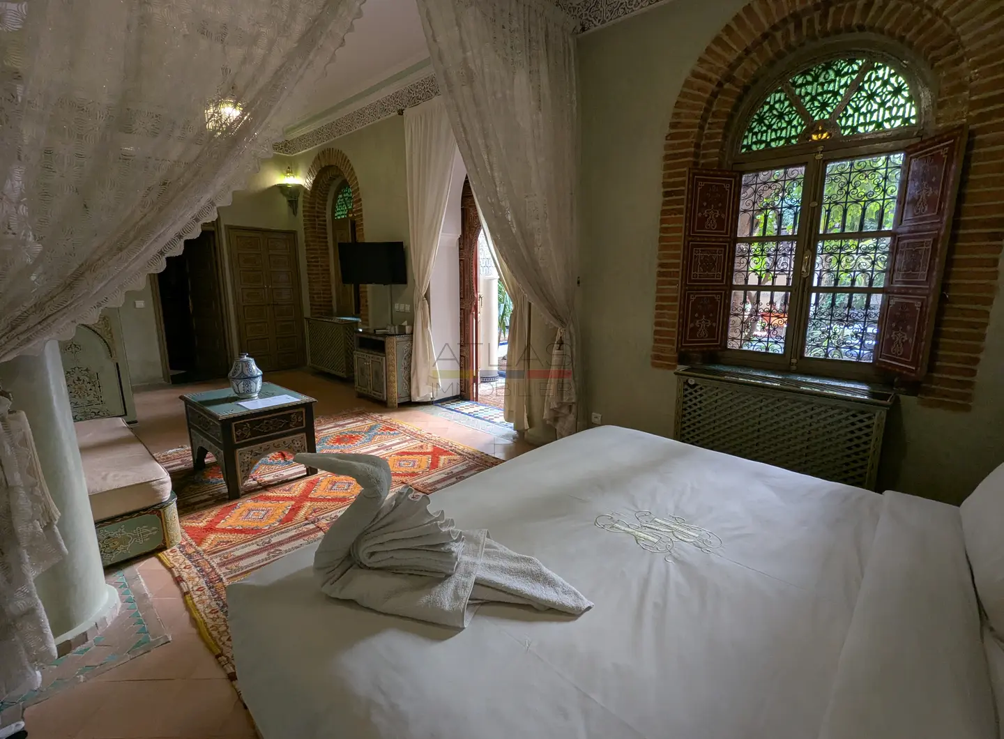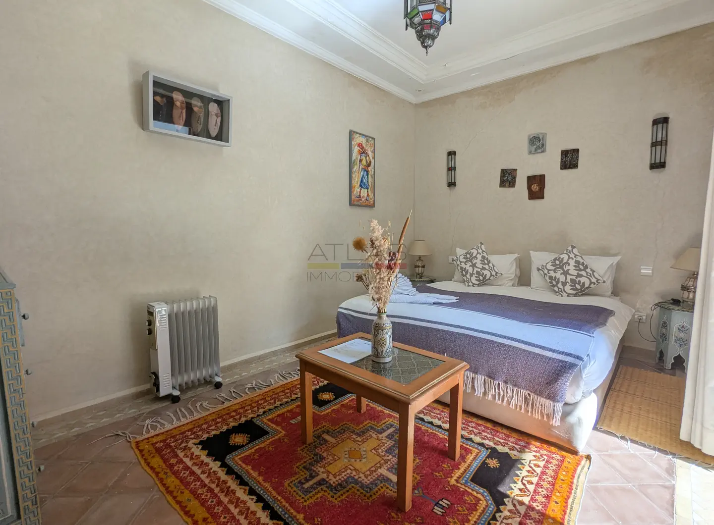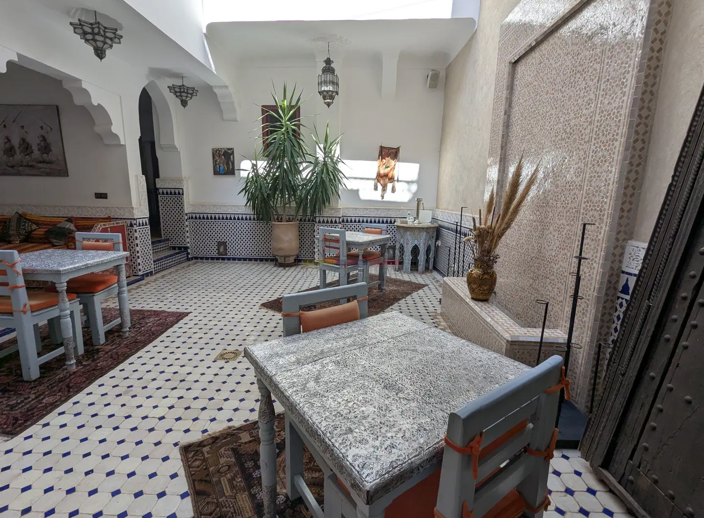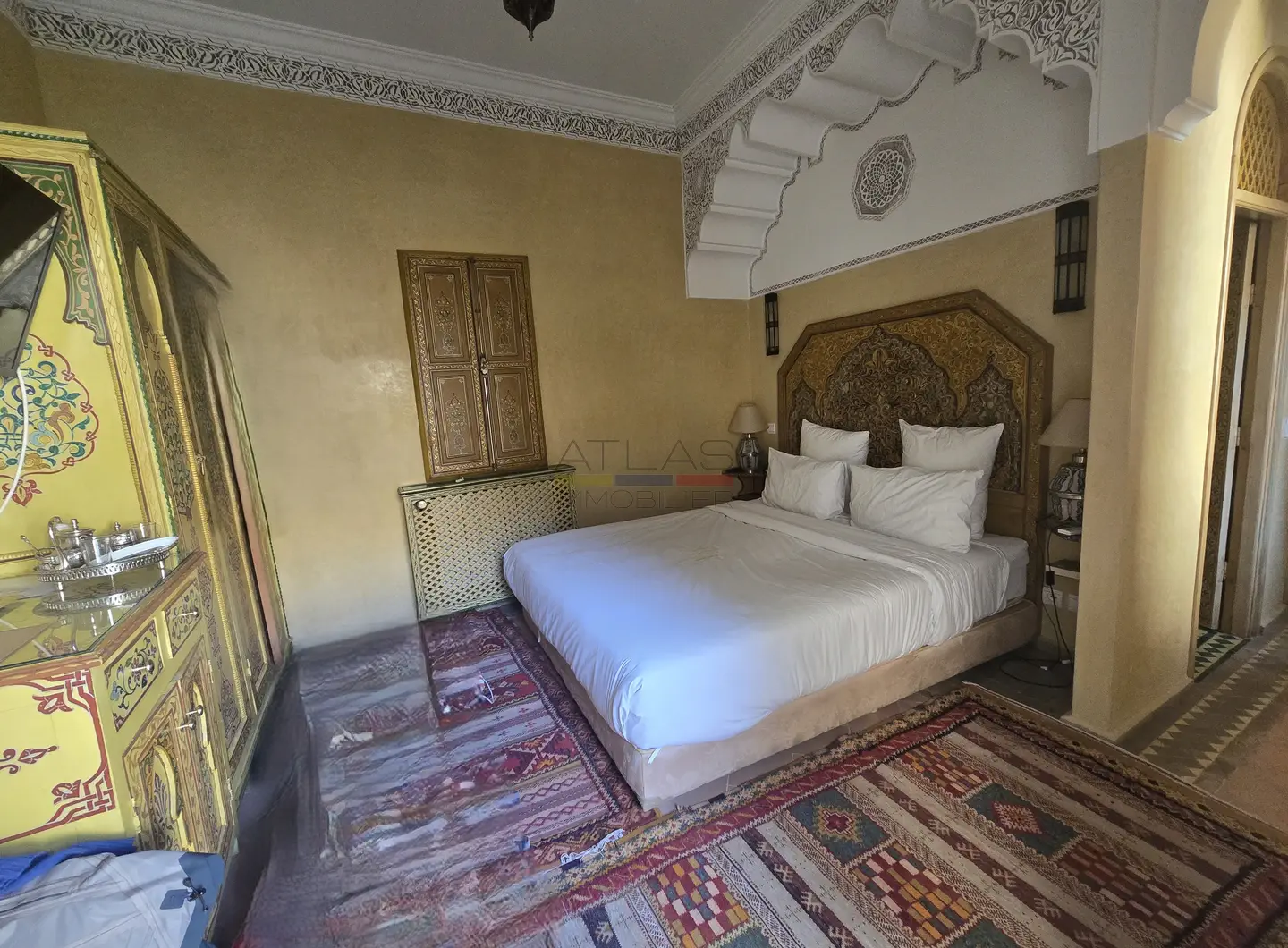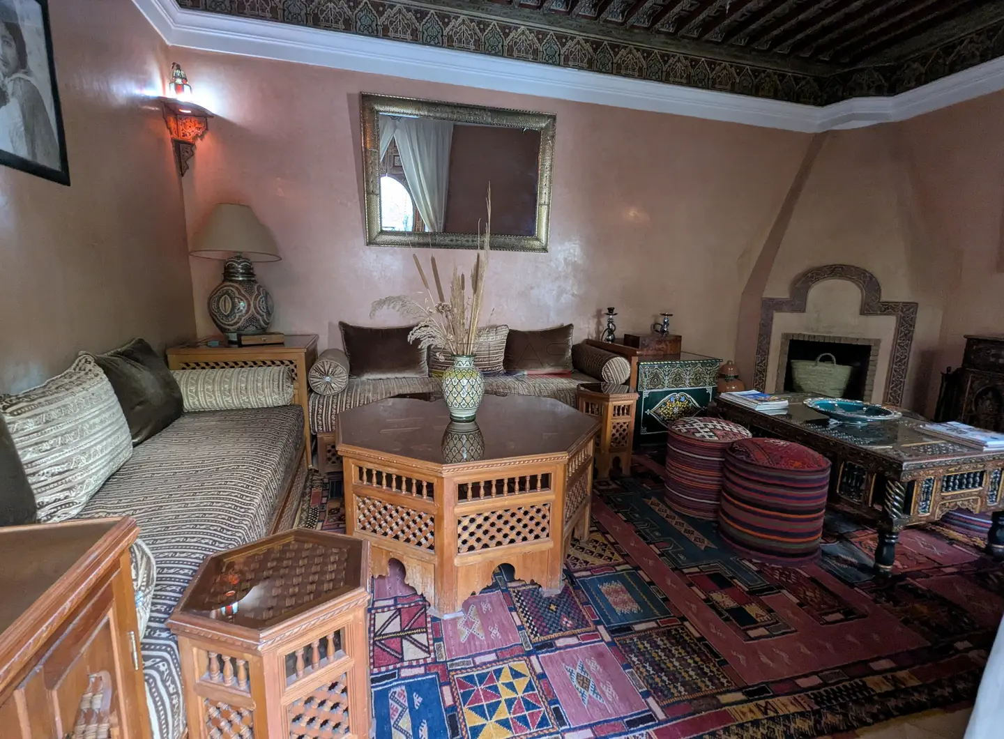 Cette propriété se distingue par une configuration unique : il s’agit de deux riads disposant chacun de leur propre titre de propriété, habilement réunis pour former un ensemble harmonieux et spacieux de 464 m² habitables.