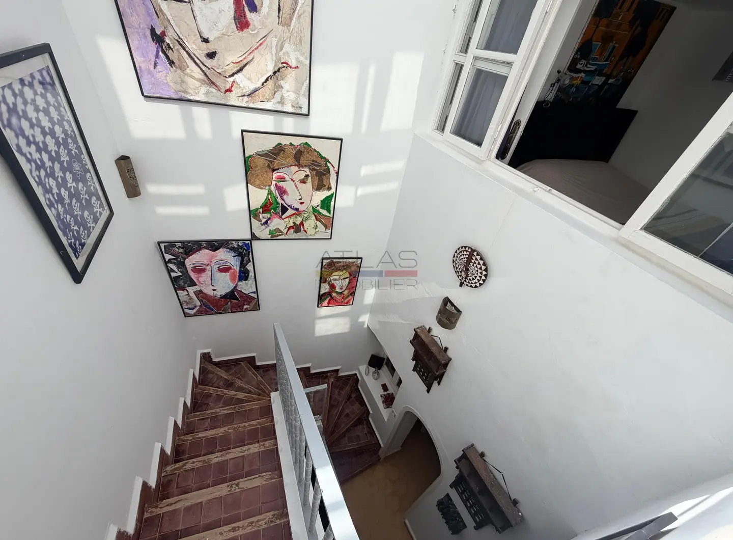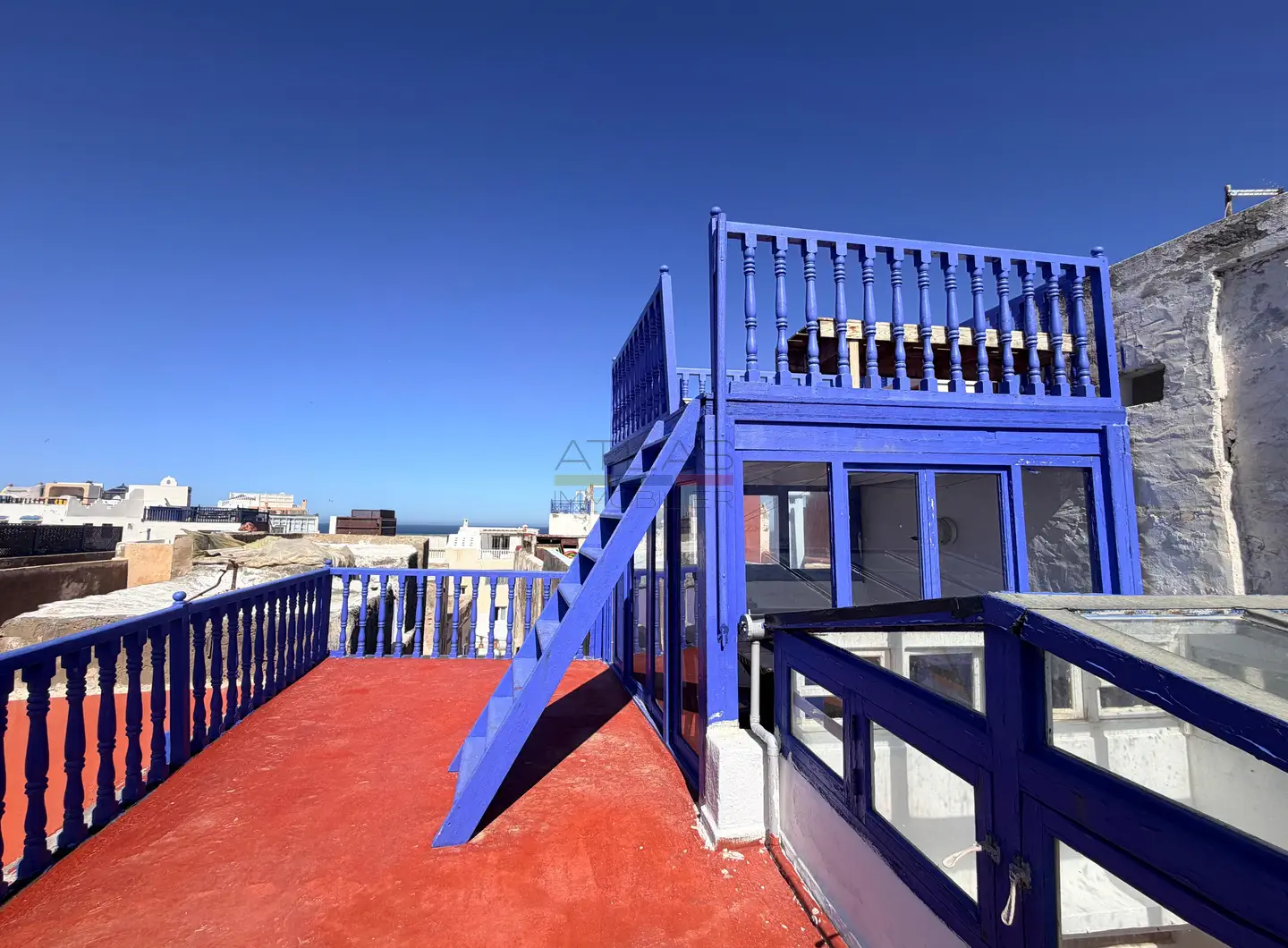 Le dernier étage révèle une double terrasse avec solarium, véritable atout du bien, offrant une vue panoramique sur l’océan Atlantique. Un espace parfait pour se détendre, recevoir ou profiter du climat doux d’Essaouira.