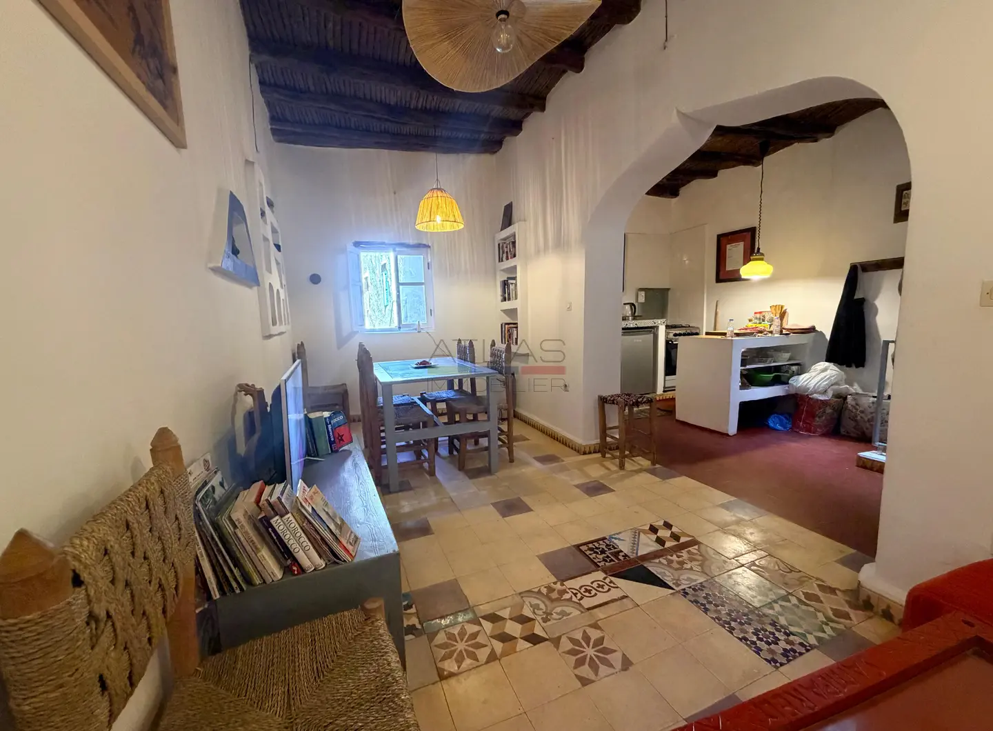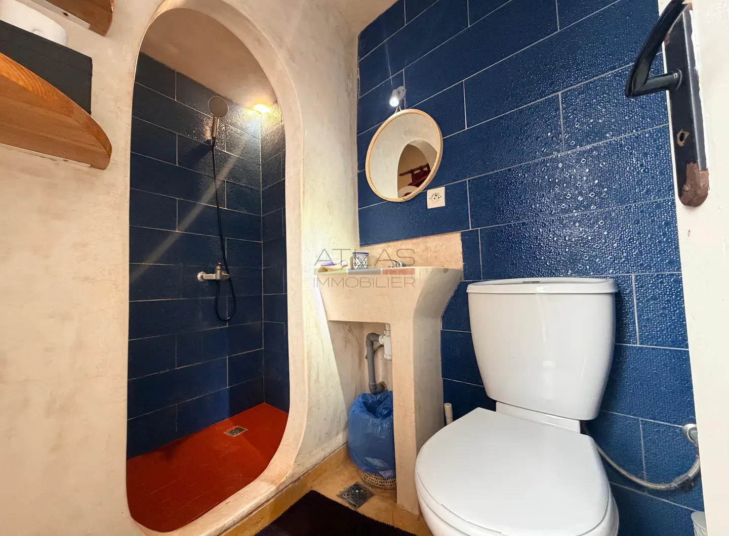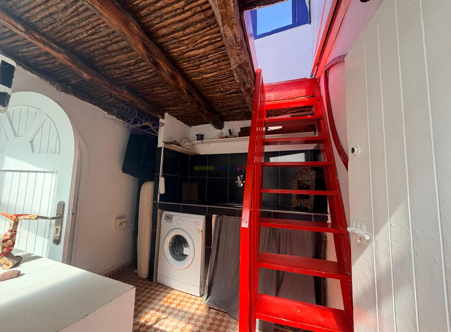 Ce riad traditionnel se déploie harmonieusement sur plusieurs étages. Le premier niveau accueille un salon ouvert convivial avec espace salle à manger, ainsi qu’une cuisine fonctionnelle. À l’étage supérieur, vous trouverez deux chambres confortables accompagnées d’une salle de douche avec WC.