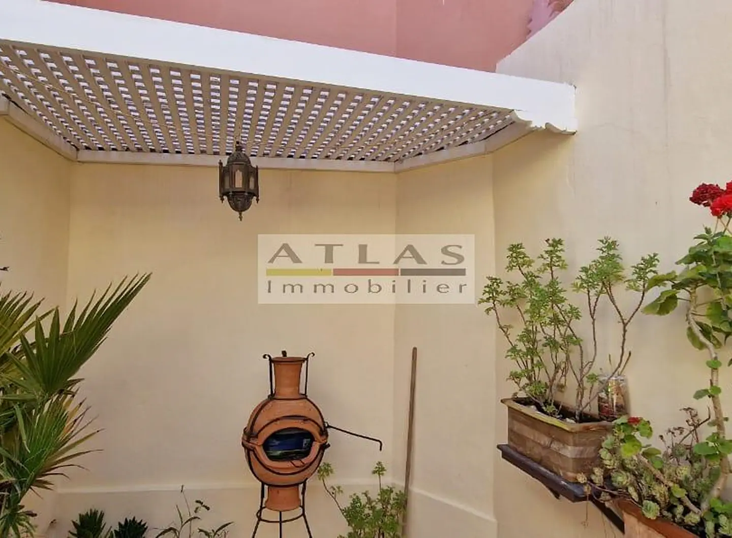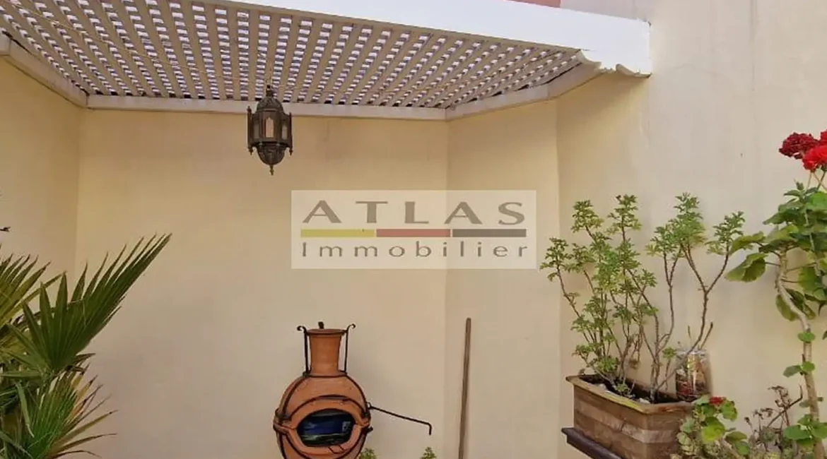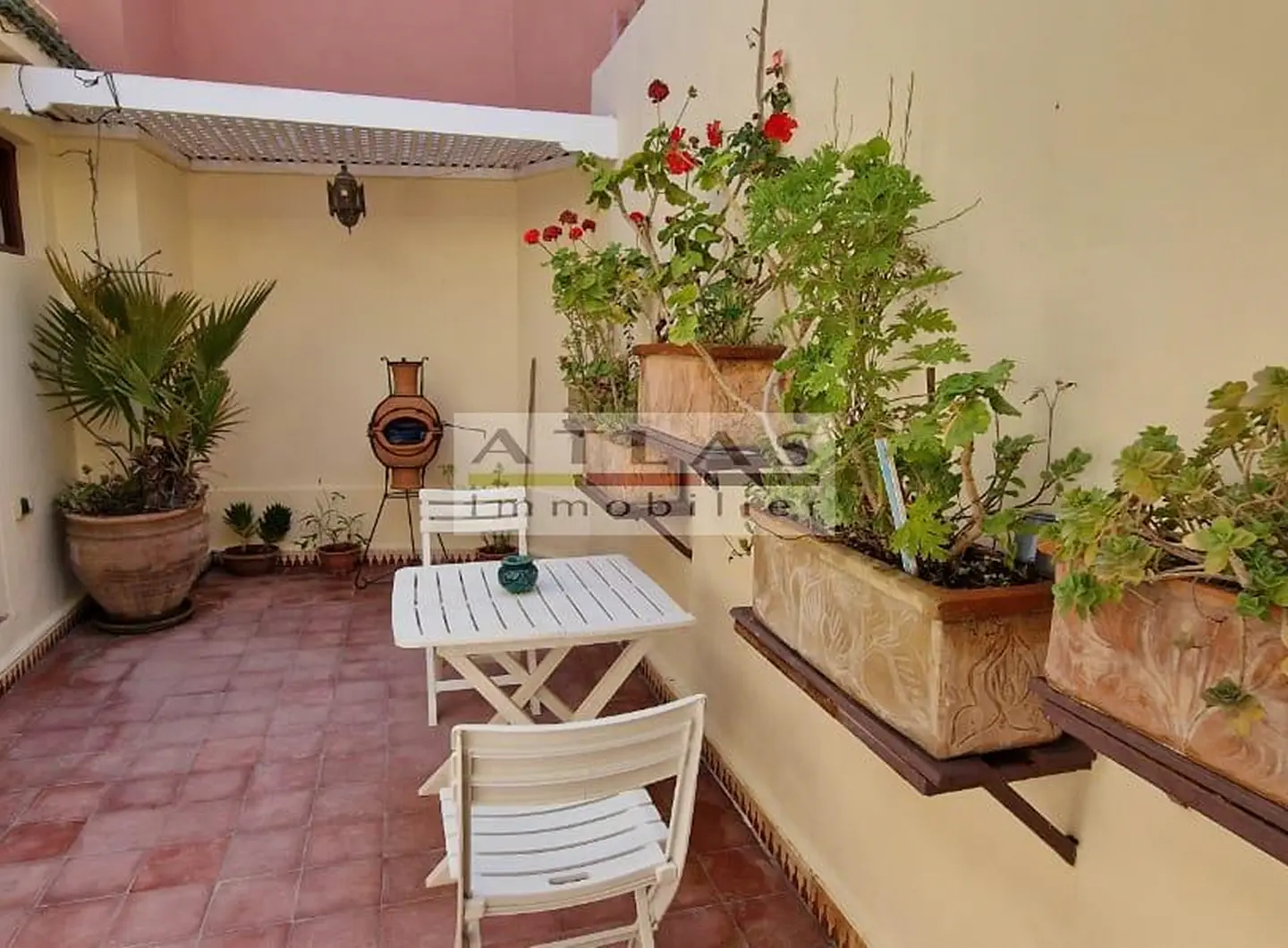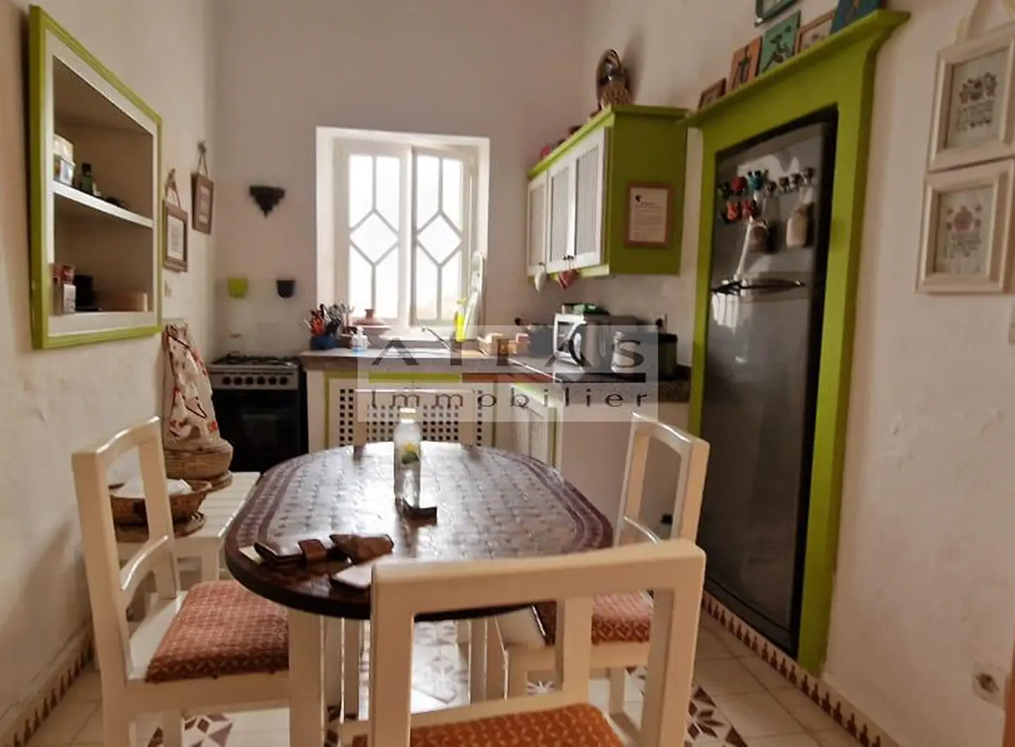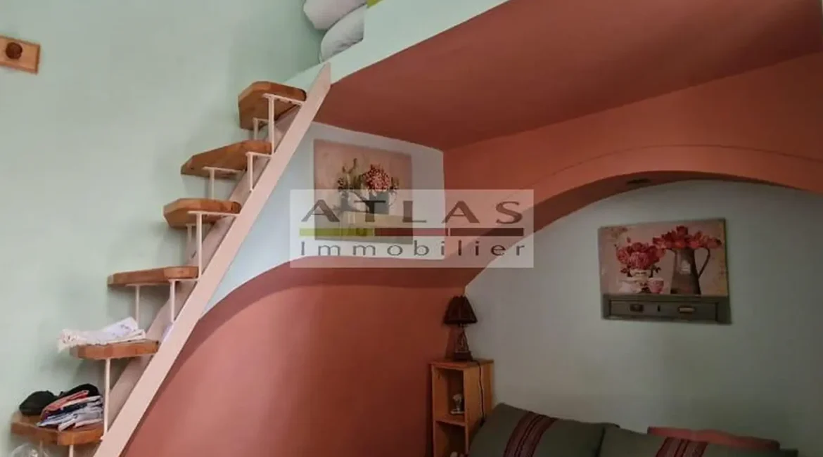 Le deuxième étage, d’une surface de 32 m², comprenait un coin salon agréable, une terrasse propice à la détente, ainsi qu’une chambre avec salle de douche et toilettes. Enfin, le toit-terrasse de 21 m², encore non accessible, offrait un fort potentiel d’aménagement avec vue panoramique sur les toits d’Essaouira.