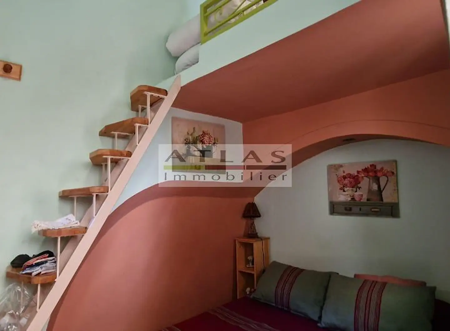Le rez-de-chaussée abritait un espace toilette invité avec douche, pensé pour plus de praticité. Au premier étage, sur une superficie de 37 m², se trouvaient une cuisine spacieuse, une salle à manger conviviale, un salon avec cheminée et une chambre avec mezzanine, offrant confort et caractère.