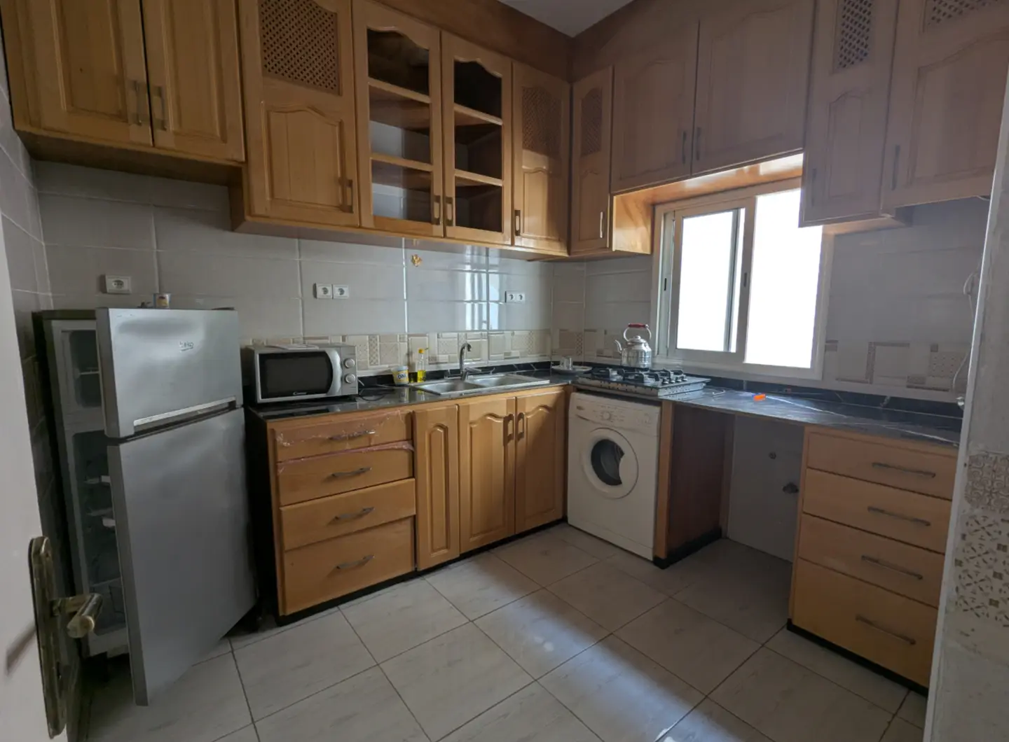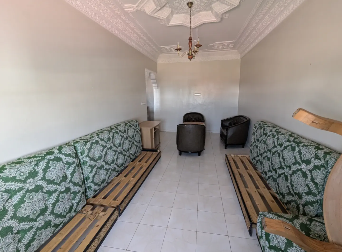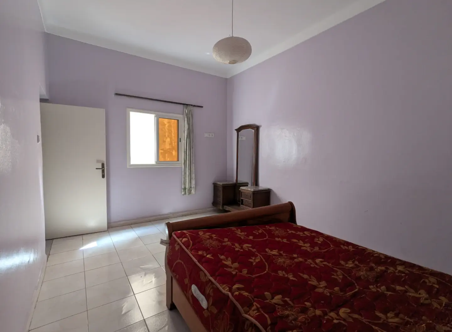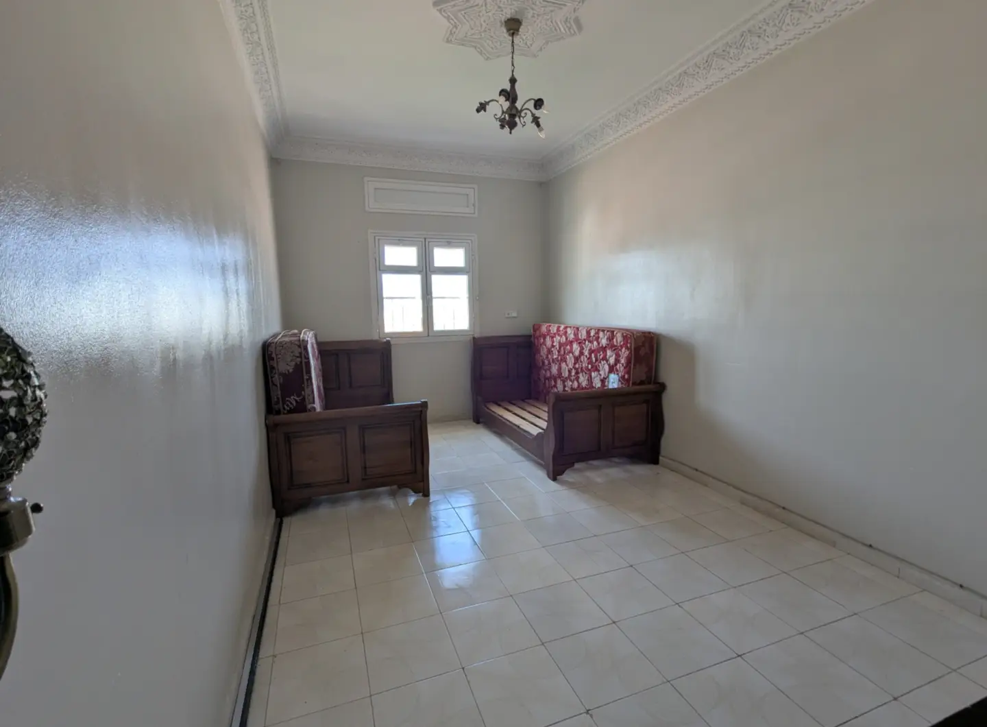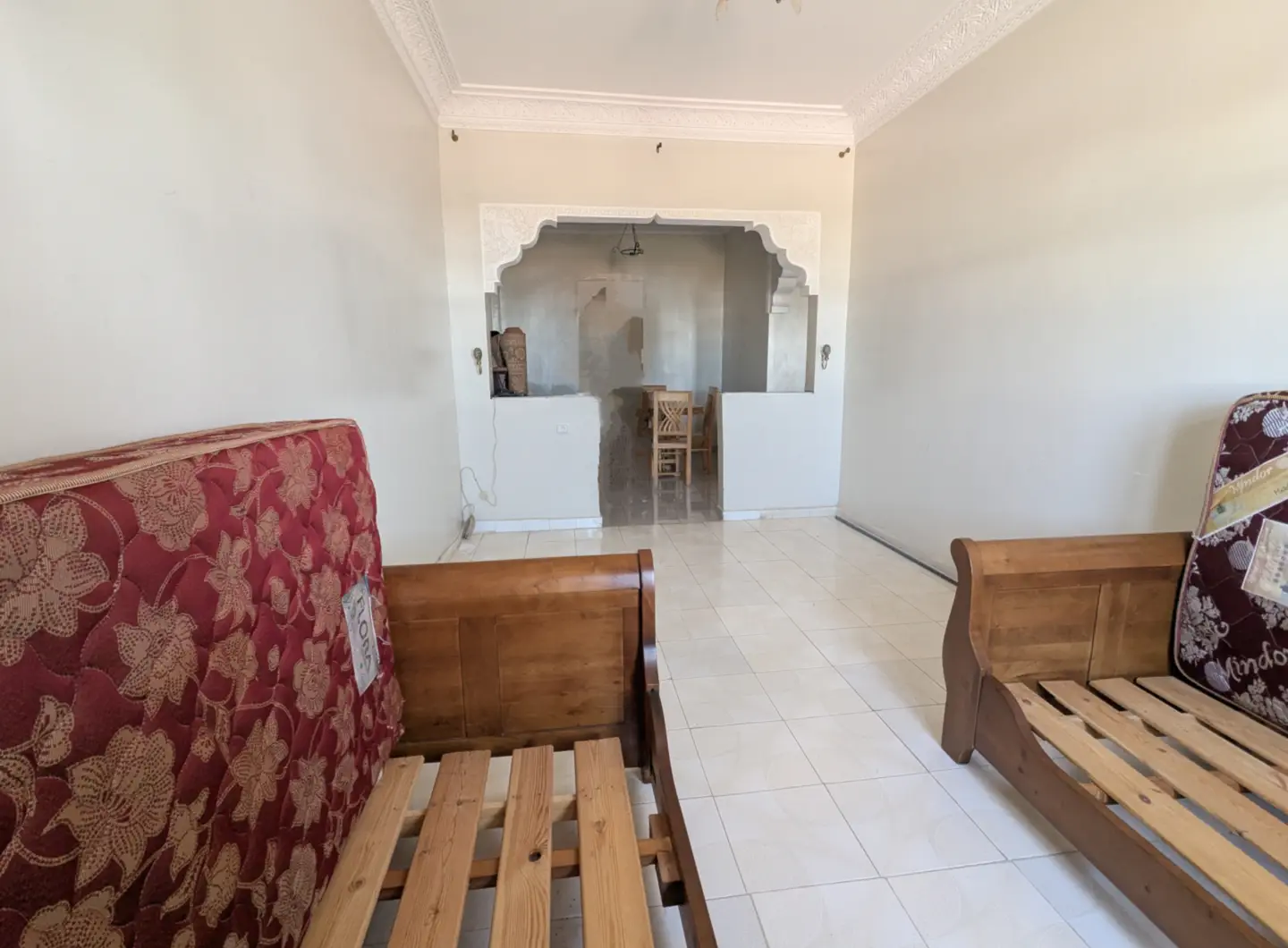 L’appartement comprend un hall d’entrée ouvrant sur une salle à manger et un salon lumineux, complétés par un grand salon marocain. Un hall de nuit dessert une grande chambre à coucher, une salle d’eau équipée d’une douche et de toilettes, ainsi qu’une cuisine récemment rénovée et parfaitement équipée.