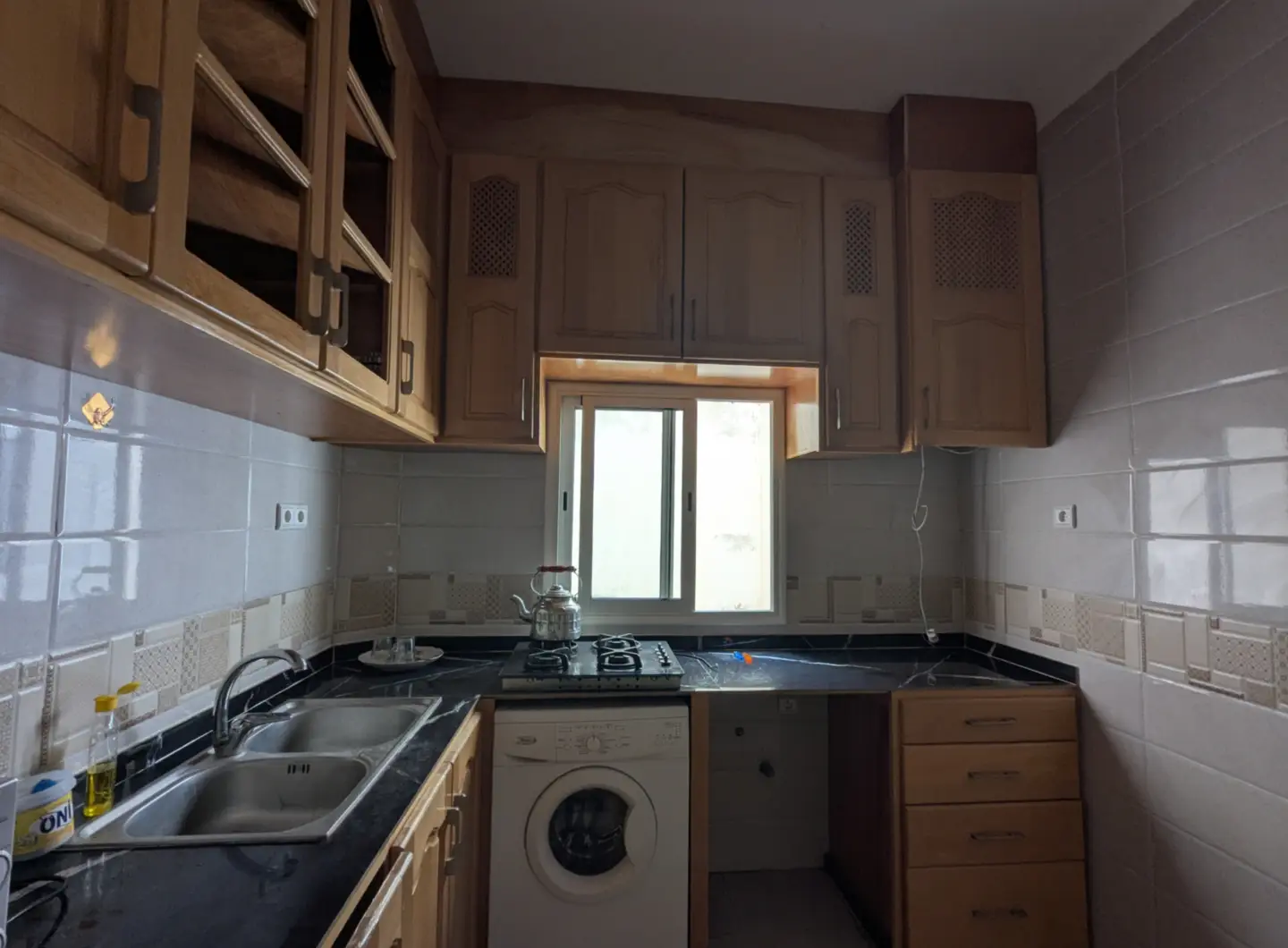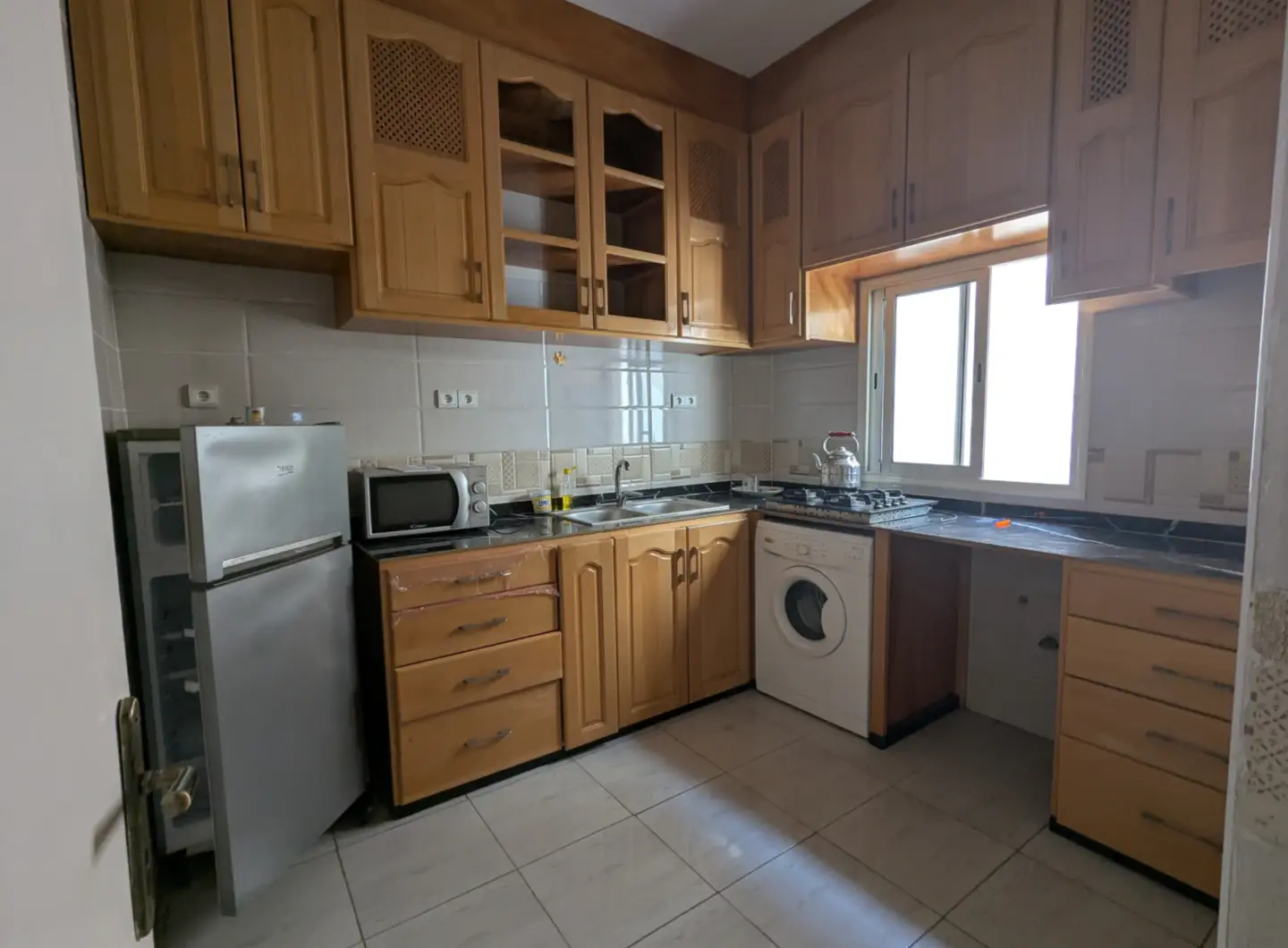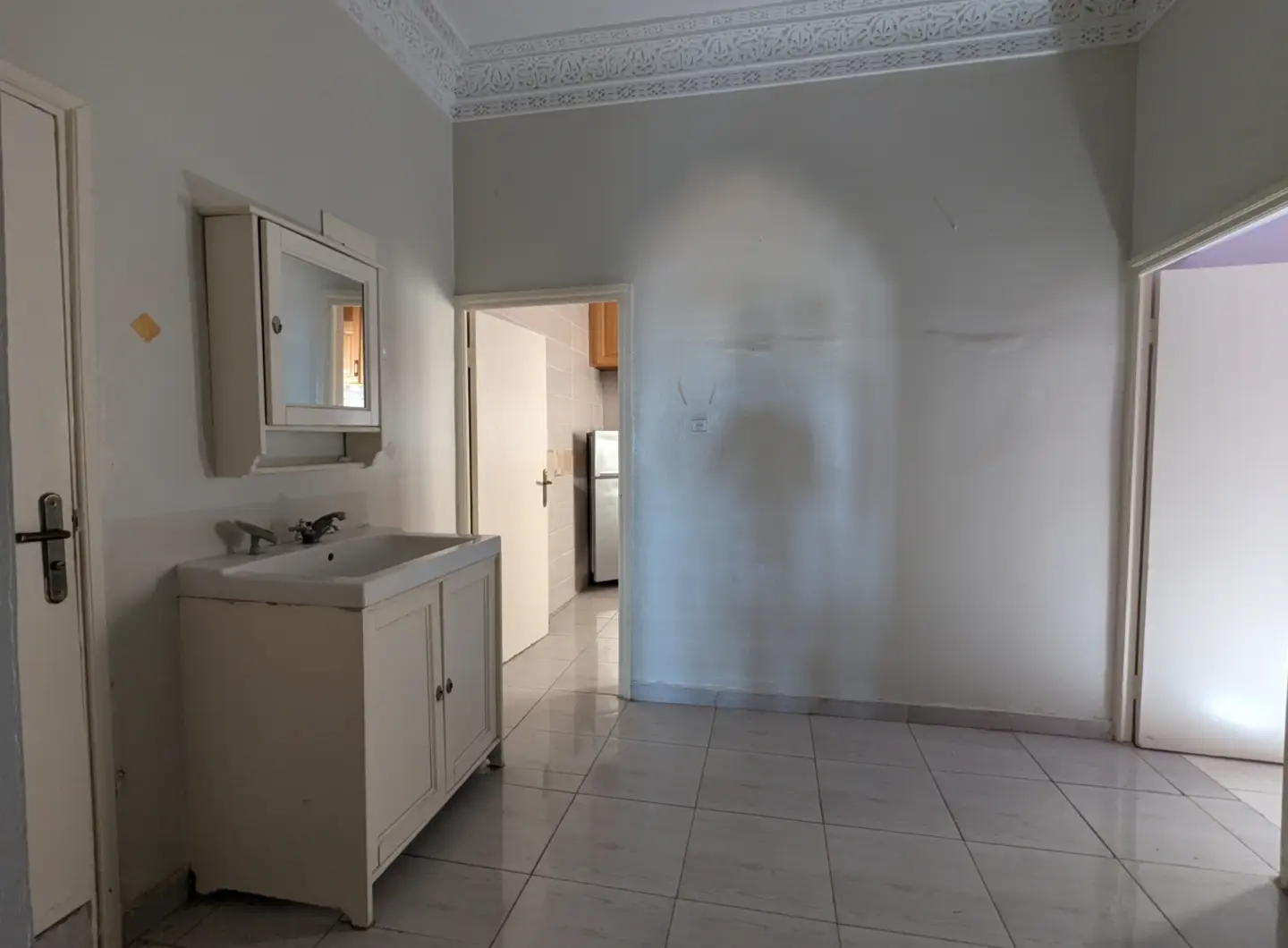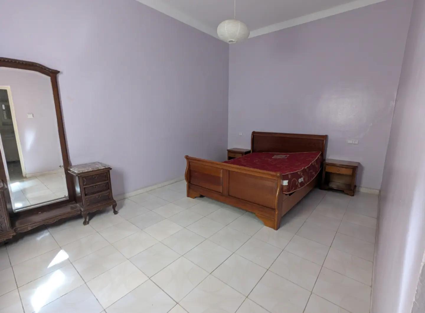 L’appartement comprend un hall d’entrée ouvrant sur une salle à manger et un salon lumineux, complétés par un grand salon marocain. Un hall de nuit dessert une grande chambre à coucher, une salle d’eau équipée d’une douche et de toilettes, ainsi qu’une cuisine récemment rénovée et parfaitement équipée.