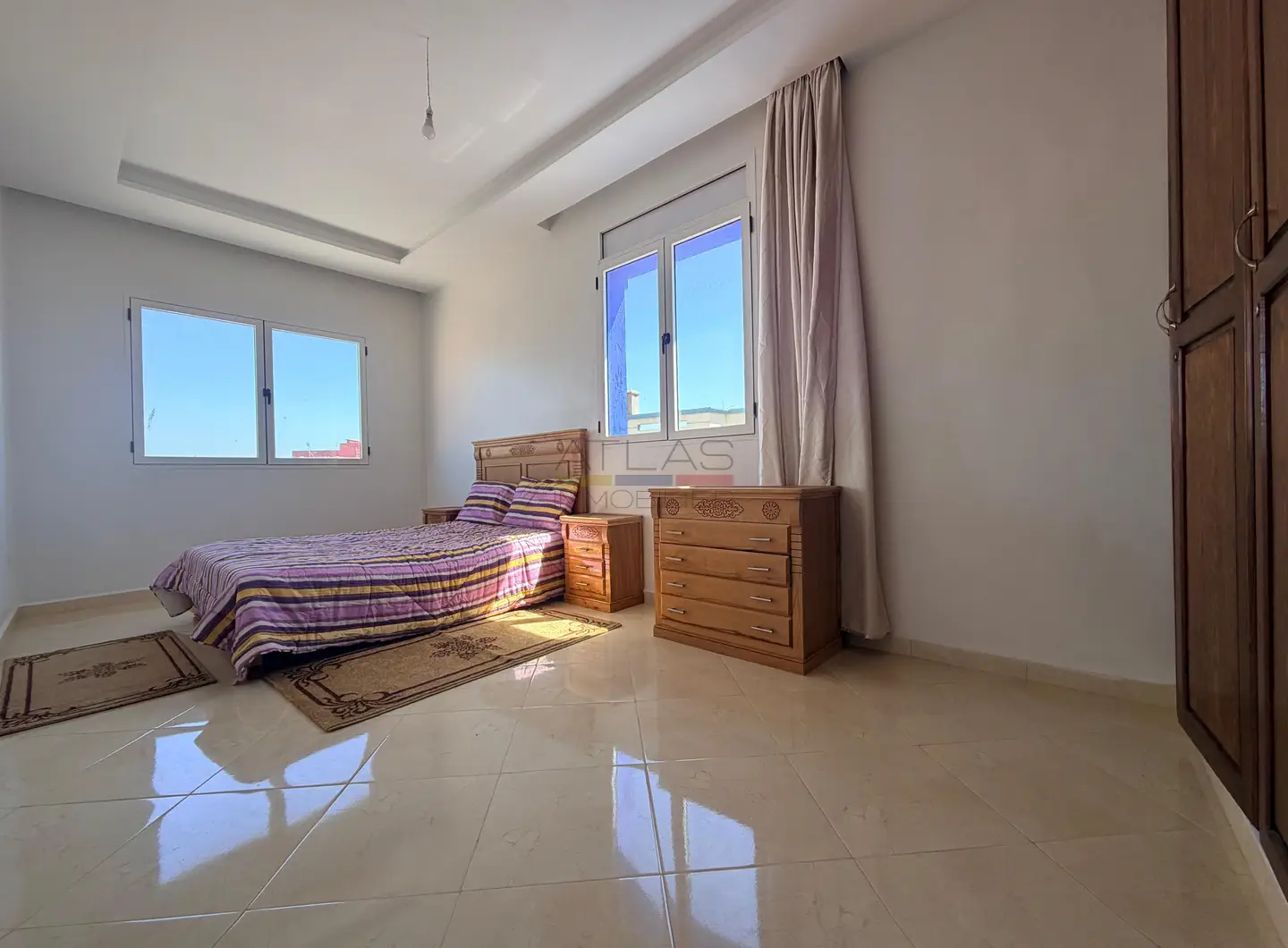 Ce bien immobilier à louer à Essaouira constitue une opportunité idéale pour ceux recherchant un appartement meublé spacieux, lumineux et bien situé, dans un quartier prisé.
