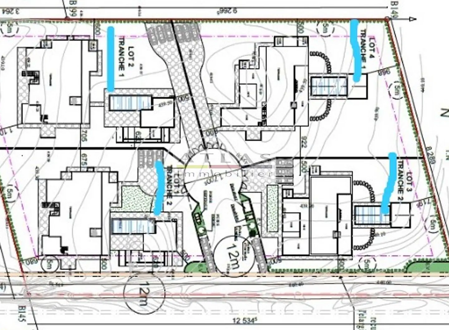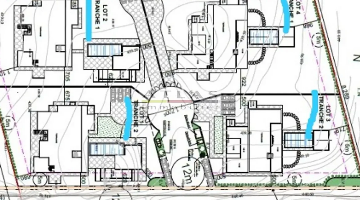 Ce terrain s’intègre dans un lotissement de standing comprenant quatre villas : une en finition, une en cours de construction et deux terrains nus, dont celui-ci. Les plans autorisés sont modifiables, avec la possibilité de construire en R+1, permettant d’optimiser l’espace habitable et de concevoir une villa sur mesure.