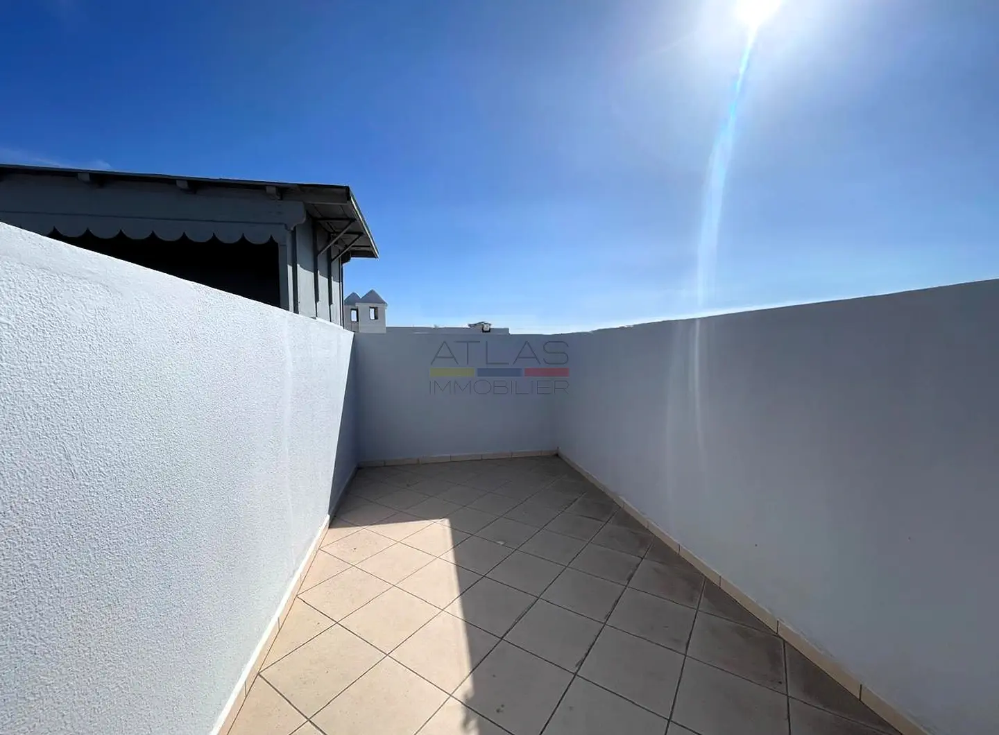Un atout rare : une terrasse privative située sur le toit, idéale pour profiter du climat doux d’Essaouira et des brises marines. Le bien dispose également d’un chauffe-eau installé et de compteurs d’eau et d’électricité à individualiser au nom du locataire.