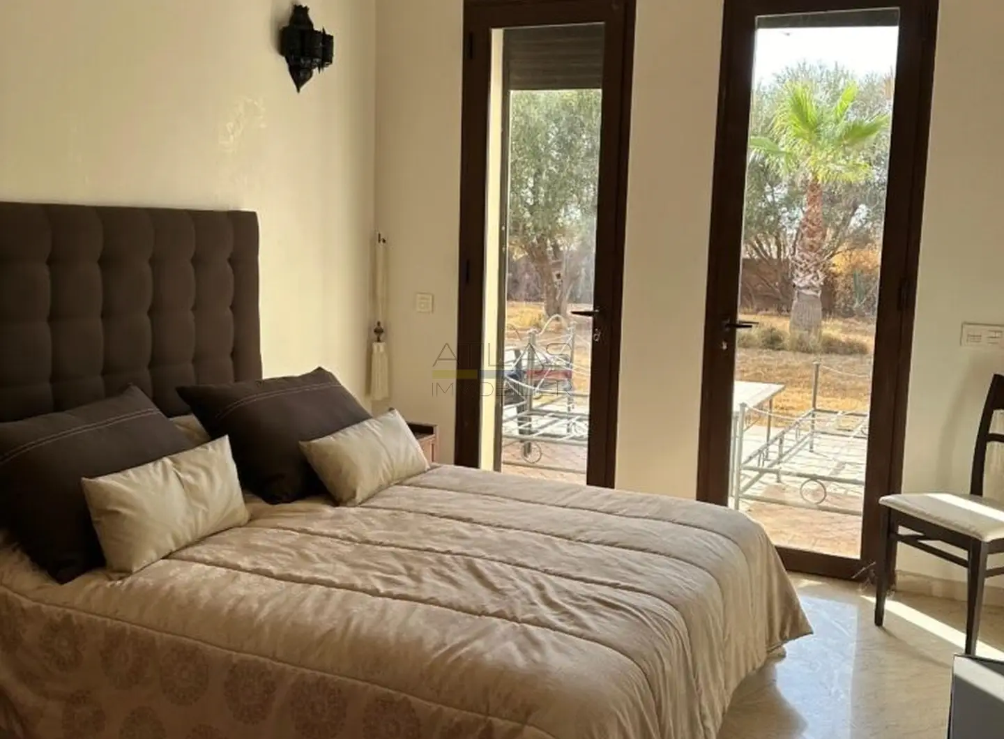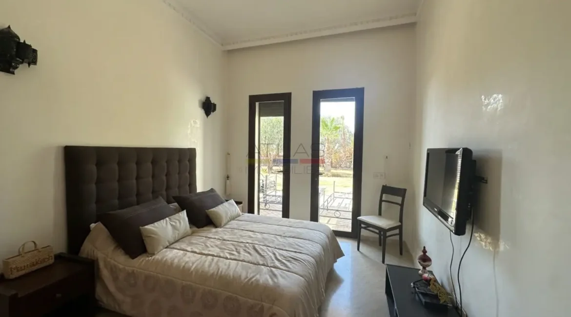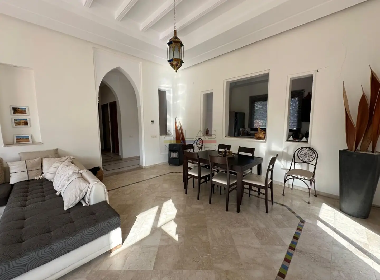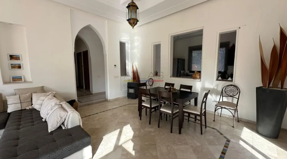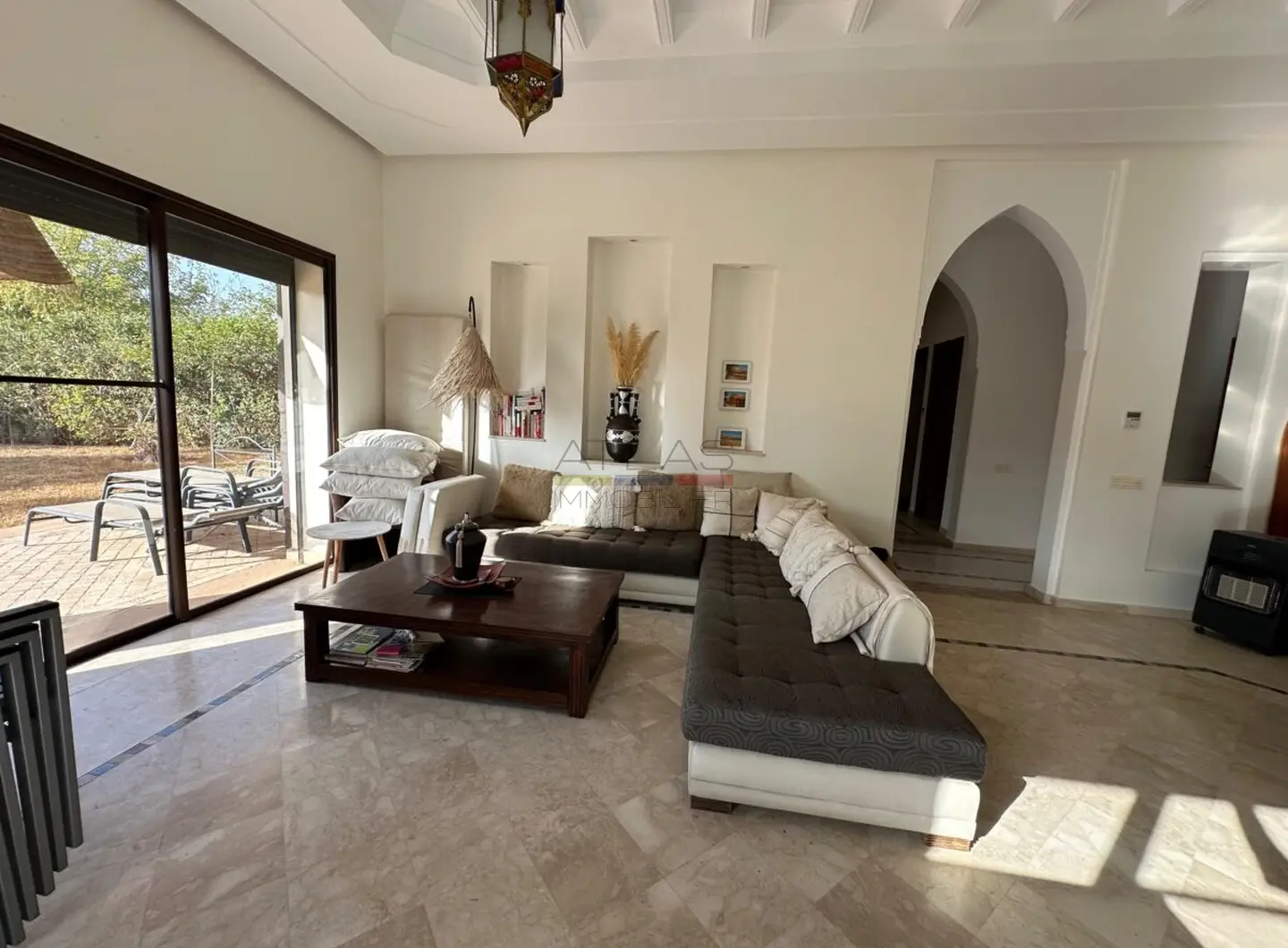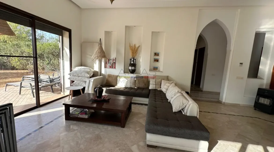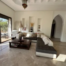 Découvrez cette superbe villa de plain-pied, située dans une résidence privée et sécurisée, à seulement 20 minutes de Marrakech. Un véritable cocon de tranquillité, cette propriété combine confort, élégance et intimité dans un environnement verdoyant, parfait pour des moments de détente.