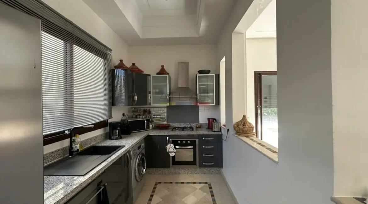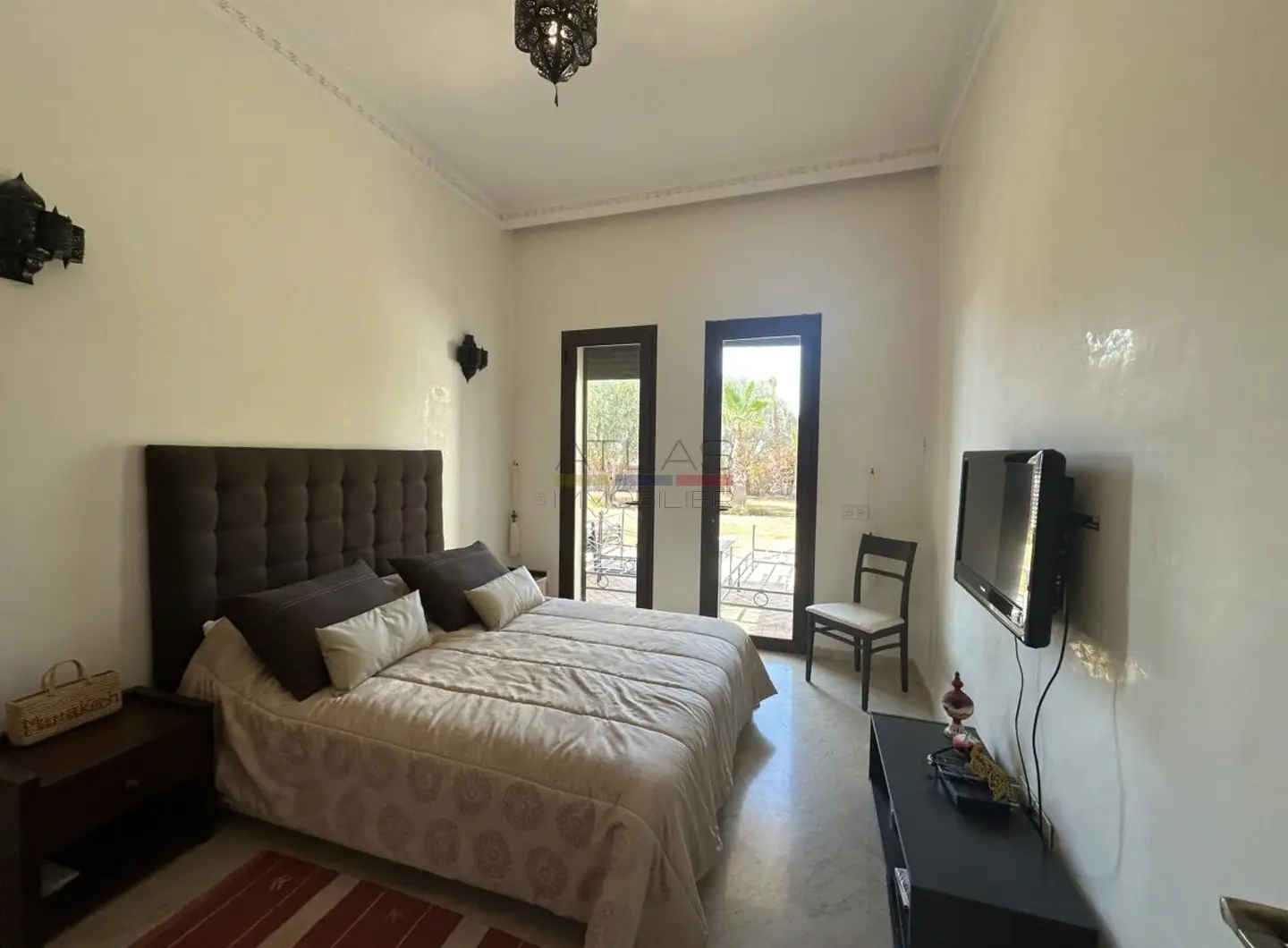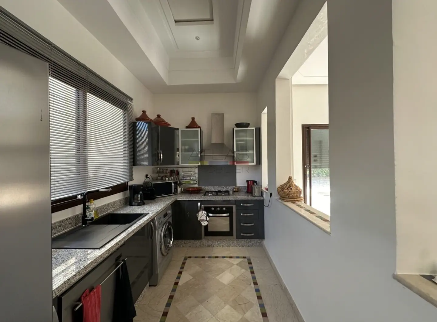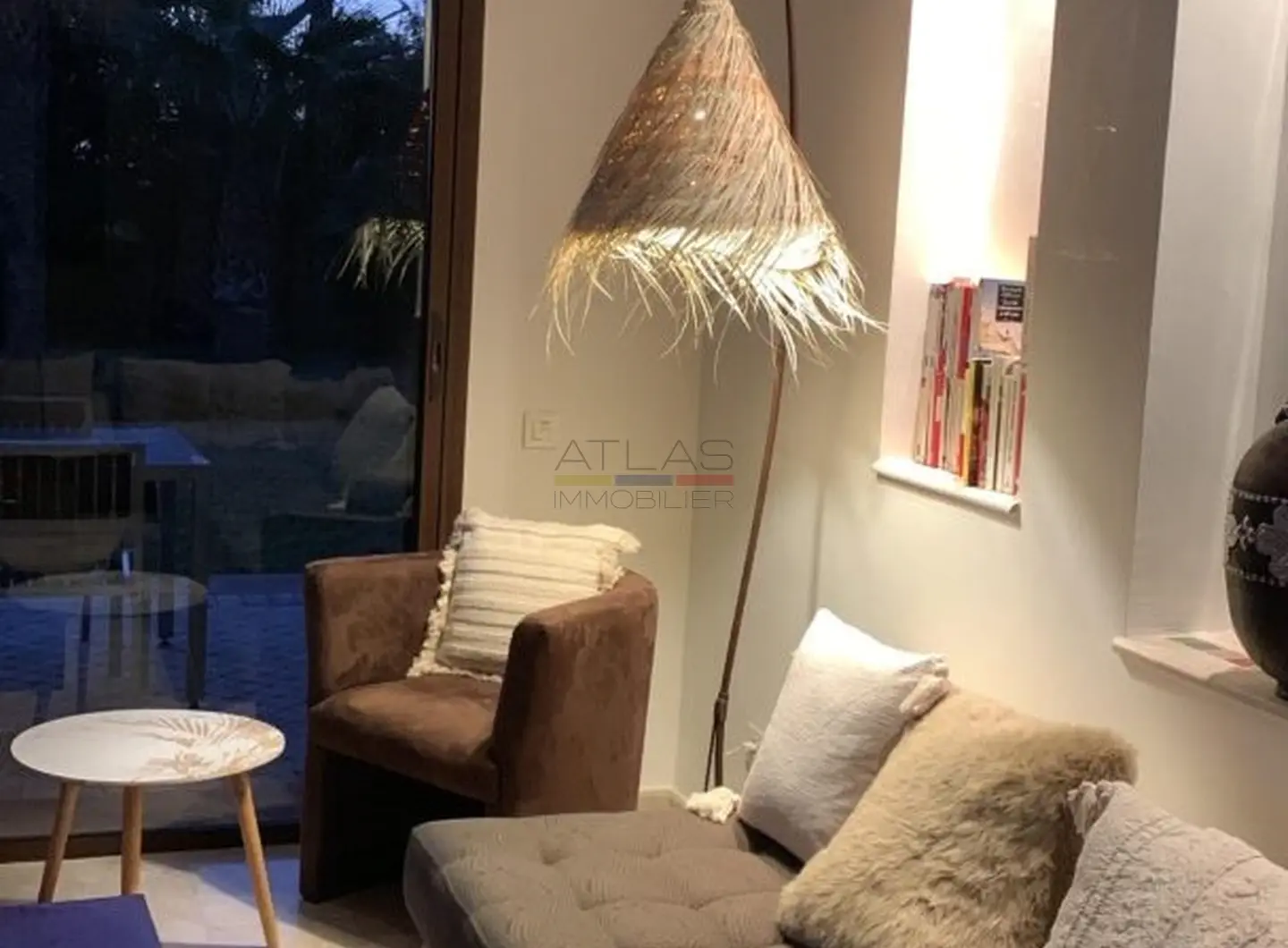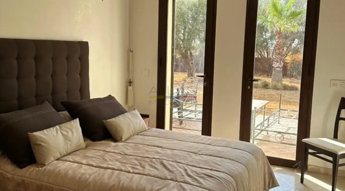 Découvrez cette superbe villa de plain-pied, située dans une résidence privée et sécurisée, à seulement 20 minutes de Marrakech. Un véritable cocon de tranquillité, cette propriété combine confort, élégance et intimité dans un environnement verdoyant, parfait pour des moments de détente.