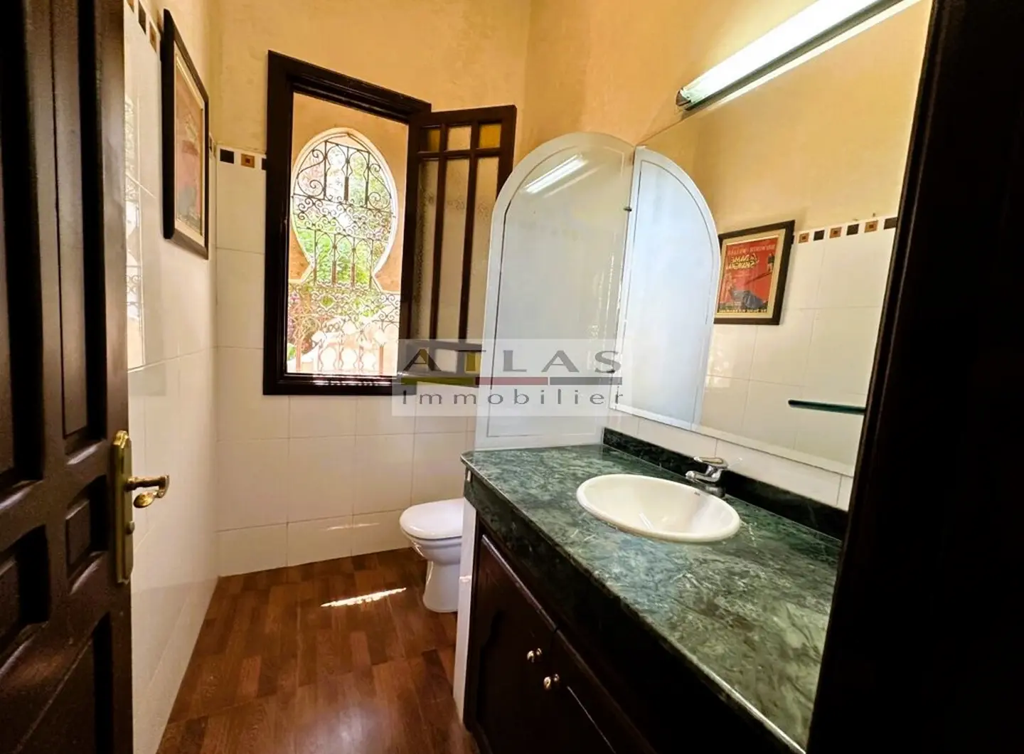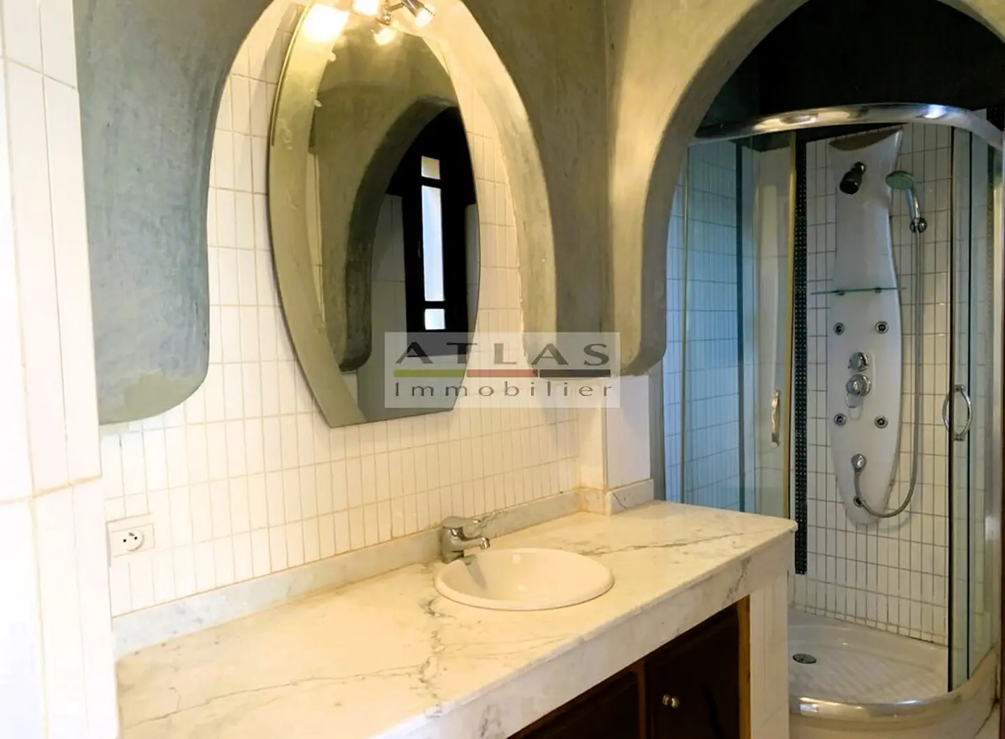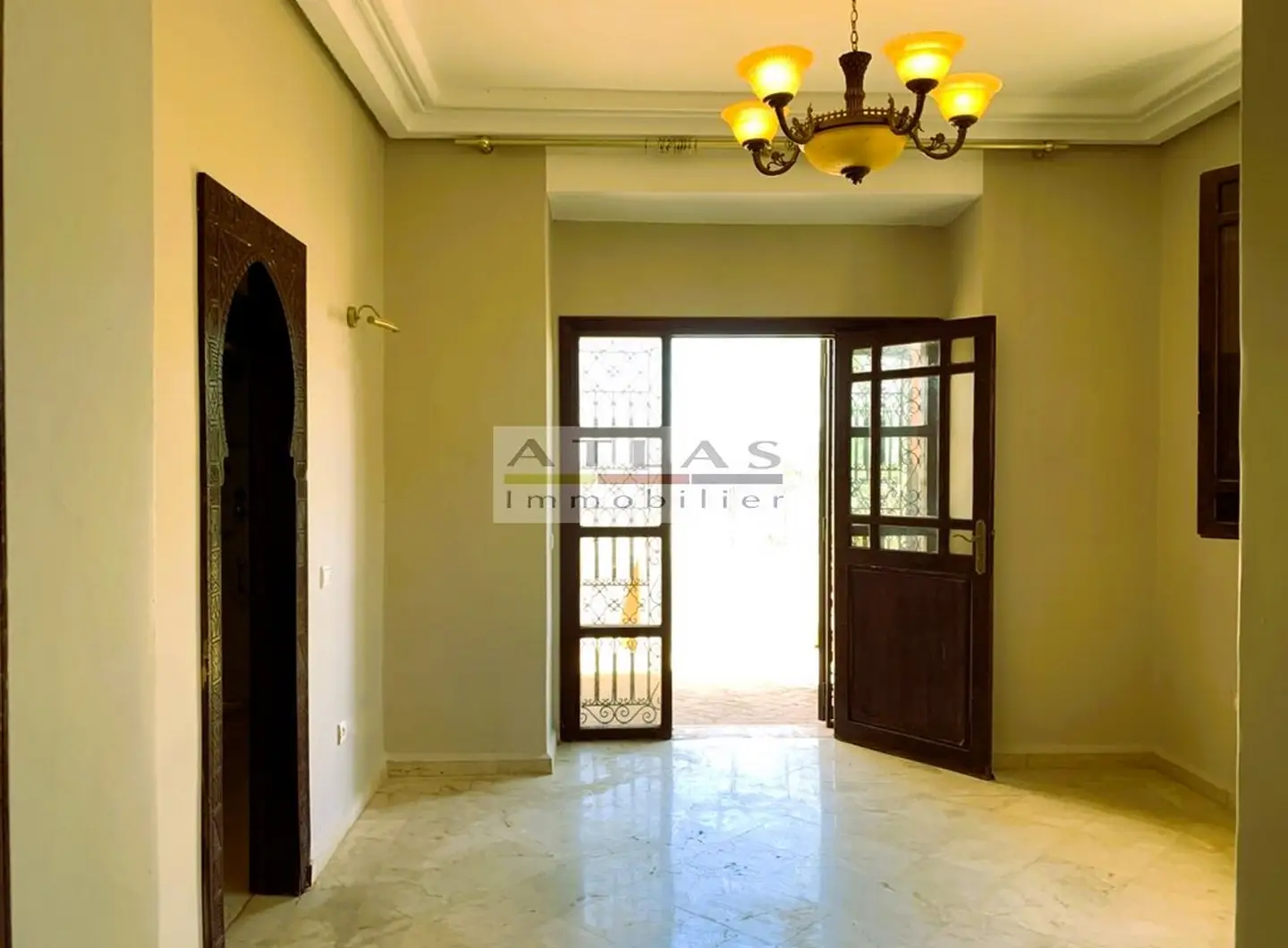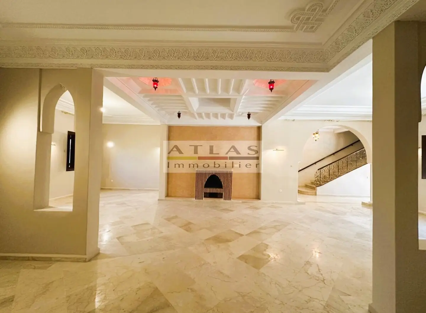 Découvrez cette superbe villa indépendante, située à moins de 15 minutes du centre de Marrakech, dans une petite copropriété calme et familiale. Offrant un cadre de vie paisible et raffiné, cette propriété exceptionnelle se distingue par ses espaces généreux et sa piscine privée. Le rez-de-chaussée se compose d’un vaste espace de vie divisé en trois parties, baigné de lumière naturelle et ouvert sur un jardin luxuriant ainsi que sur la piscine. La cuisine séparée, équipée d’une arrière-cuisine et d’un espace dédié au personnel, allie à la fois praticité et confort. À l’étage, quatre suites spacieuses vous attendent, dont deux avec terrasses offrant une vue imprenable sur les environs. Idéale pour une famille en quête de confort ou pour un investissement locatif, cette villa combine élégance, tranquillité et proximité de Marrakech.
