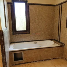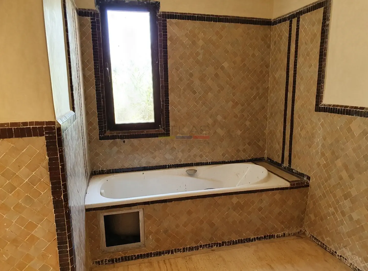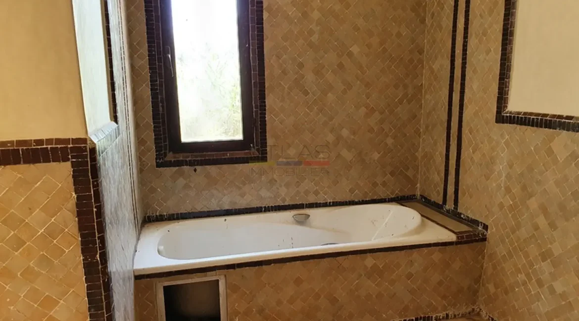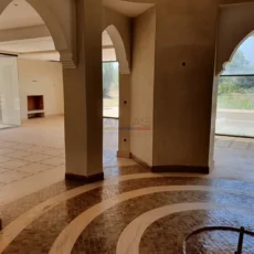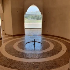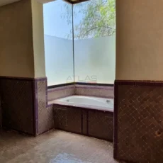 Côté prestations, cette propriété se distinguait par ses finitions de qualité : climatisation gainable réversible dans toutes les chambres, murs en tadellakt, sols en marbre avec calepinage en zellige, menuiseries en bois de cèdre et aluminium haut de gamme, cuisine aménagée avec électroménager, panneaux solaires pour l’eau chaude, éclairage intégré et équipements sanitaires Rocca 1er choix.