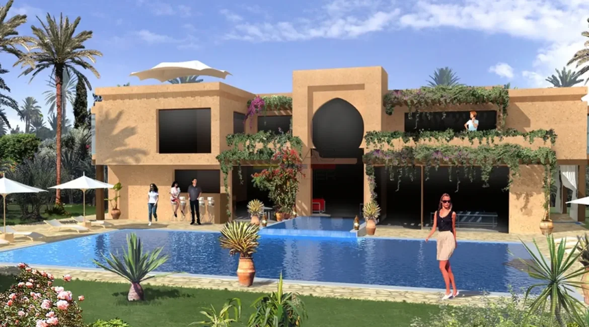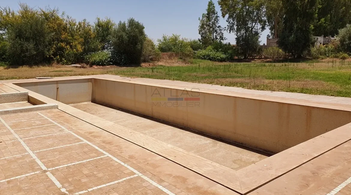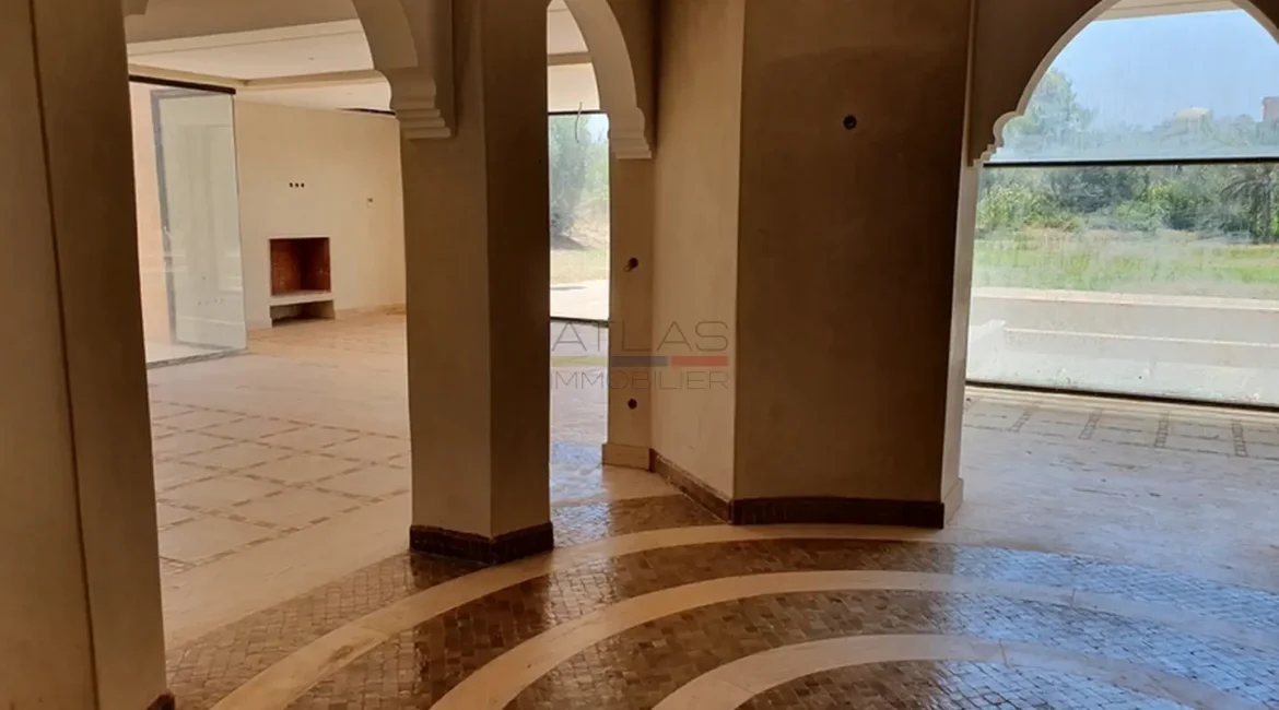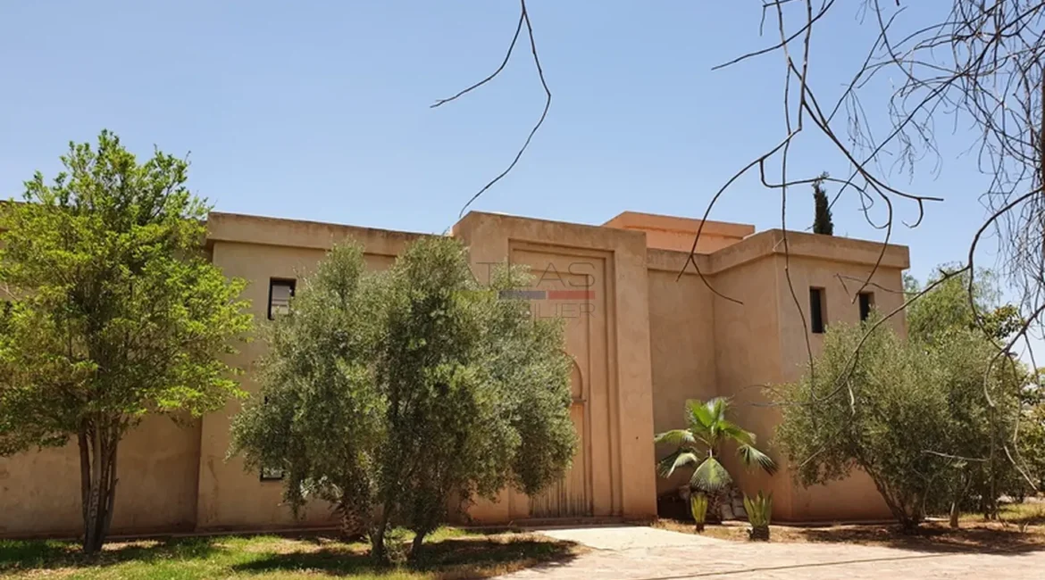 villa vendue Marrakech, route de Ouarzazate, domaine résidentiel, villa de luxe Marrakech, piscine privée, vue sur l’Atlas, villa familiale Marrakech, architecture traditionnelle, villa avec jardin Marrakech, immobilier haut de gamme Marrakech