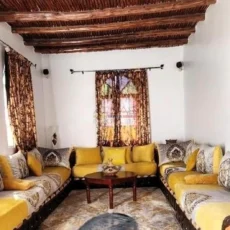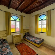 À louer en longue durée, cette villa meublée est implantée sur un terrain de 7500 m² en zone rurale à proximité d’Essaouira. Elle bénéficie d’un environnement vallonné et dégagé, avec une vue ouverte sur la campagne environnante, et une piscine équipée d’un robot de nettoyage.