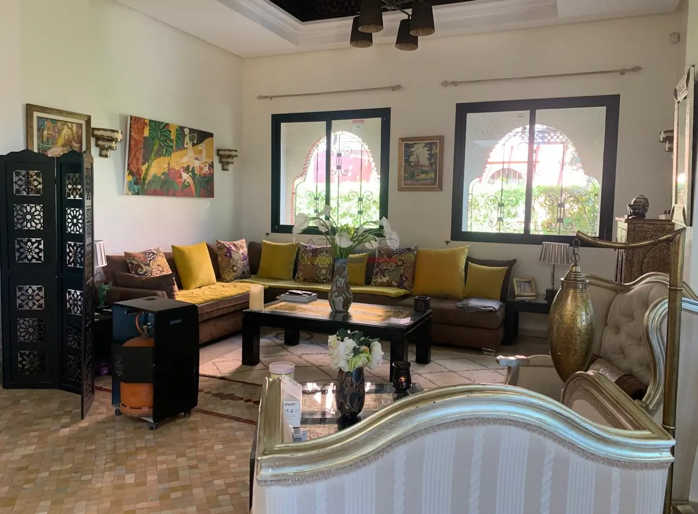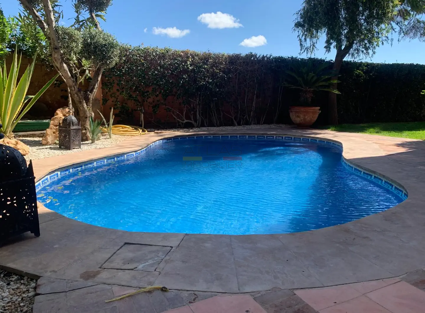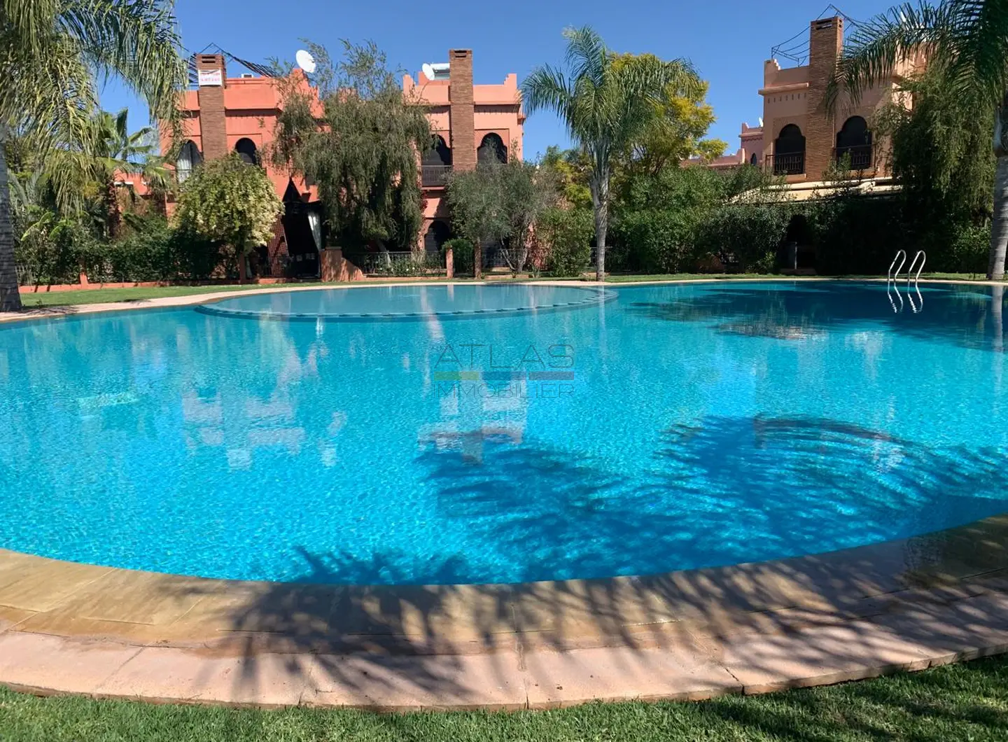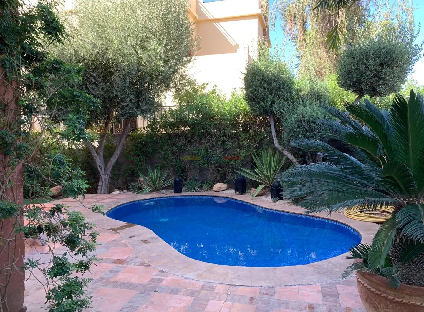 Implantée sur un terrain de 400 m², la propriété bénéficie d’un environnement calme et soigné au sein d’une résidence à taille humaine. Elle dispose d’une piscine privée, idéale pour profiter du climat ensoleillé de Marrakech, ainsi que d’un accès à une piscine commune avec club house, renforçant l’attrait et le standing du lieu.