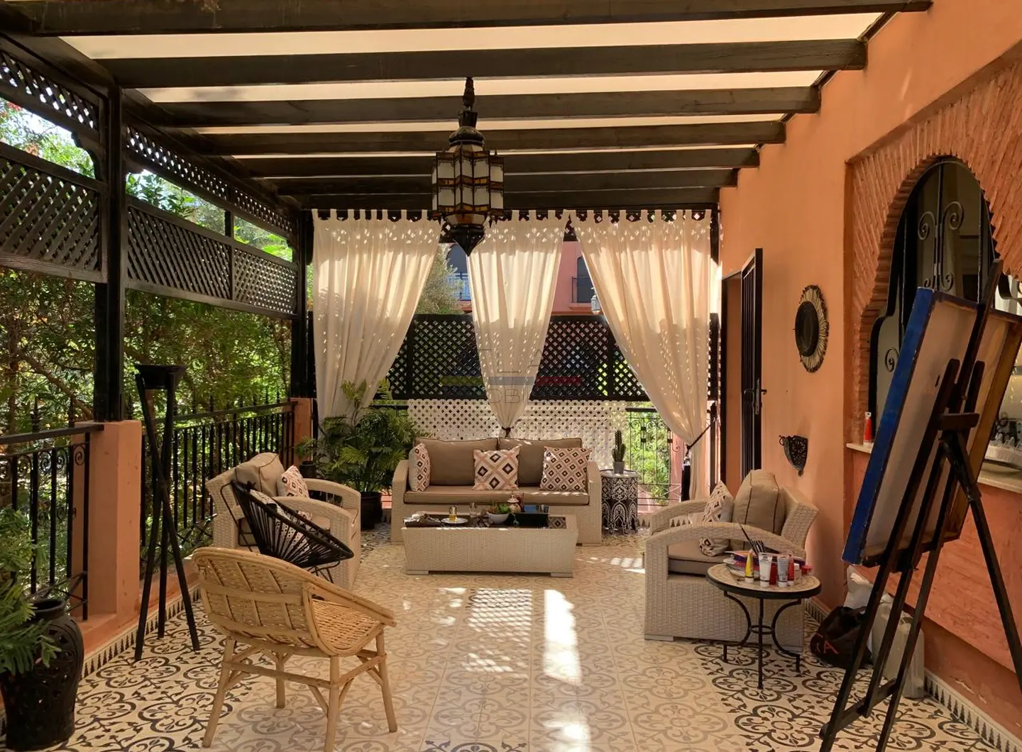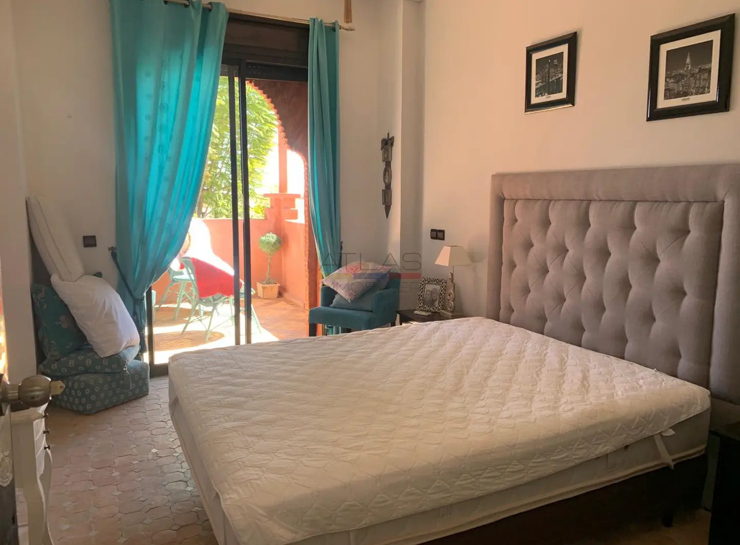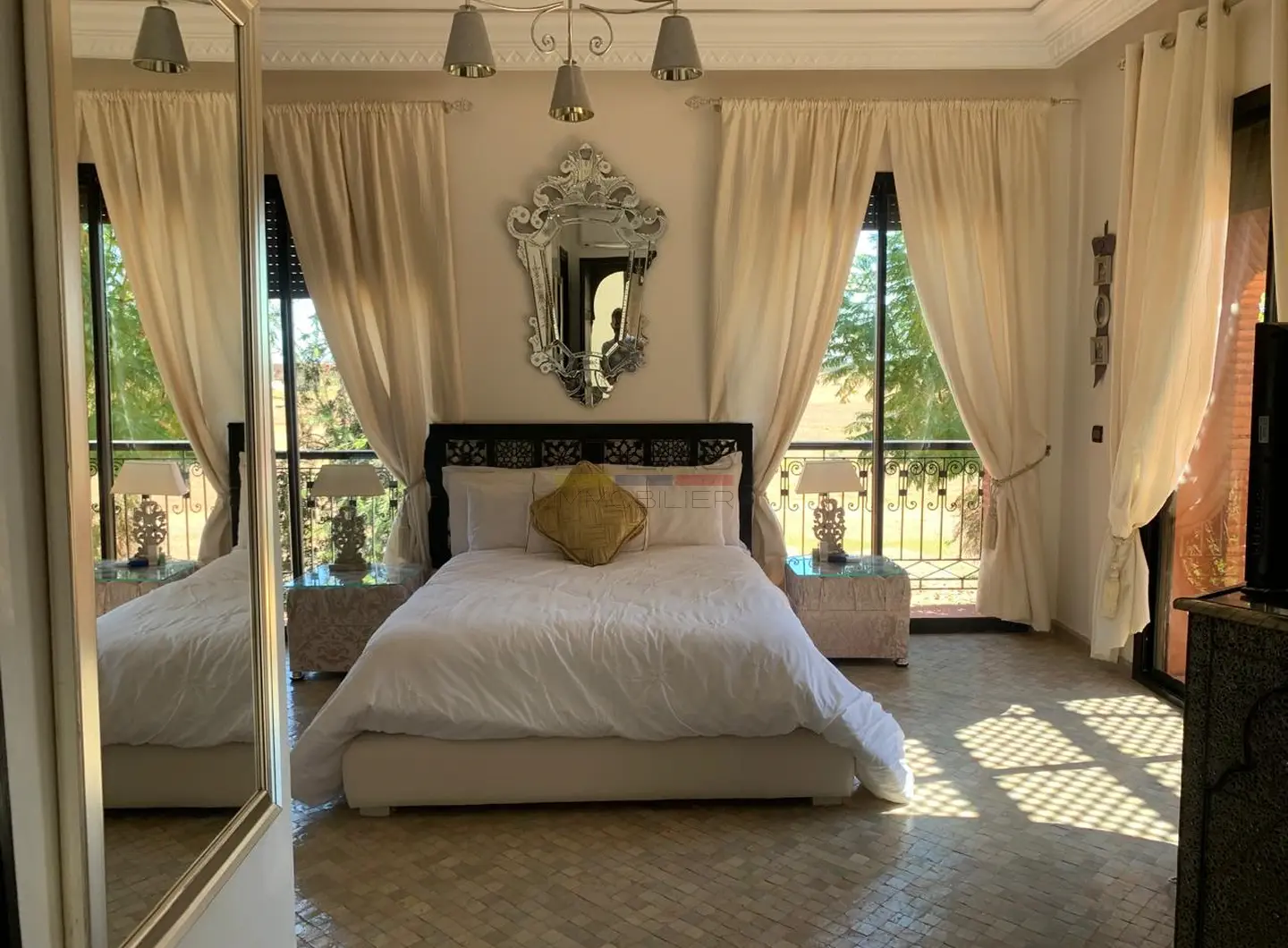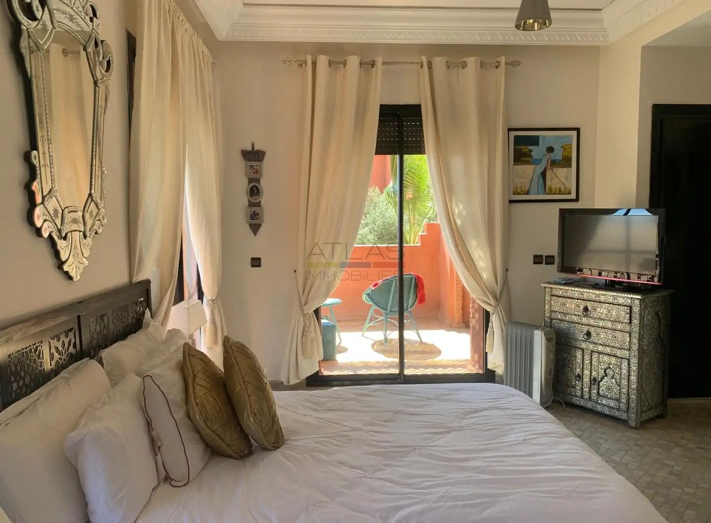 Implantée sur un terrain de 400 m², la propriété bénéficie d’un environnement calme et soigné au sein d’une résidence à taille humaine. Elle dispose d’une piscine privée, idéale pour profiter du climat ensoleillé de Marrakech, ainsi que d’un accès à une piscine commune avec club house, renforçant l’attrait et le standing du lieu.