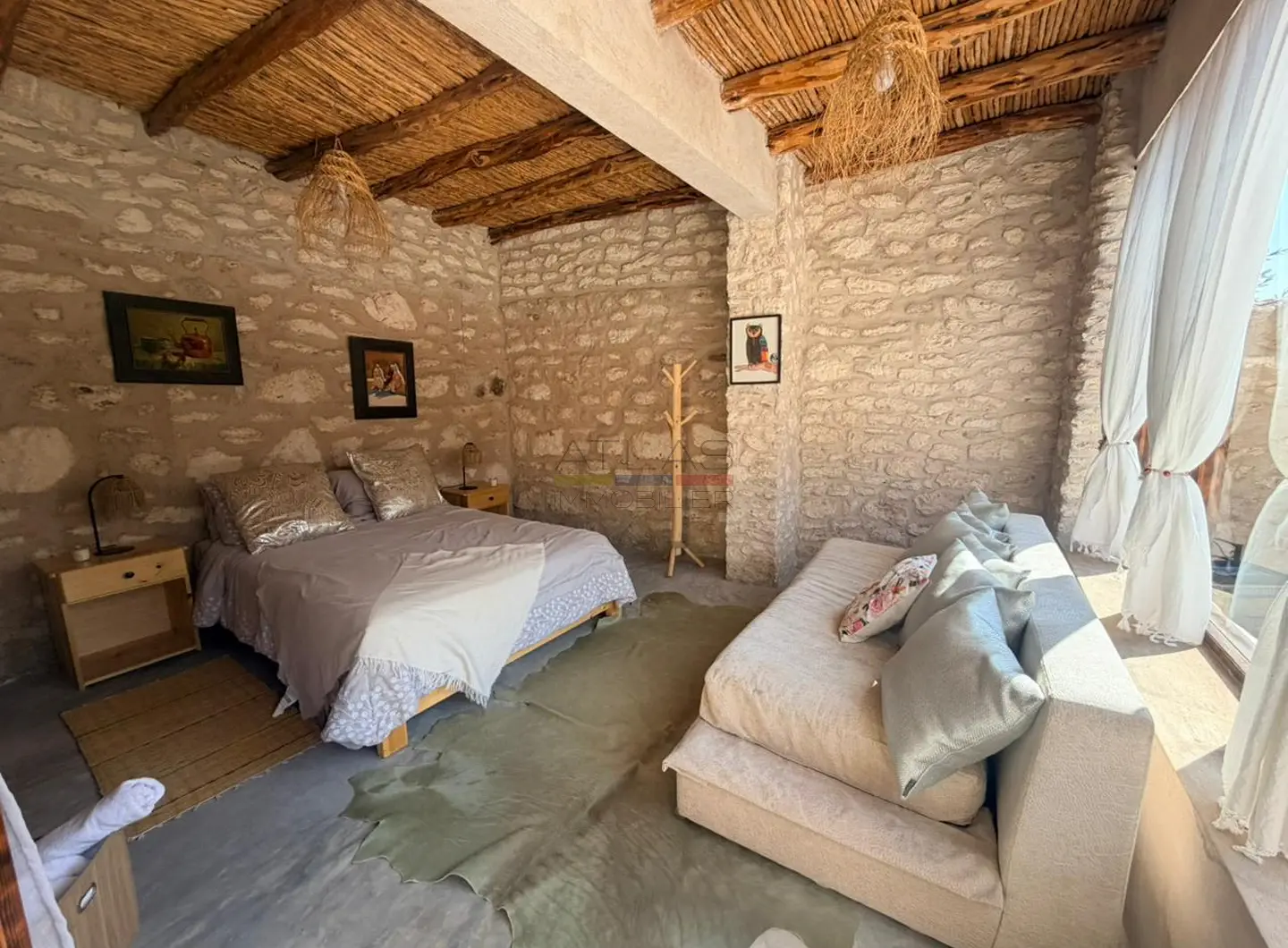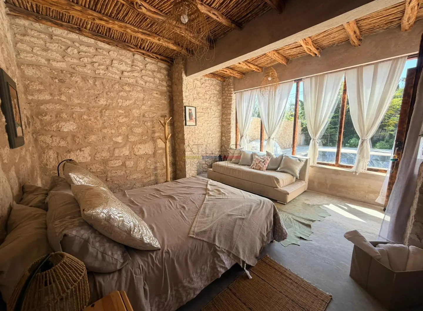 Disponible en location saisonnière à Essaouira, cette villa est proposée à 1 000 euros la semaine ou 1 500 euros le mois, offrant un excellent rapport qualité/prix. Un dépôt de garantie de 200 euros est demandé, avec une durée minimale de séjour de 4 jours.