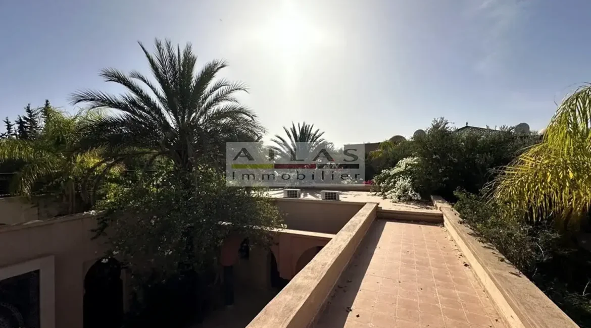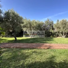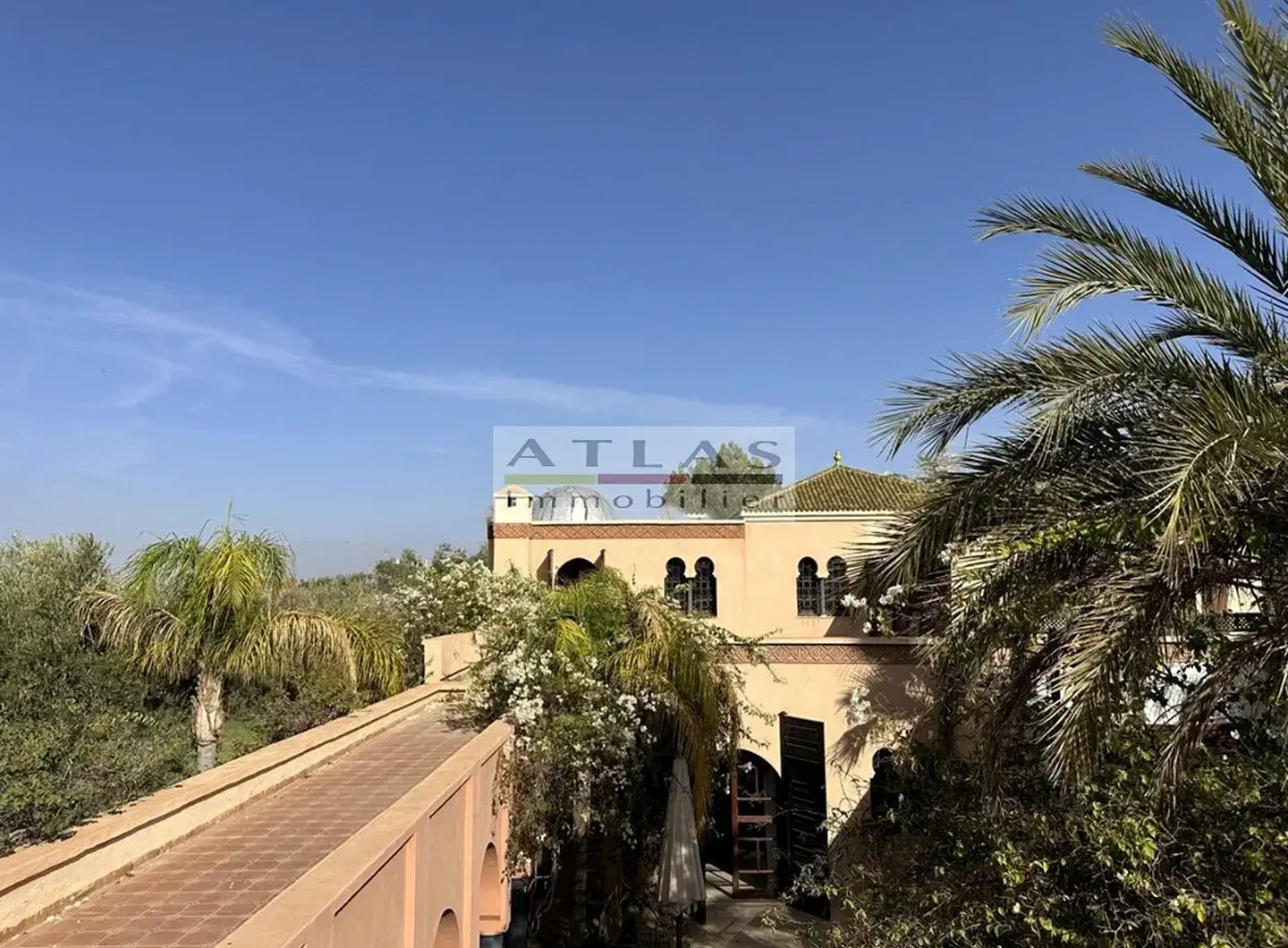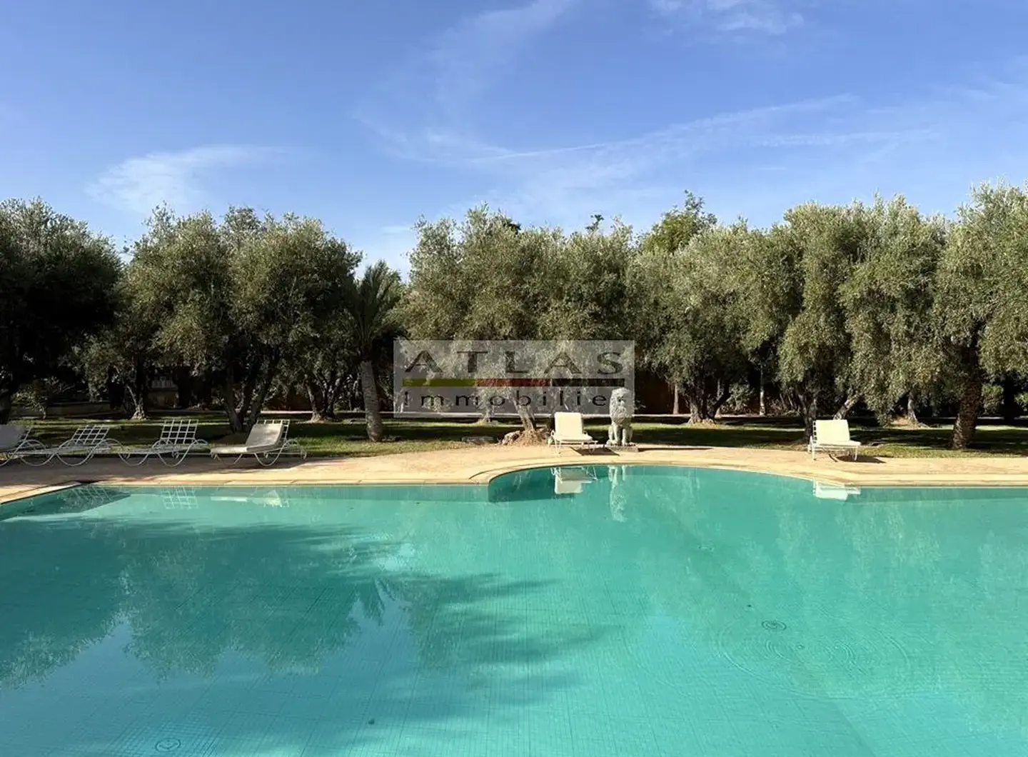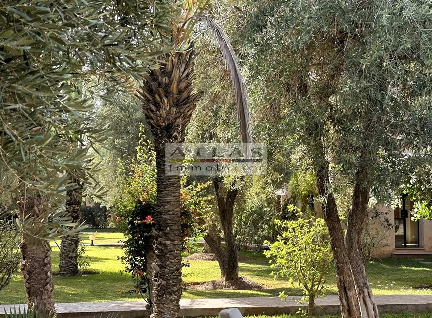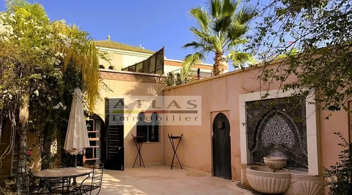 À seulement dix kilomètres du centre de Marrakech, cette magnifique villa est nichée au cœur d’un domaine privé, dans un environnement calme et parfaitement entretenu. Son architecture, inspirée de l’esprit des riads traditionnels, s’articule autour d’un vaste patio central de 65 m², offrant une atmosphère unique, lumineuse et conviviale. Entourée d’un parc paysager planté d’oliviers et agrémentée d’une grande piscine, elle propose un cadre de vie enchanteur, idéal pour savourer la douceur de la campagne tout en restant à proximité immédiate de la ville ocre.