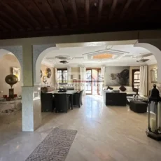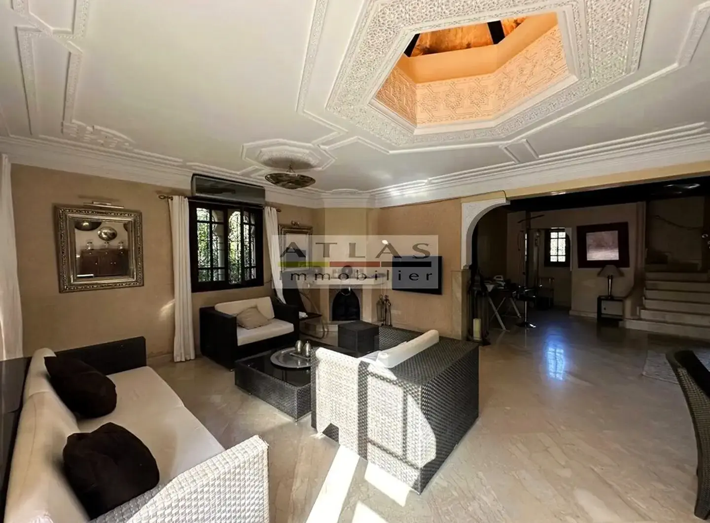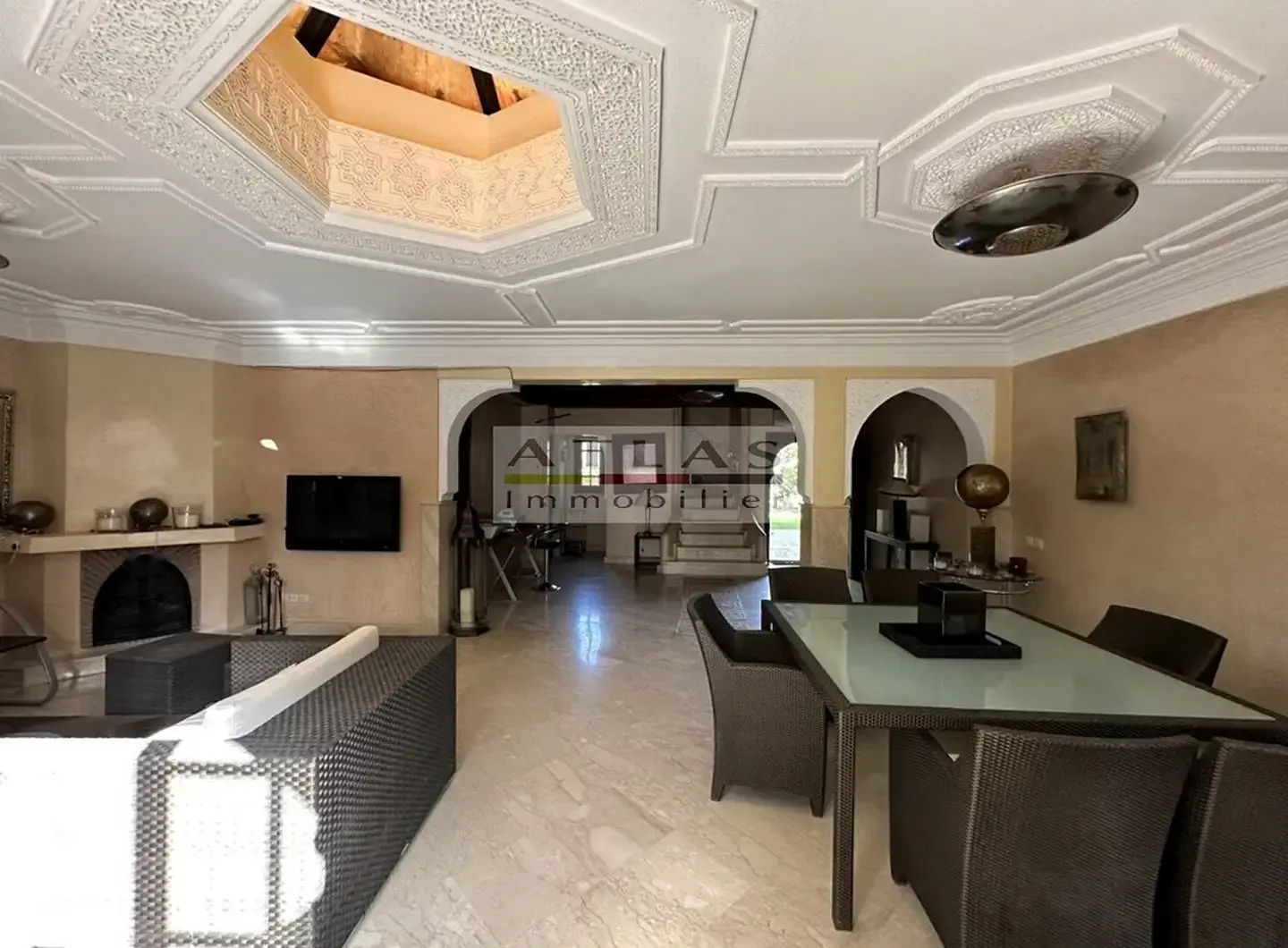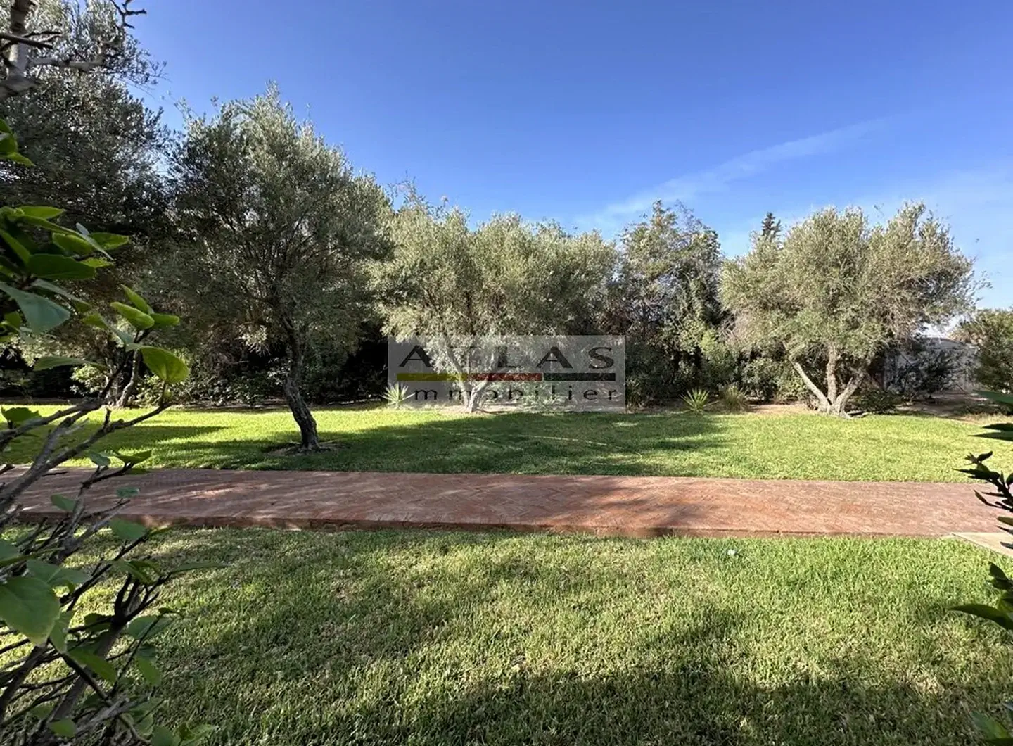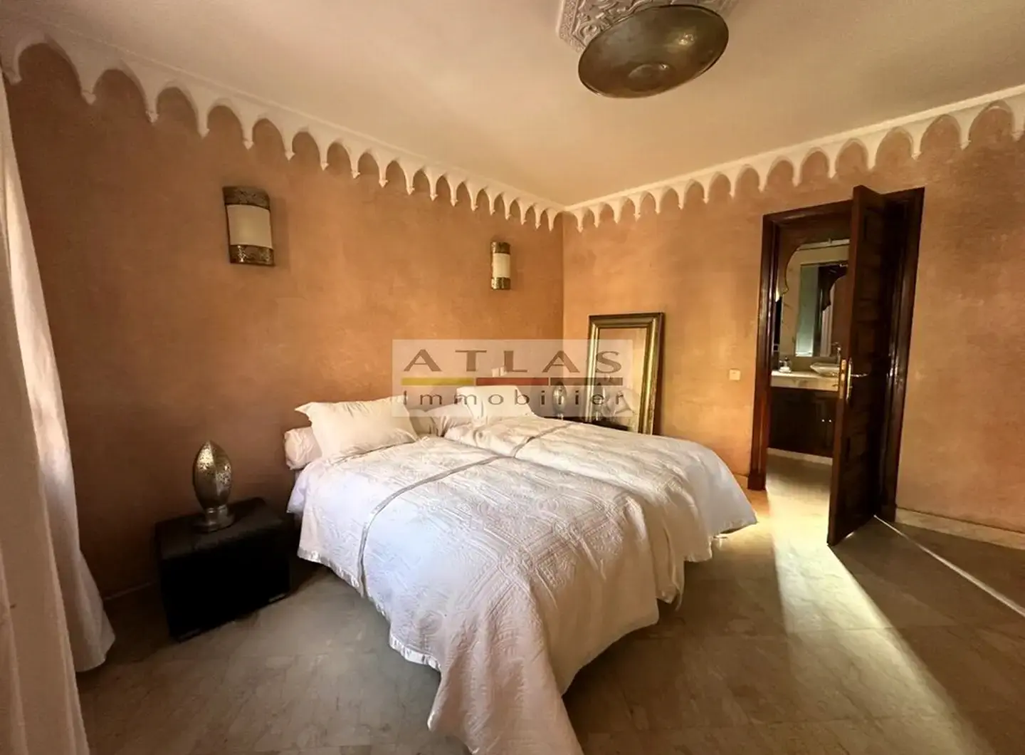 À seulement dix kilomètres du centre de Marrakech, cette magnifique villa est nichée au cœur d’un domaine privé, dans un environnement calme et parfaitement entretenu. Son architecture, inspirée de l’esprit des riads traditionnels, s’articule autour d’un vaste patio central de 65 m², offrant une atmosphère unique, lumineuse et conviviale. Entourée d’un parc paysager planté d’oliviers et agrémentée d’une grande piscine, elle propose un cadre de vie enchanteur, idéal pour savourer la douceur de la campagne tout en restant à proximité immédiate de la ville ocre.