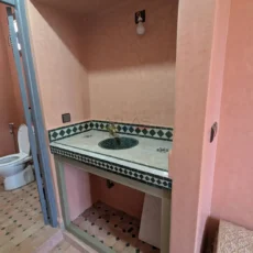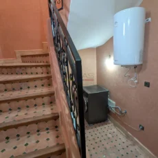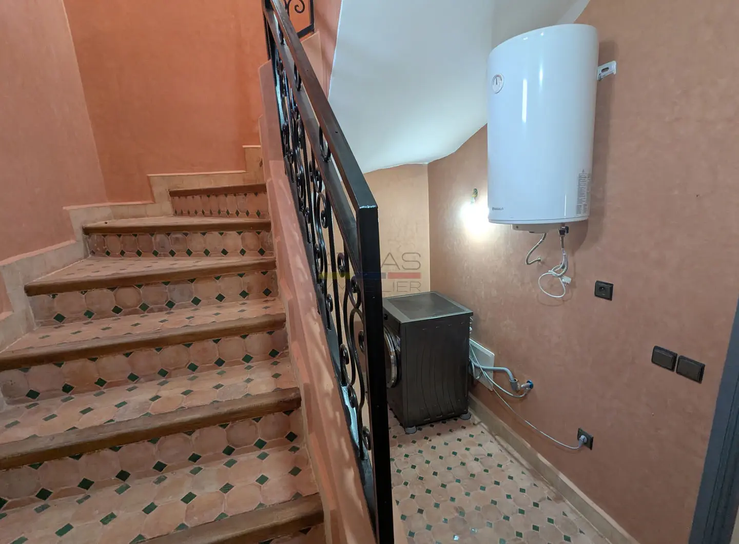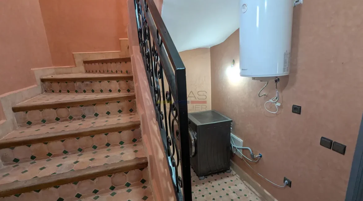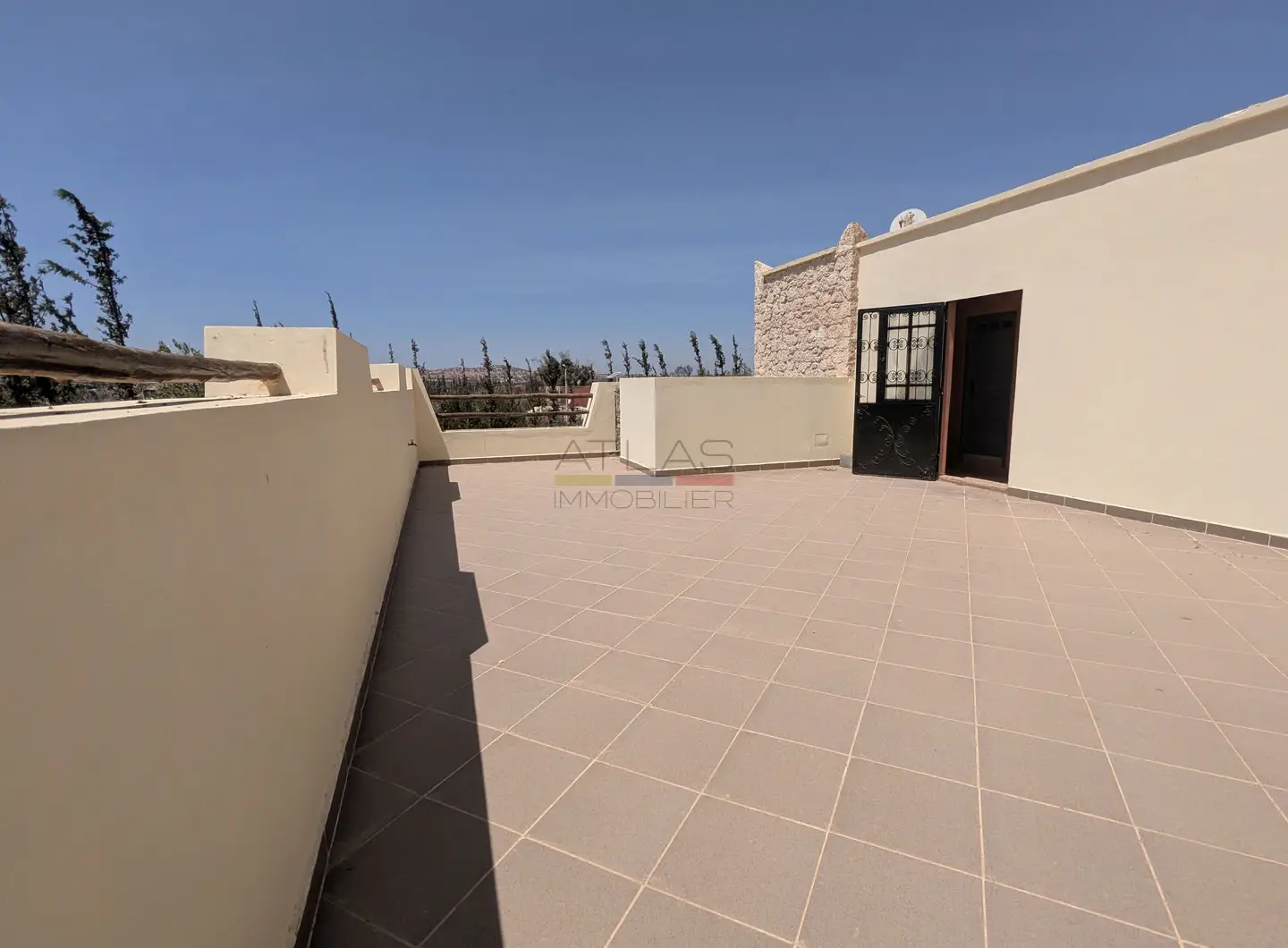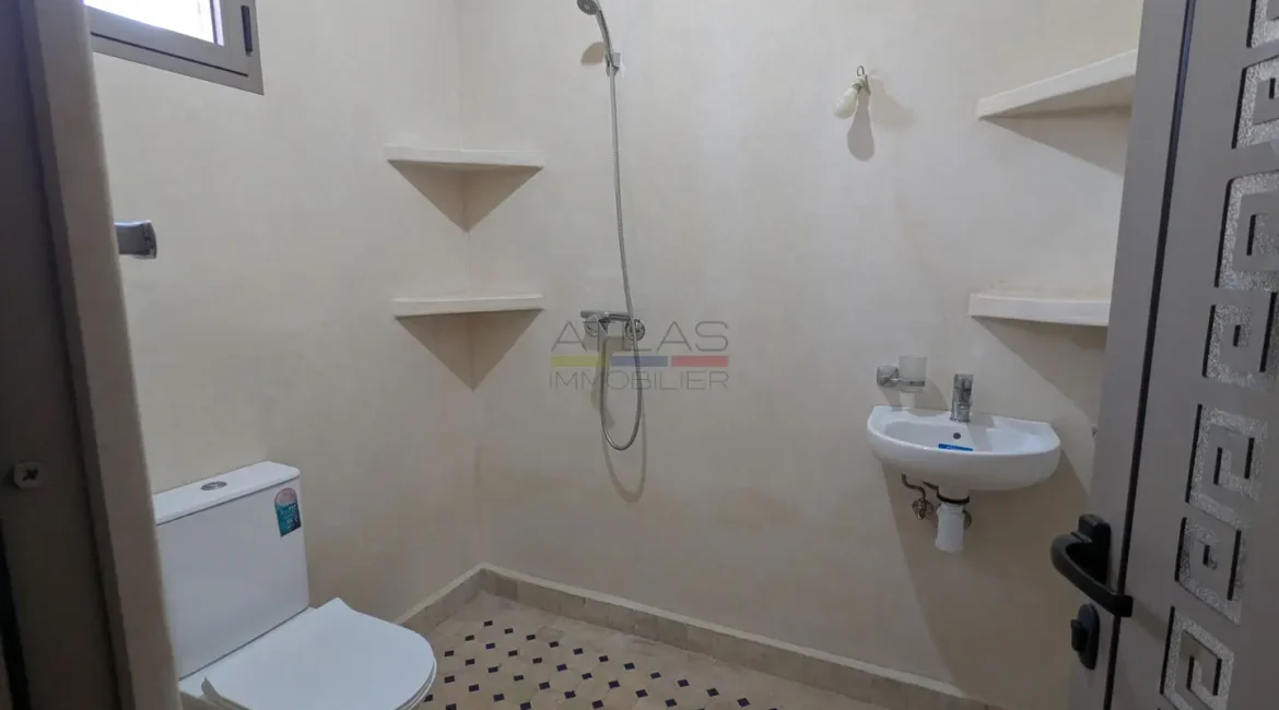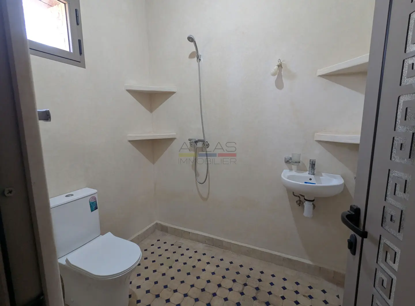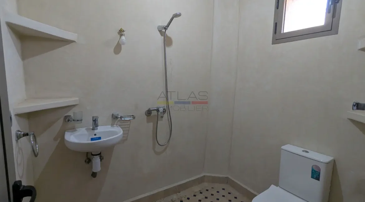 Dès l’entrée, un grand hall distribue un vaste salon convivial, une cuisine fonctionnelle et parfaitement aménagée, ainsi qu’une grande terrasse ouverte sur un superbe jardin arboré d’oliviers, de figuiers, de citronniers et de grenadiers. Cet extérieur verdoyant offre une atmosphère sereine et authentique, idéale pour profiter du climat doux de la région d’Essaouira.