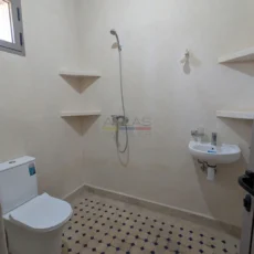 La villa comprend trois chambres spacieuses, chacune pensée pour allier intimité et confort. Trois salles de bains modernes et une toilette indépendante complètent l’ensemble. L’agencement harmonieux met en valeur les volumes et la luminosité naturelle.