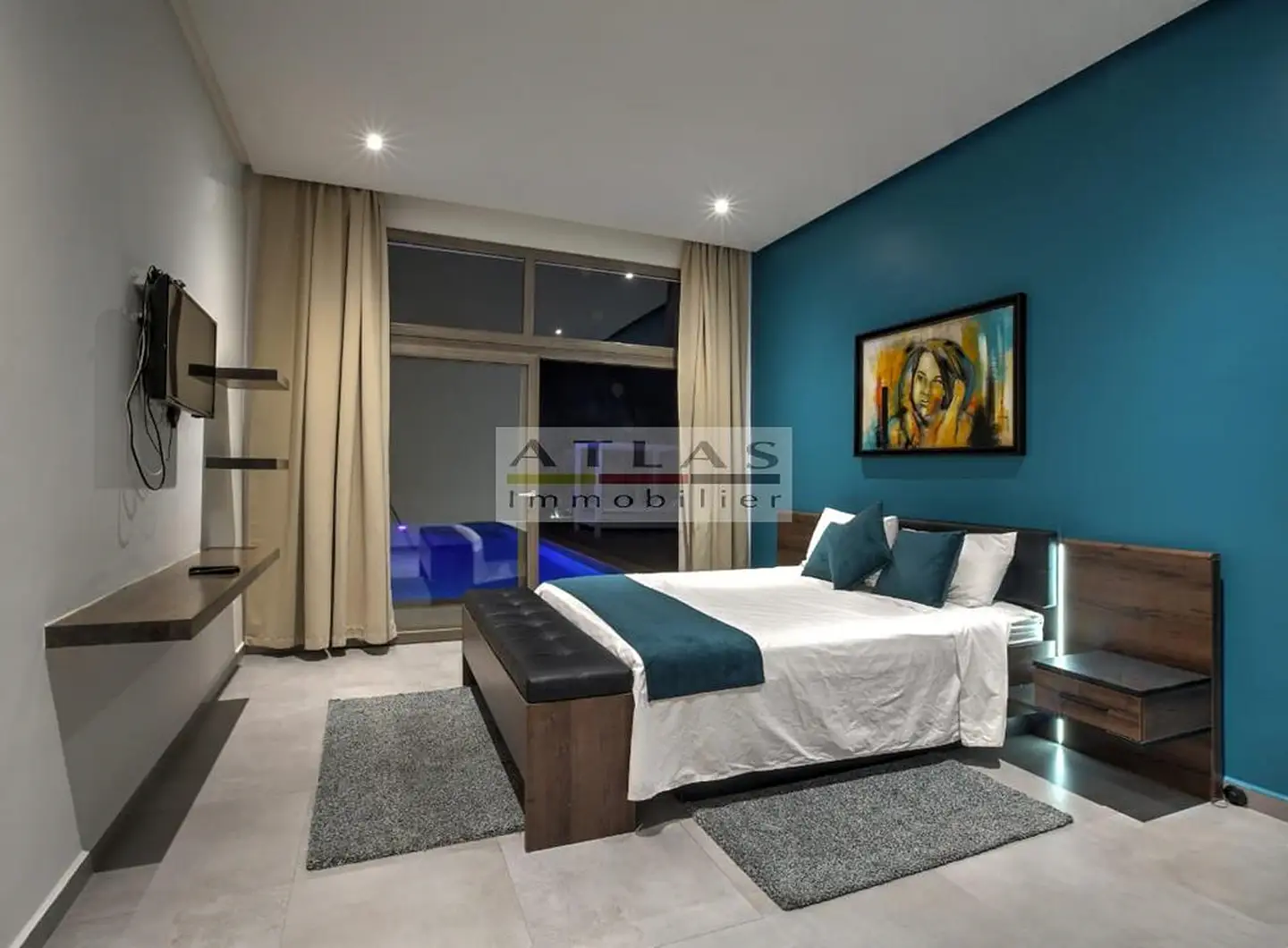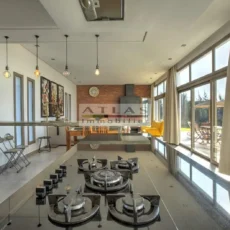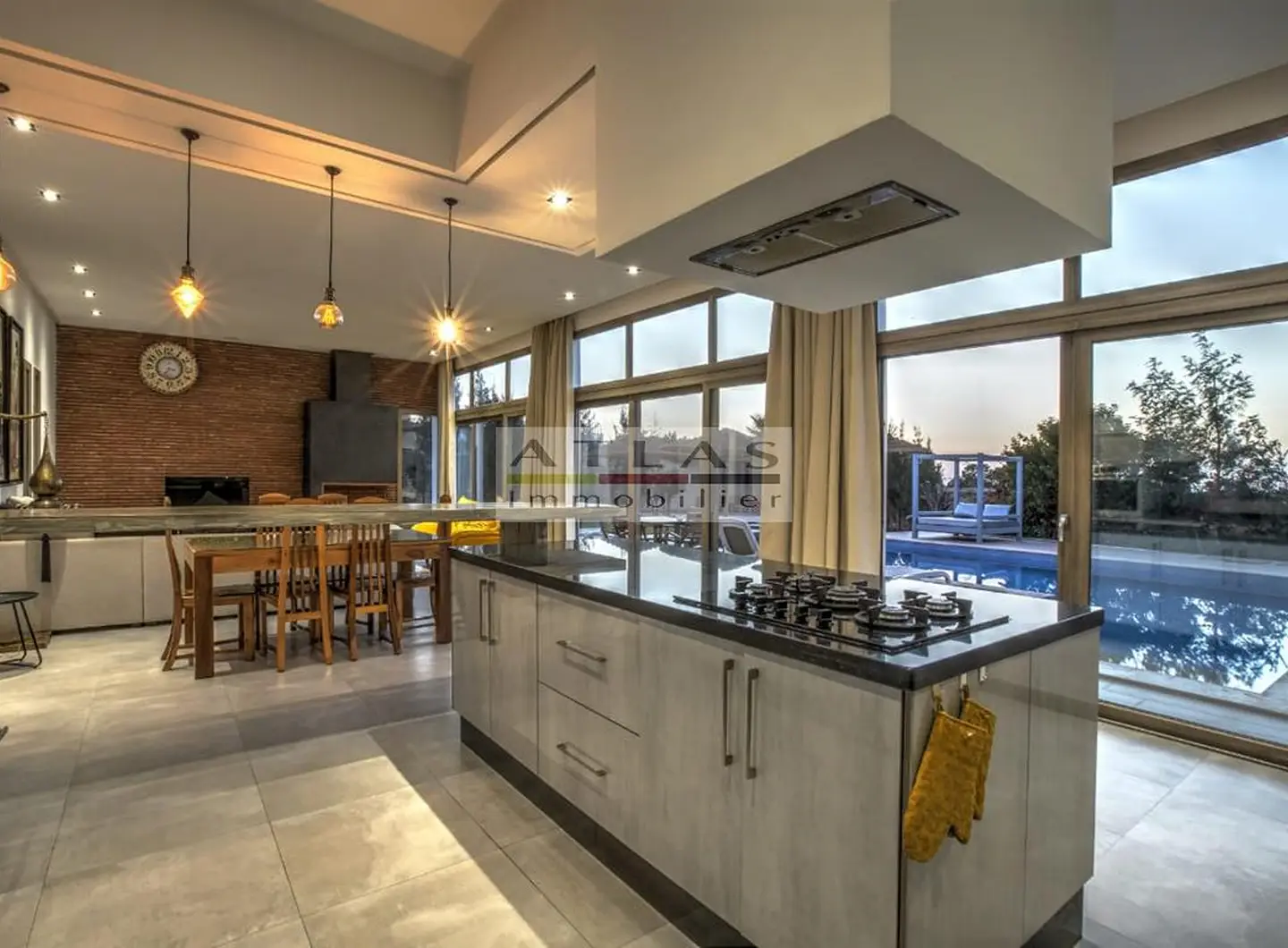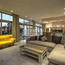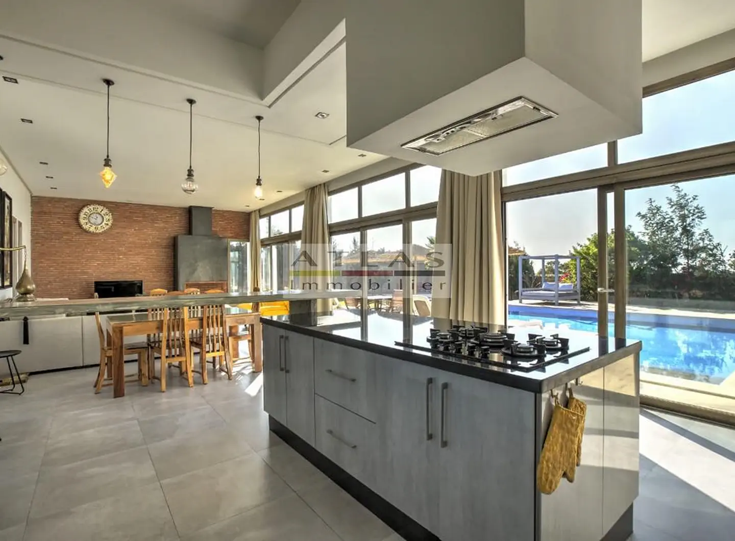 La villa dispose de quatre chambres spacieuses, chacune avec sa salle de bain privative, dont une suite parentale pensée pour offrir intimité et confort. Sa cuisine américaine, entièrement équipée, s’ouvre sur un vaste salon inondé de lumière grâce à ses larges baies vitrées tournées vers l’extérieur.