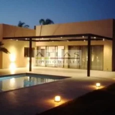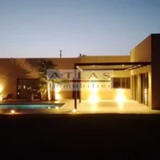 Située à seulement quinze minutes du centre-ville de Marrakech, sur la route d’Amizmiz, cette magnifique villa épurée offre un cadre de vie idyllique avec une vue dégagée sur les chaînes majestueuses de l’Atlas et un environnement préservé, sans aucun vis-à-vis. Conçue pour allier confort, design et fonctionnalité, elle séduit par ses volumes généreux et ses finitions soignées.