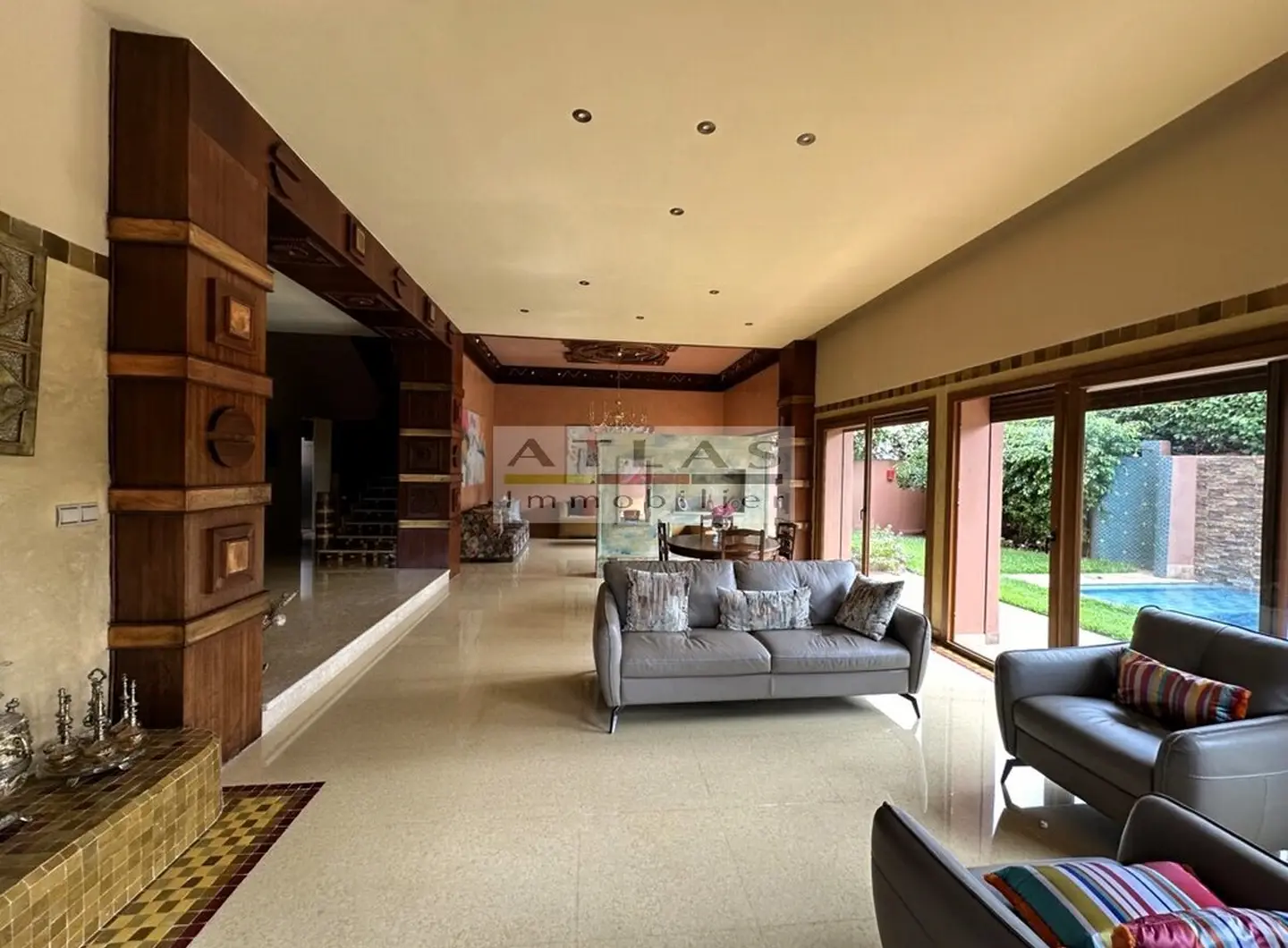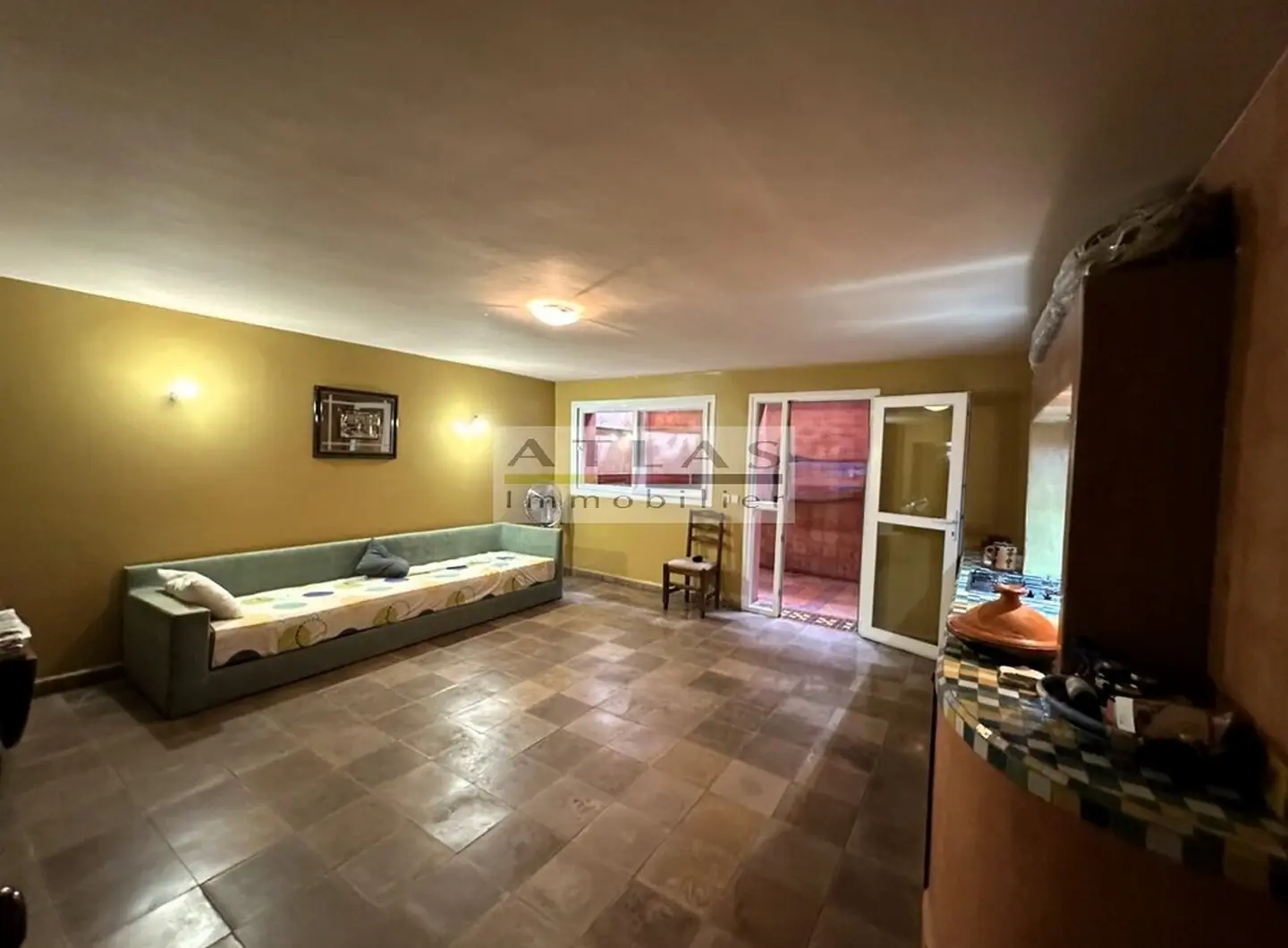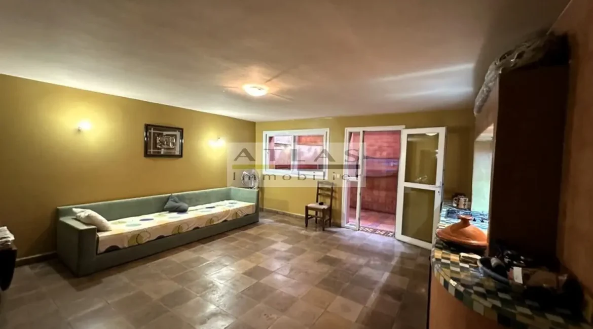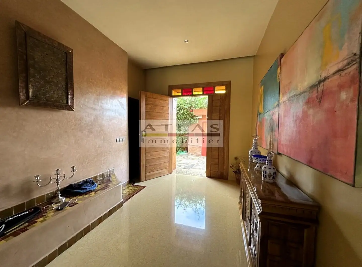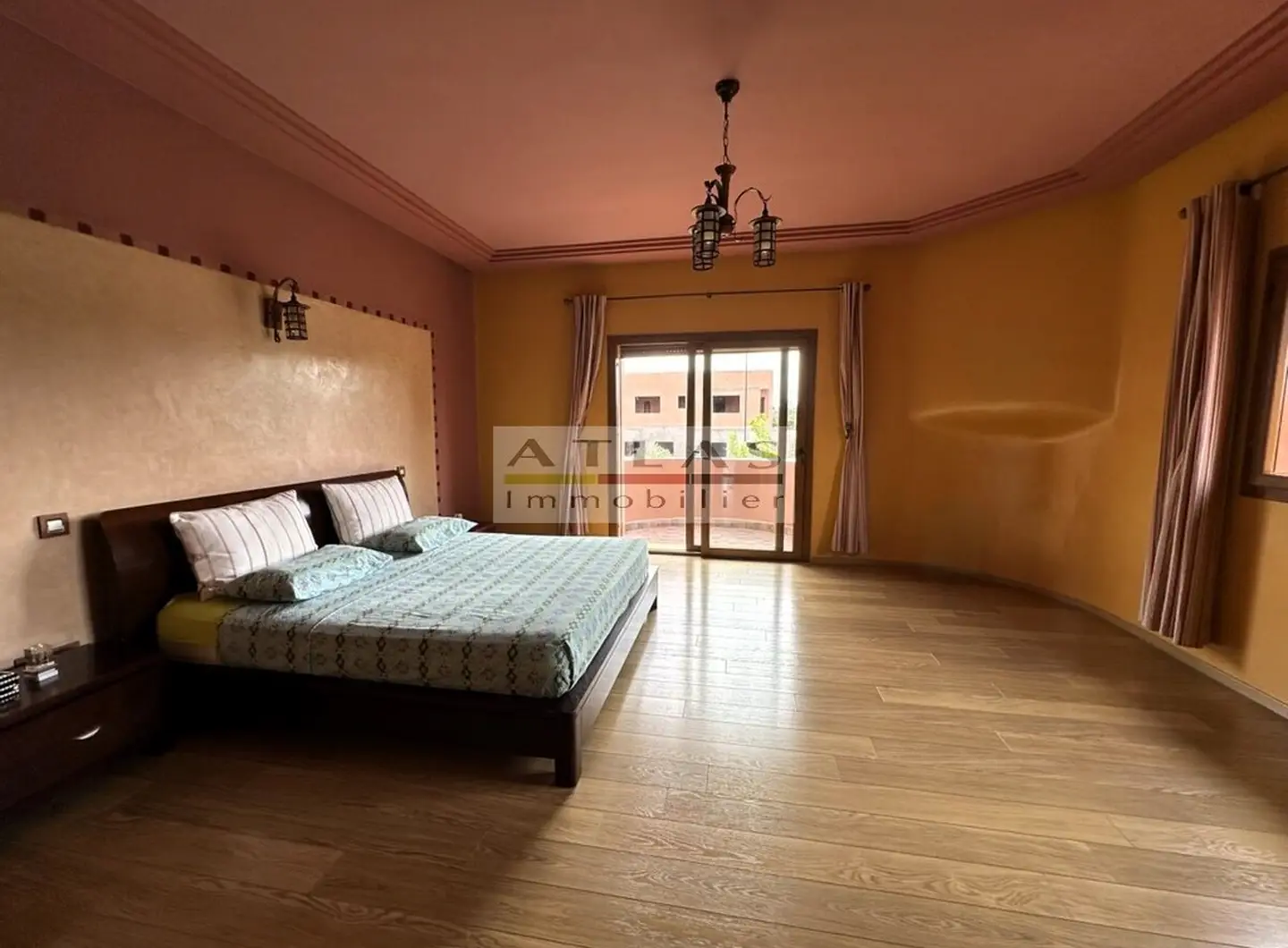 Située dans un quartier recherché à la sortie de Marrakech, cette magnifique villa contemporaine offre un cadre de vie exceptionnel, alliant confort, modernité et élégance. Le rez-de-chaussée vous accueille avec une vaste pièce à vivre en trois parties, baignée de lumière naturelle, et offrant une vue imprenable sur le jardin paysagé ainsi que sur la piscine privée. La grande cuisine entièrement aménagée et équipée vous permettra de préparer vos repas en toute convivialité, tandis que des toilettes pour invités ajoutent au confort. À l’étage, deux suites spacieuses, chacune avec sa salle de bain privative, ainsi que deux chambres supplémentaires partageant une salle de bain, offrent un espace de vie parfait pour toute la famille. Le sous-sol, entièrement aménagé avec une cour anglaise, dispose d’un espace de vie supplémentaire comprenant une terrasse, une cuisine, une chambre d’appoint, une buanderie et un garage. À l’extérieur, vous pourrez profiter d’une superbe piscine privée, accompagnée d’une douche extérieure et d’un solarium, l’endroit idéal pour se détendre sous le soleil de Marrakech. Ne manquez pas cette opportunité unique de vivre dans un cadre paisible et élégant, à seulement quelques minutes du centre de Marrakech.