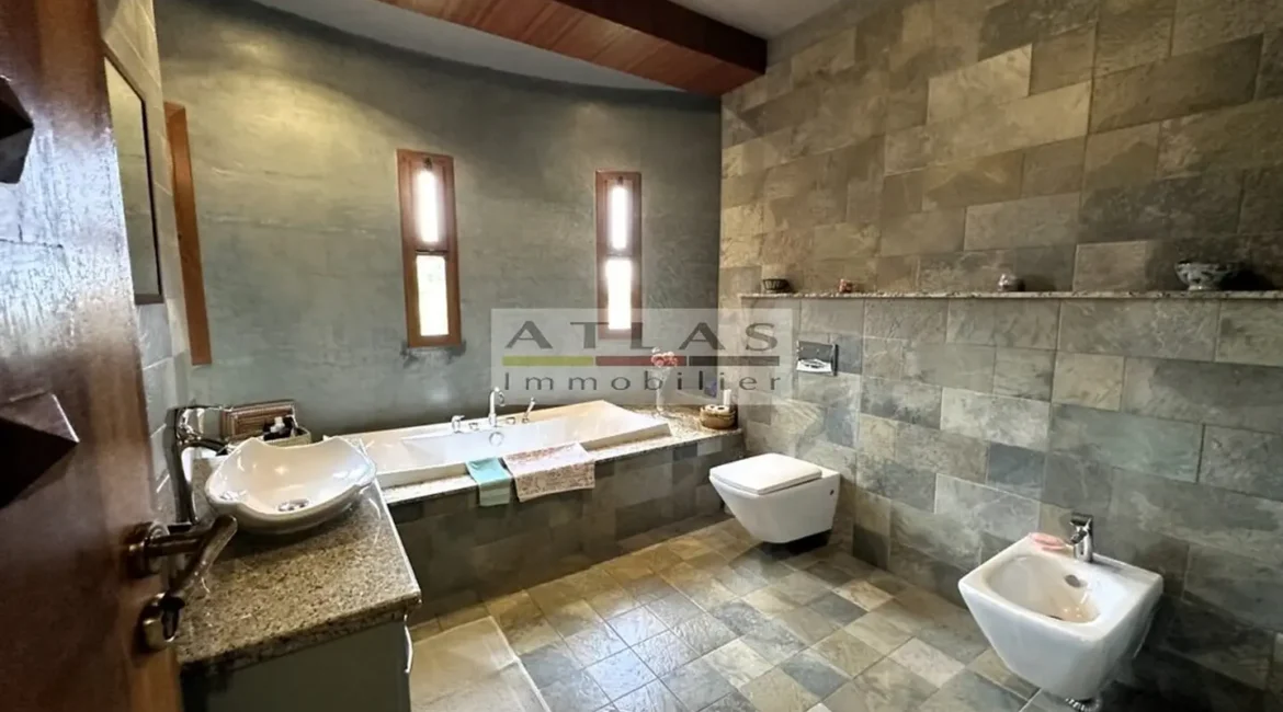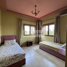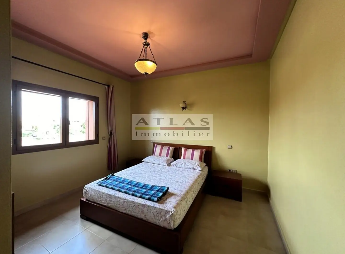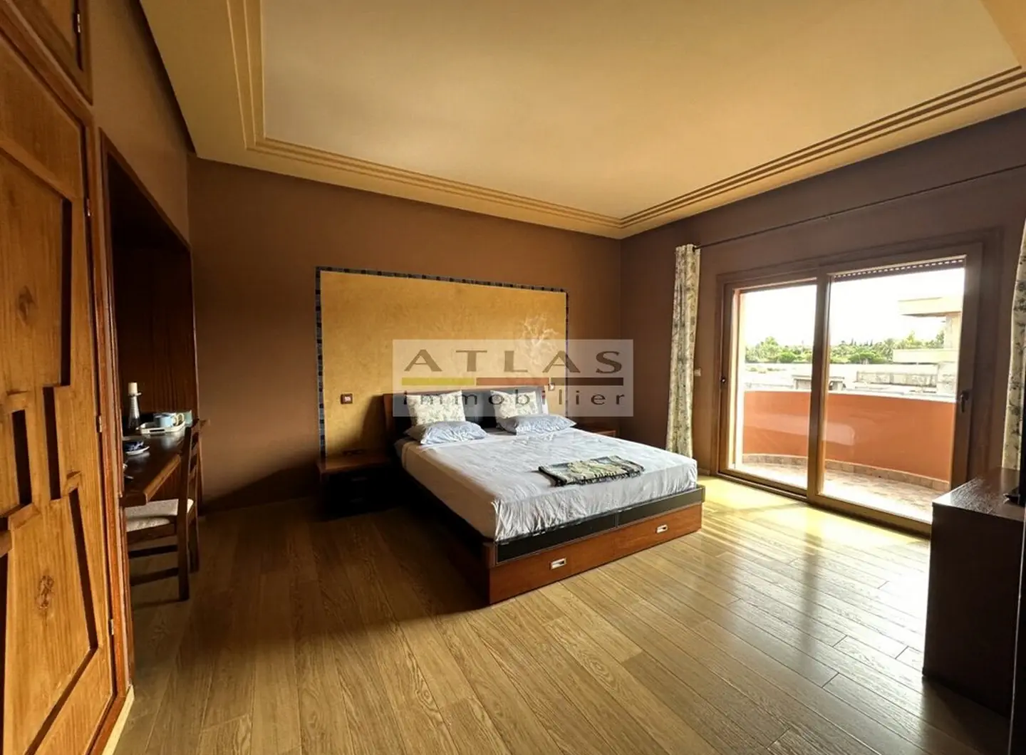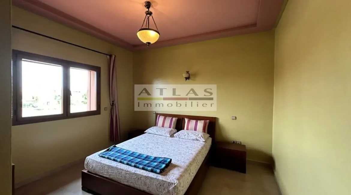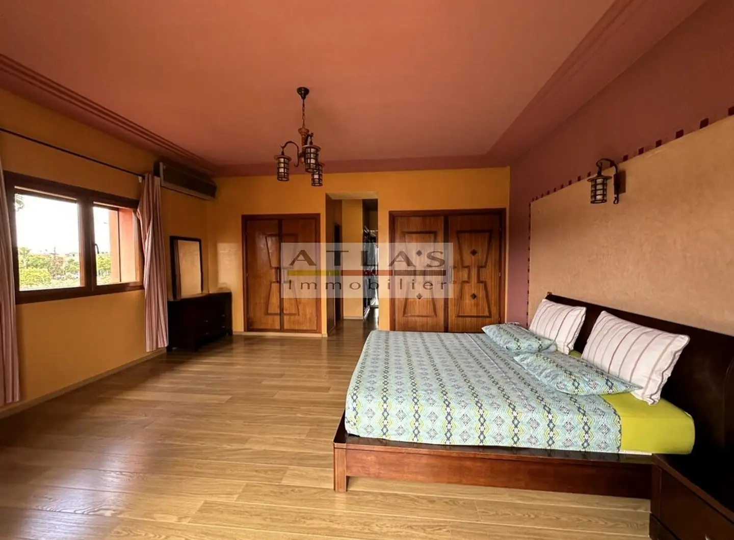 Située dans un quartier recherché à la sortie de Marrakech, cette magnifique villa contemporaine offre un cadre de vie exceptionnel, alliant confort, modernité et élégance. Le rez-de-chaussée vous accueille avec une vaste pièce à vivre en trois parties, baignée de lumière naturelle, et offrant une vue imprenable sur le jardin paysagé ainsi que sur la piscine privée. La grande cuisine entièrement aménagée et équipée vous permettra de préparer vos repas en toute convivialité, tandis que des toilettes pour invités ajoutent au confort. À l’étage, deux suites spacieuses, chacune avec sa salle de bain privative, ainsi que deux chambres supplémentaires partageant une salle de bain, offrent un espace de vie parfait pour toute la famille. Le sous-sol, entièrement aménagé avec une cour anglaise, dispose d’un espace de vie supplémentaire comprenant une terrasse, une cuisine, une chambre d’appoint, une buanderie et un garage. À l’extérieur, vous pourrez profiter d’une superbe piscine privée, accompagnée d’une douche extérieure et d’un solarium, l’endroit idéal pour se détendre sous le soleil de Marrakech. Ne manquez pas cette opportunité unique de vivre dans un cadre paisible et élégant, à seulement quelques minutes du centre de Marrakech.