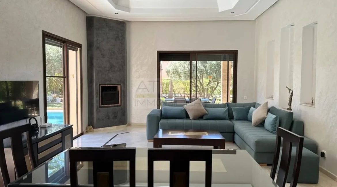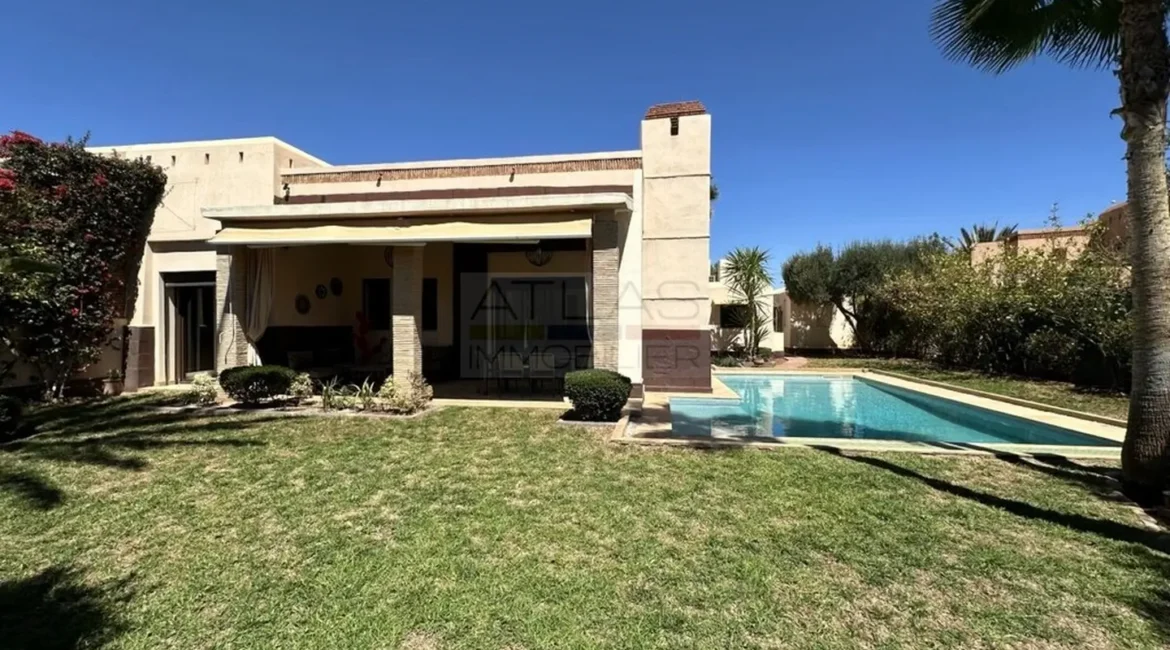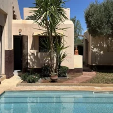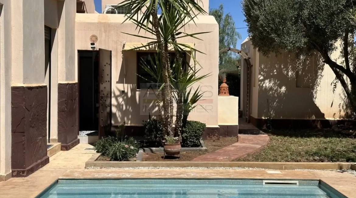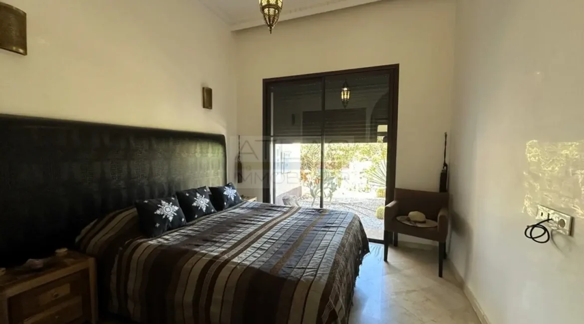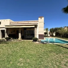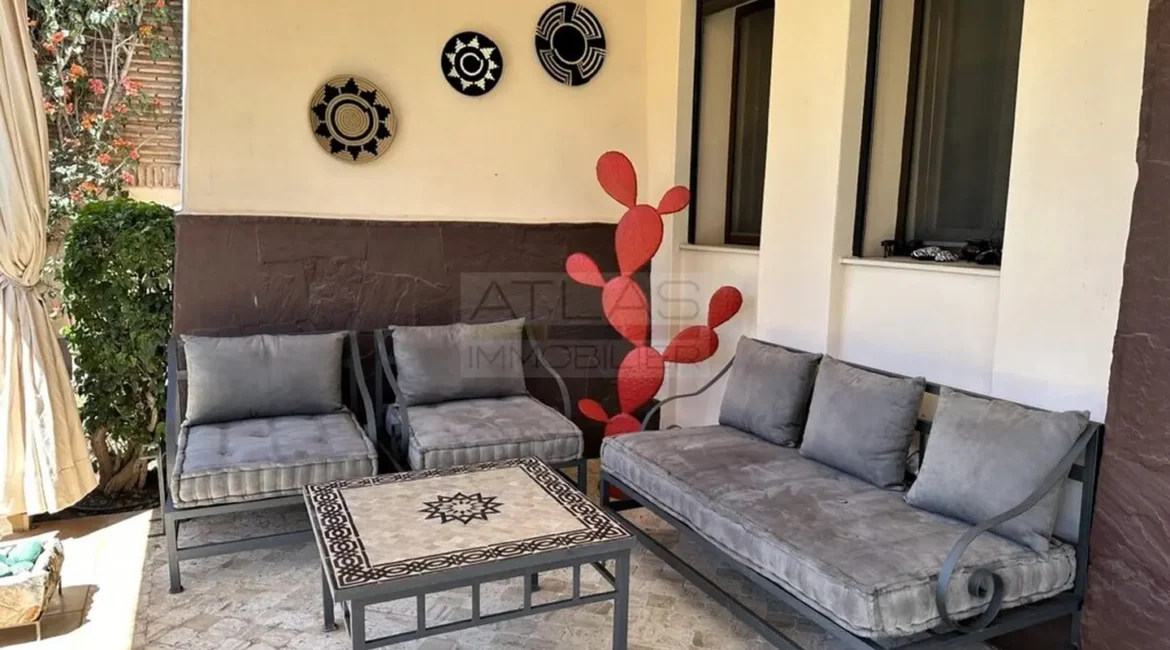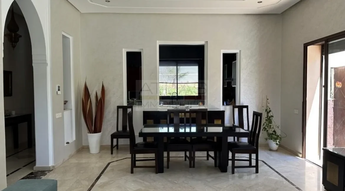 À seulement 20 minutes du centre de Marrakech, cette superbe villa située dans une résidence sécurisée offre un cadre de vie idéal alliant calme, confort et sérénité. En excellent état, elle se distingue par ses beaux volumes, sa luminosité et sa fonctionnalité. Cette propriété dispose de trois chambres spacieuses, avec la possibilité d’aménager une quatrième chambre, ainsi que de trois salles de bains modernes. Un vaste séjour lumineux s’ouvre sur un jardin soigneusement entretenu, où une piscine privée crée un espace parfait pour la détente et la convivialité en toute intimité. La villa comprend également une cuisine extérieure, idéale pour les repas en plein air, et un cellier pratique pour le rangement. Côté confort, elle est équipée d’une climatisation centralisée neuve, d’un chauffe-eau solaire pour une meilleure performance énergétique, ainsi que de la fibre optique pour une connexion internet rapide et stable. Entièrement meublée, cette villa est prête à vivre, sans aucun travaux à prévoir. Elle représente une opportunité rare, tant pour une résidence principale que secondaire, ou pour un investissement locatif.