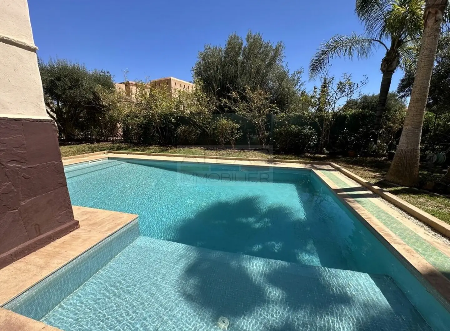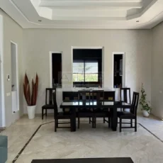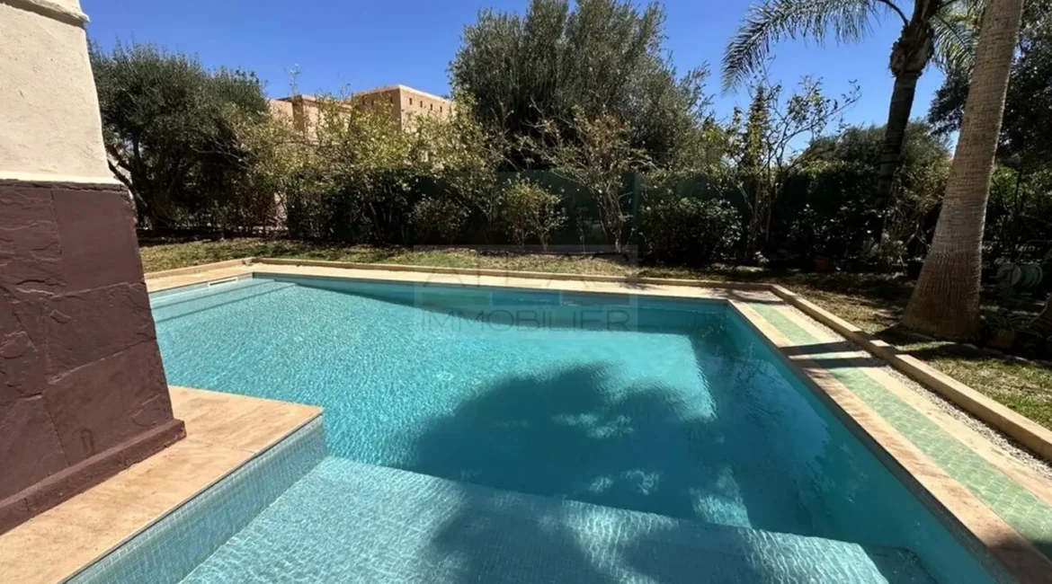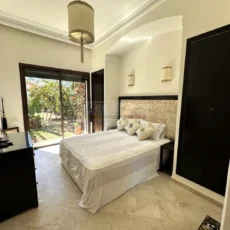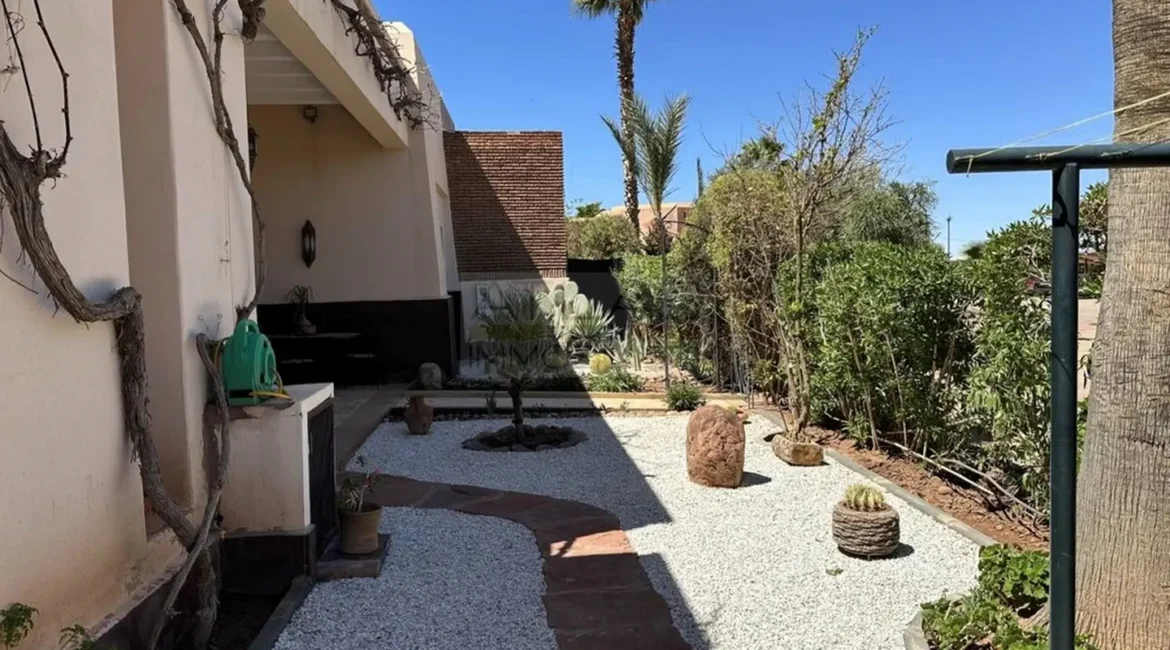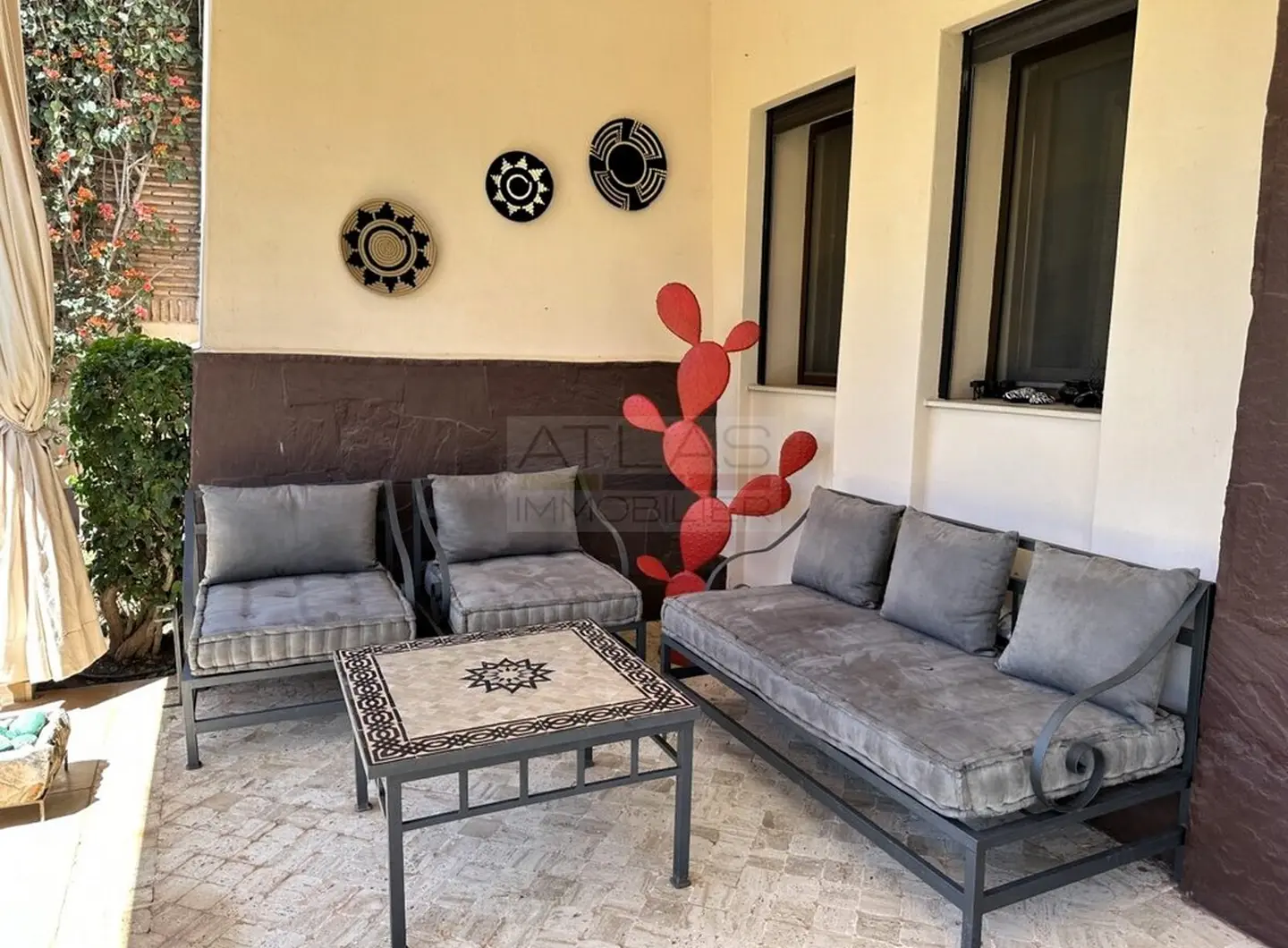 À seulement 20 minutes du centre de Marrakech, cette superbe villa située dans une résidence sécurisée offre un cadre de vie idéal alliant calme, confort et sérénité. En excellent état, elle se distingue par ses beaux volumes, sa luminosité et sa fonctionnalité. Cette propriété dispose de trois chambres spacieuses, avec la possibilité d’aménager une quatrième chambre, ainsi que de trois salles de bains modernes. Un vaste séjour lumineux s’ouvre sur un jardin soigneusement entretenu, où une piscine privée crée un espace parfait pour la détente et la convivialité en toute intimité. La villa comprend également une cuisine extérieure, idéale pour les repas en plein air, et un cellier pratique pour le rangement. Côté confort, elle est équipée d’une climatisation centralisée neuve, d’un chauffe-eau solaire pour une meilleure performance énergétique, ainsi que de la fibre optique pour une connexion internet rapide et stable. Entièrement meublée, cette villa est prête à vivre, sans aucun travaux à prévoir. Elle représente une opportunité rare, tant pour une résidence principale que secondaire, ou pour un investissement locatif.