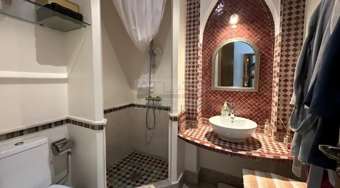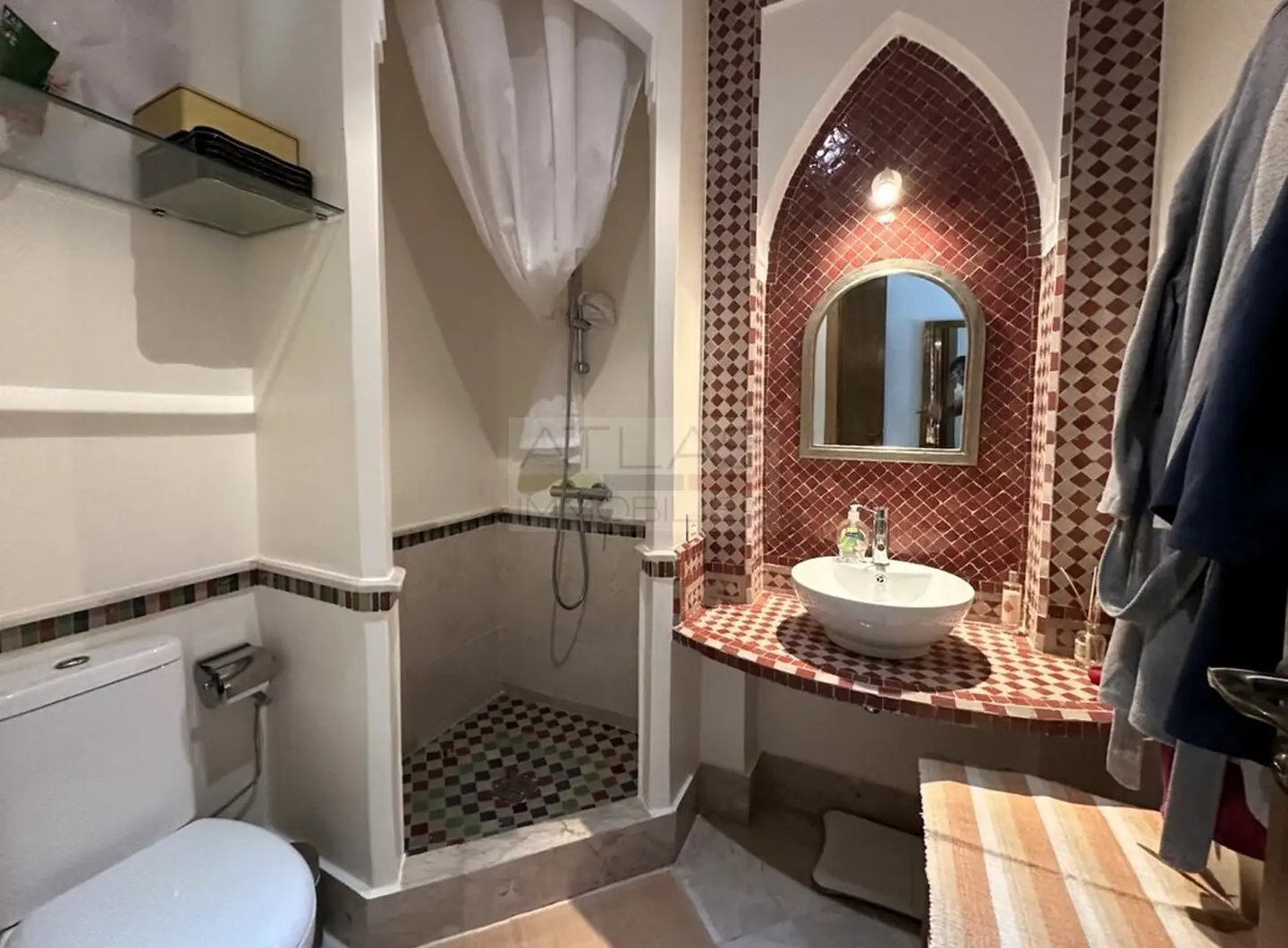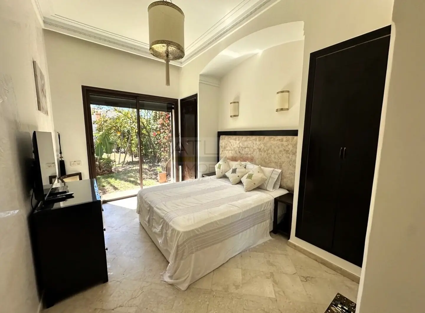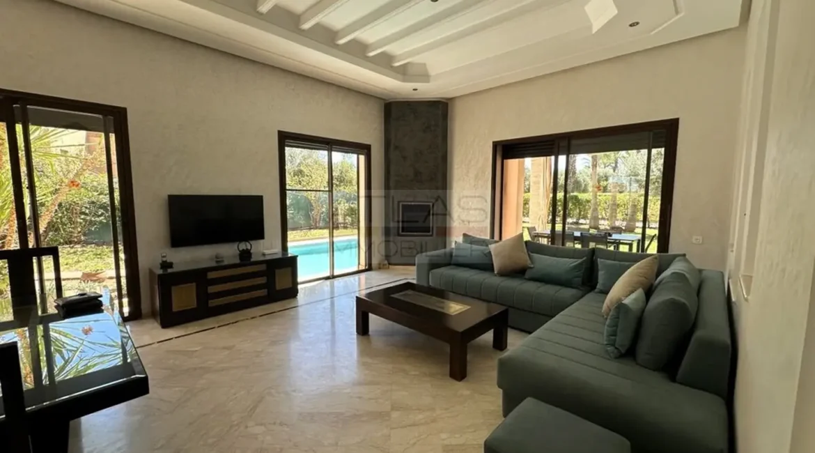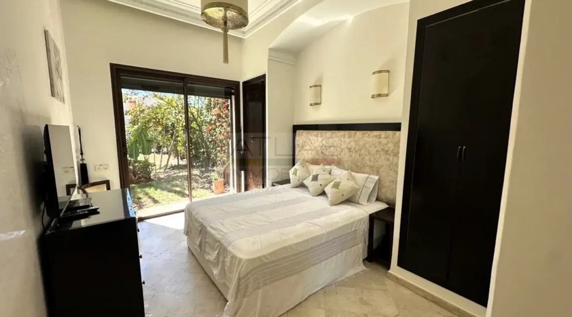 À seulement 20 minutes du centre de Marrakech, cette superbe villa située dans une résidence sécurisée offre un cadre de vie idéal alliant calme, confort et sérénité. En excellent état, elle se distingue par ses beaux volumes, sa luminosité et sa fonctionnalité. Cette propriété dispose de trois chambres spacieuses, avec la possibilité d’aménager une quatrième chambre, ainsi que de trois salles de bains modernes. Un vaste séjour lumineux s’ouvre sur un jardin soigneusement entretenu, où une piscine privée crée un espace parfait pour la détente et la convivialité en toute intimité. La villa comprend également une cuisine extérieure, idéale pour les repas en plein air, et un cellier pratique pour le rangement. Côté confort, elle est équipée d’une climatisation centralisée neuve, d’un chauffe-eau solaire pour une meilleure performance énergétique, ainsi que de la fibre optique pour une connexion internet rapide et stable. Entièrement meublée, cette villa est prête à vivre, sans aucun travaux à prévoir. Elle représente une opportunité rare, tant pour une résidence principale que secondaire, ou pour un investissement locatif.