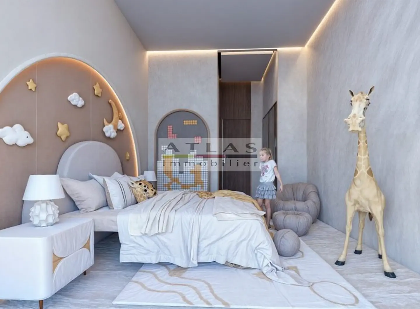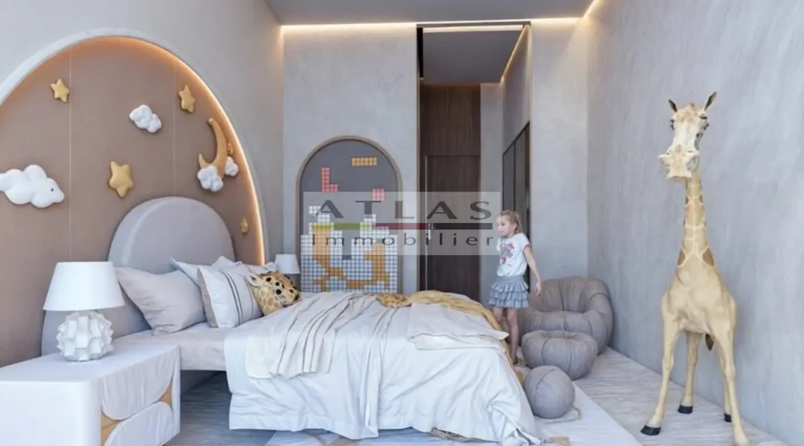 Profitez d’une vue imprenable sur les montagnes de l’Atlas, qui subliment cette villa exceptionnelle. Cette propriété bénéficie également d’une situation privilégiée au sein d’une résidence sécurisée offrant de nombreux équipements : 3 terrains de padel, un terrain de basket, un mini terrain de football, une supérette, une salle de fitness, un club pour enfants et un espace bien-être comprenant un hammam et une salle de massage.