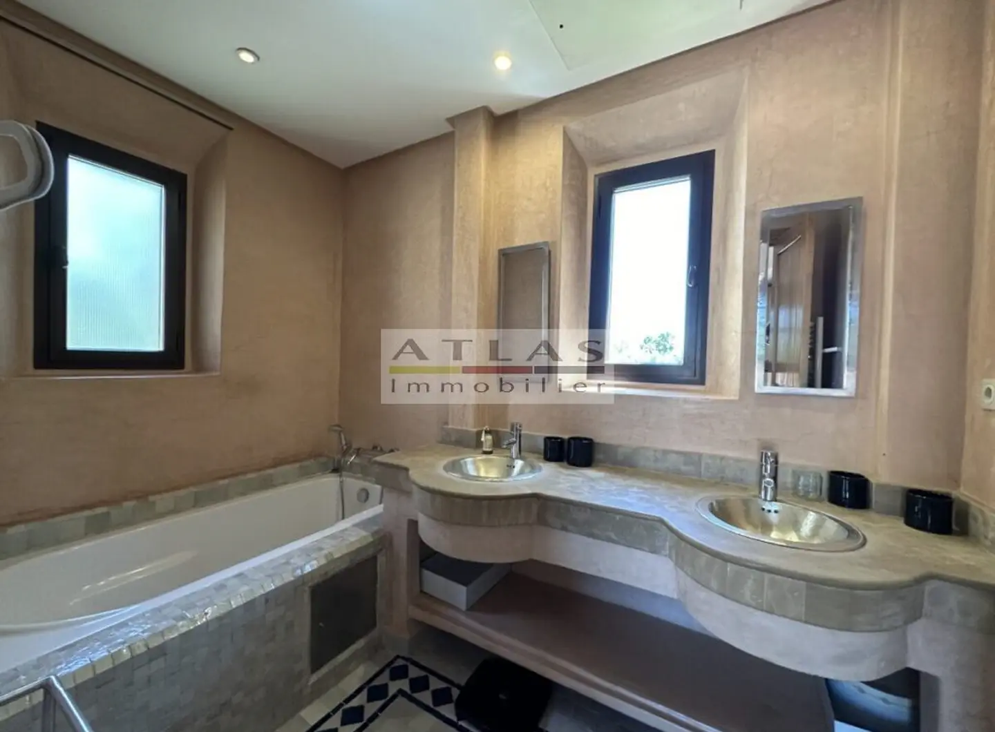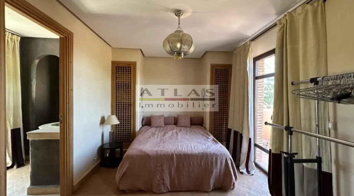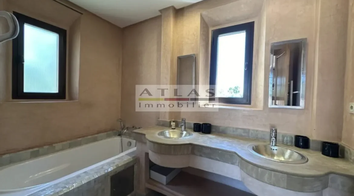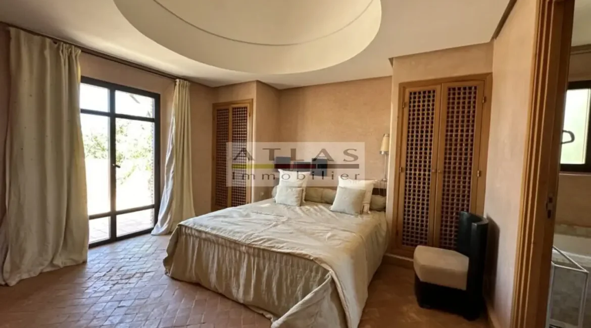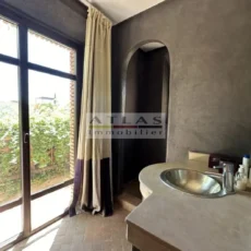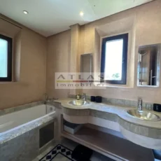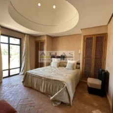 Nichée au sein de l’une des résidences golfiques les plus prisées de Marrakech et d’Afrique, cette magnifique villa construite sur un terrain de plus de 1 500 m² offre un cadre de vie luxueux et serein. Idéale pour les amateurs de golf et les familles en quête de tranquillité, elle séduit par son environnement verdoyant et son emplacement d’exception.