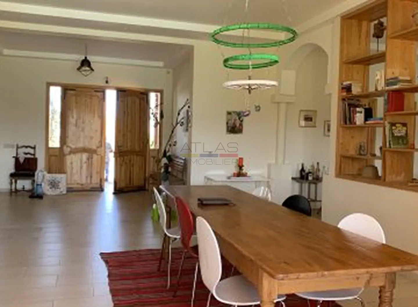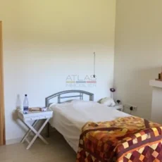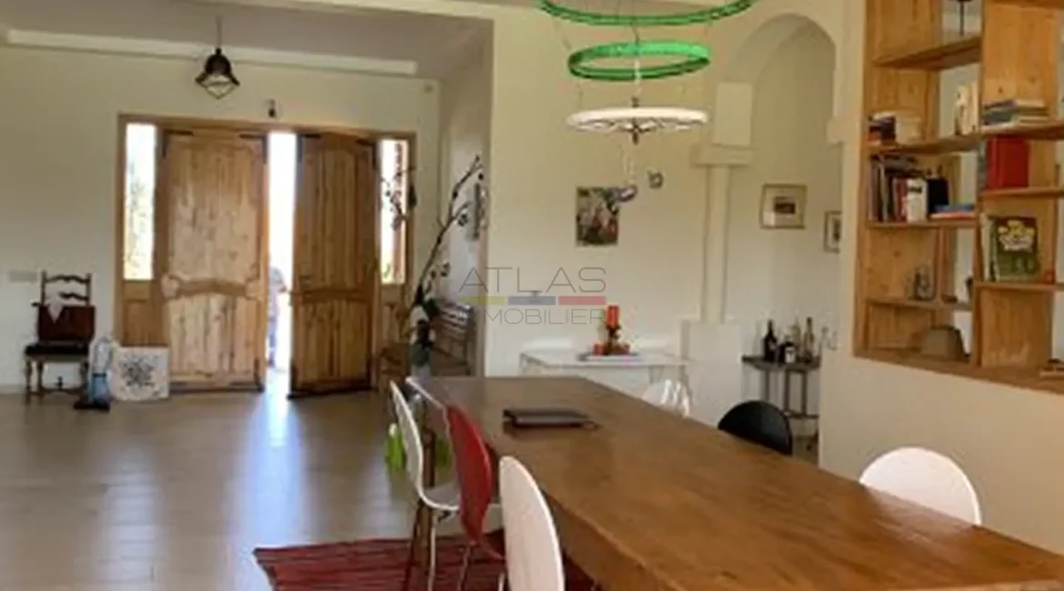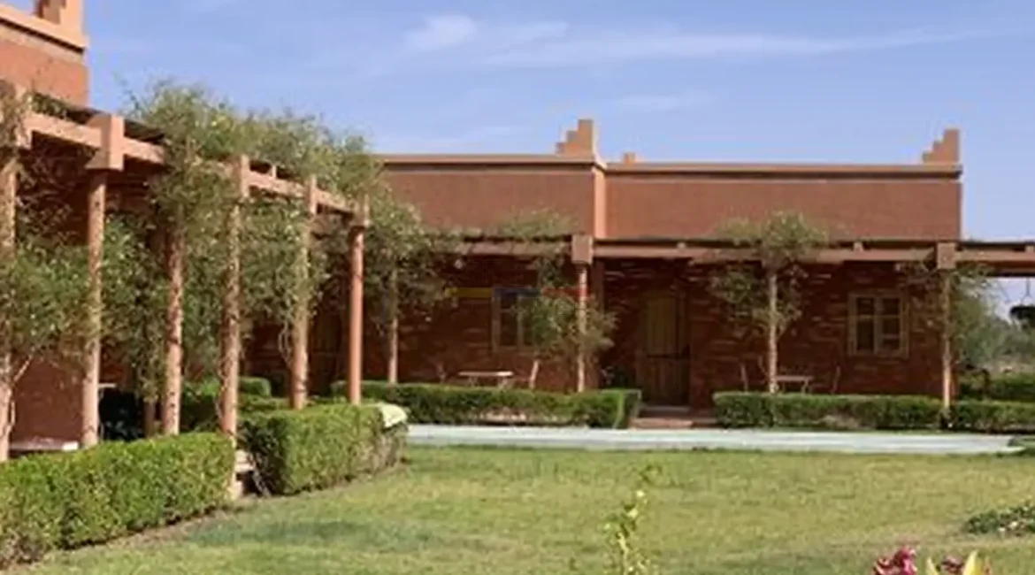À seulement 25 minutes de Marrakech, le long de la route du Barrage, se dévoile une propriété d’exception qui conjugue sérénité et confort moderne. Édifiée sur un vaste terrain de 2,4 hectares, cette villa de plain-pied développe une surface construite d’environ 320 m² et séduit par son atmosphère unique où luxe et nature se rencontrent.