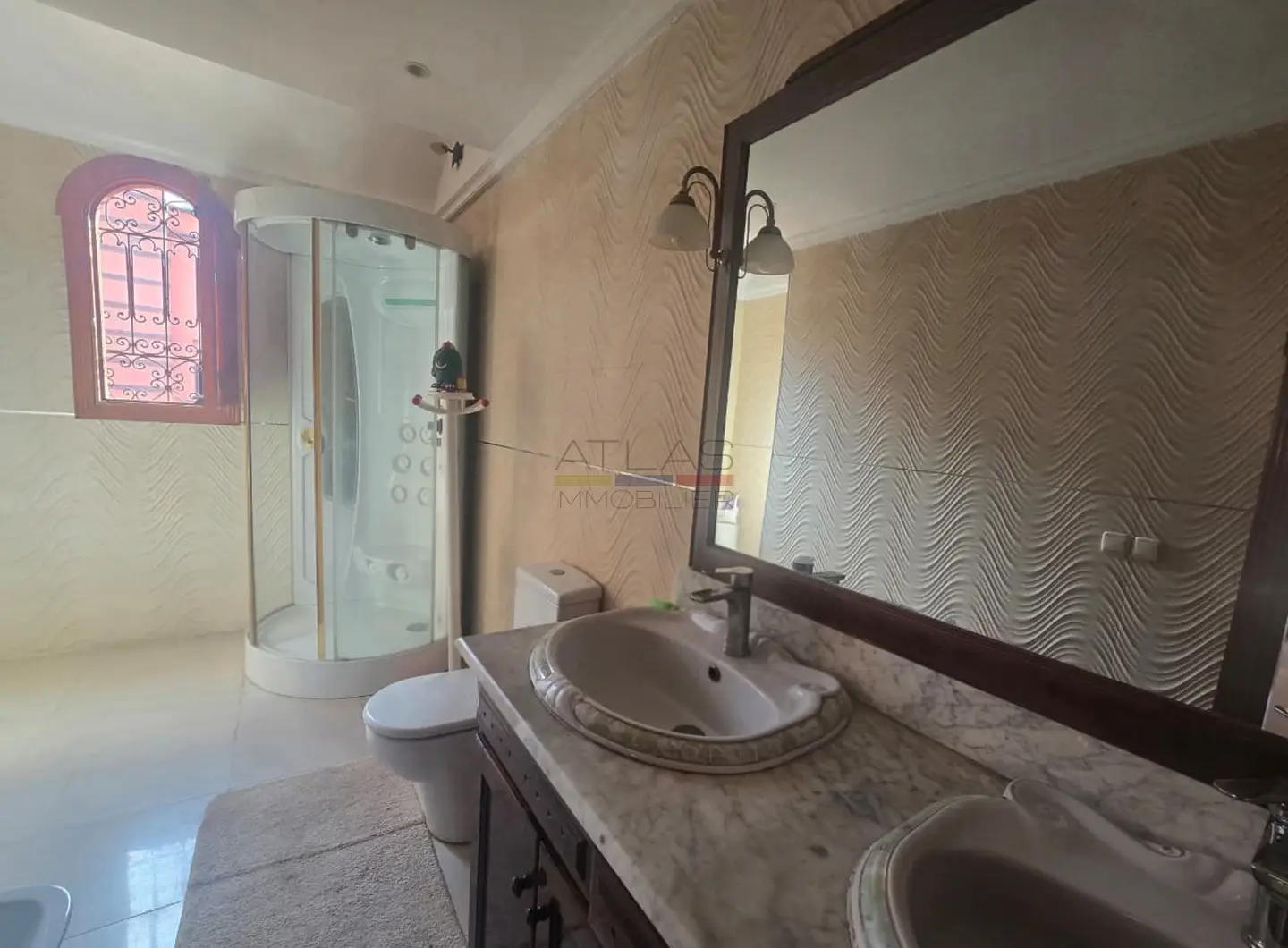 Le sous-sol entièrement aménagé constitue un véritable atout, aussi bien pour l’usage privé que pour la location. Il comprend une grande chambre, deux cuisines spacieuses, un hammam beldi traditionnel, une grande salle de bains, un salon marocain ainsi que de nombreux rangements. Une large cour dédiée au sous-sol facilite l’accès, apporte luminosité et offre un espace extérieur pratique, sans contraintes d’entretien, très apprécié par les occupants.