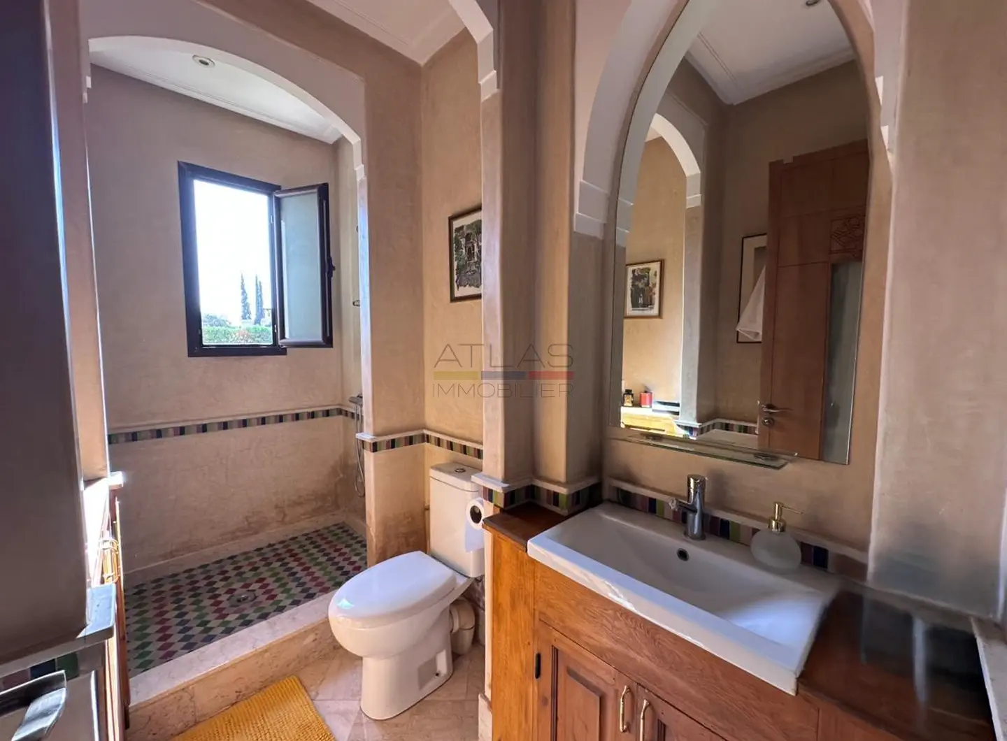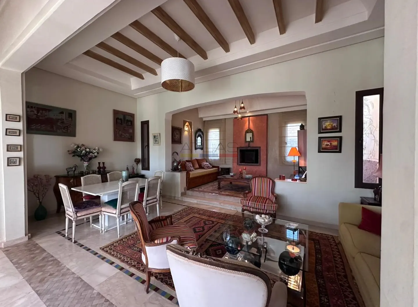 Idéalement située au kilomètre 18 de la route de Fès, cette élégante villa individuelle de plain-pied se niche au sein d’une résidence privée, sécurisée et très prisée, à seulement vingt minutes du centre de Marrakech. Elle offre un cadre de vie calme et raffiné, parfaitement adapté à ceux qui recherchent confort, intimité et qualité de vie.